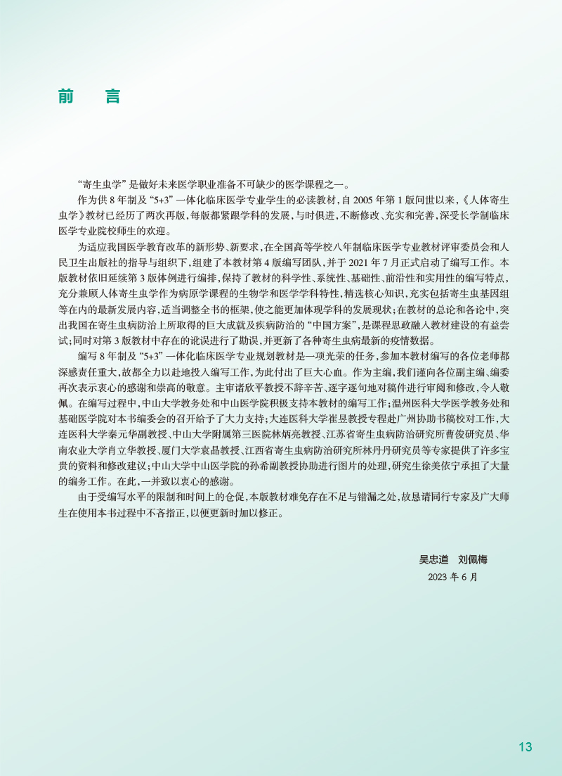人体寄生虫学 第4版 配线上数字资源 十四五全国高等学校教材 供八年制及5+3一体化临床医学等专业用 人民卫生出版社9787117348409