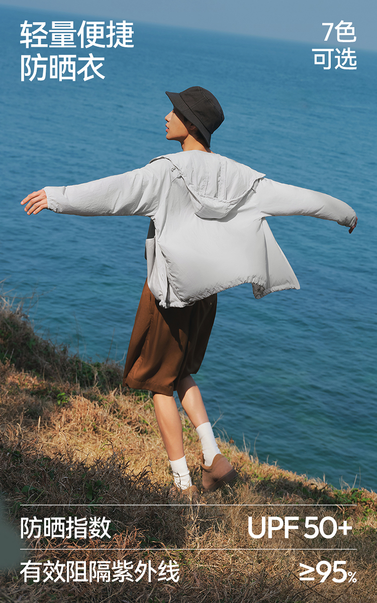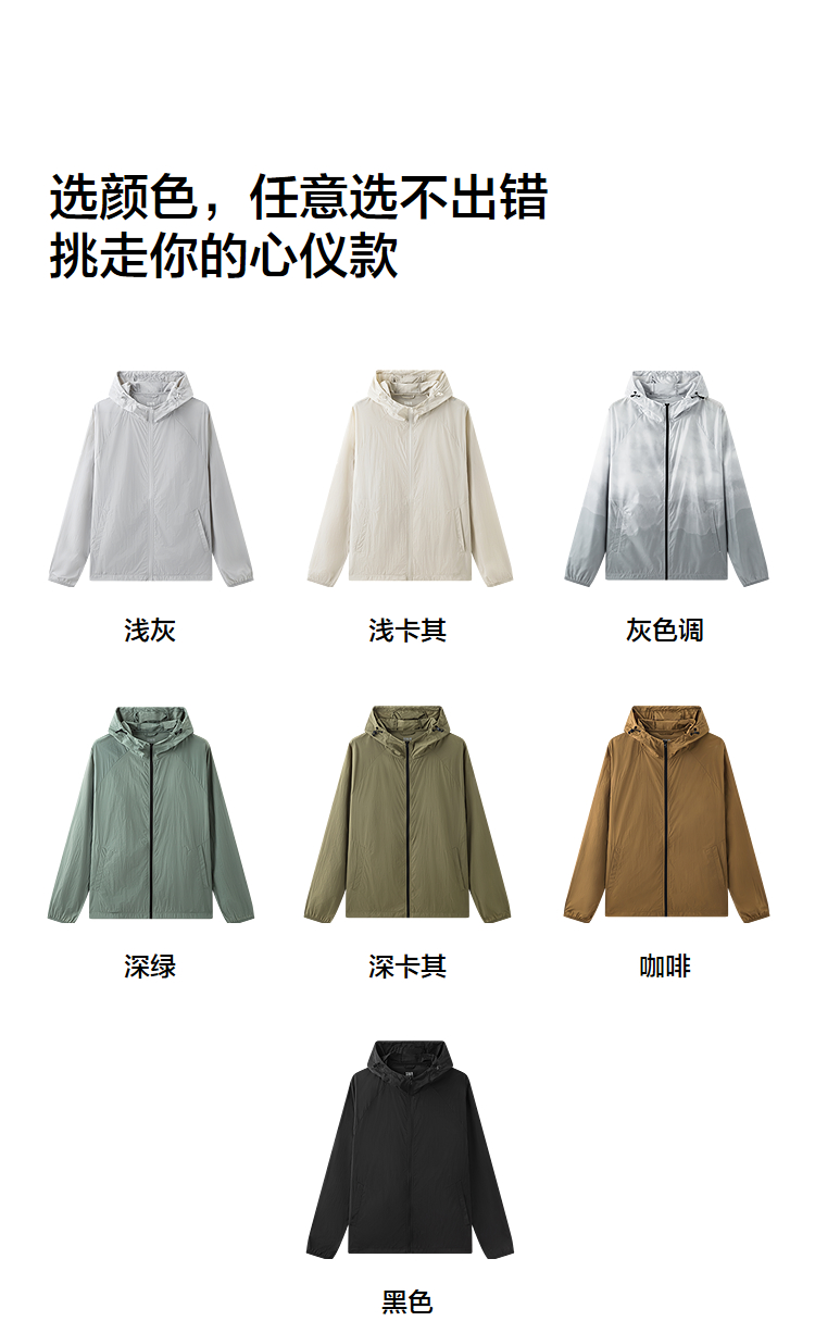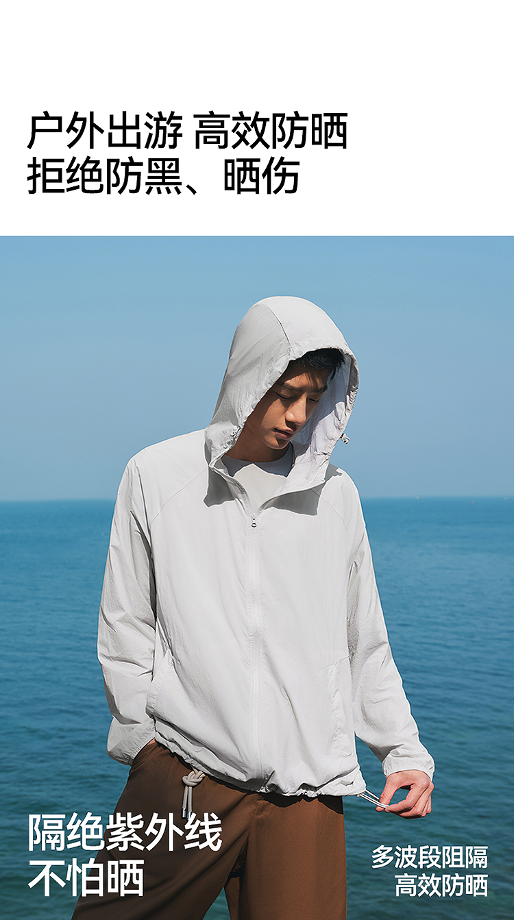 森马夹克男防晒服UPF50+连帽外套夏季轻量便携可收纳上衣情侣纯色