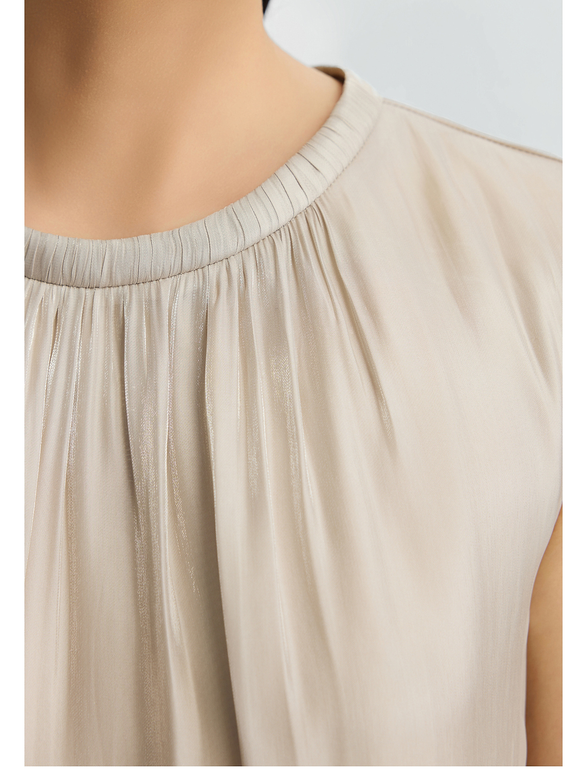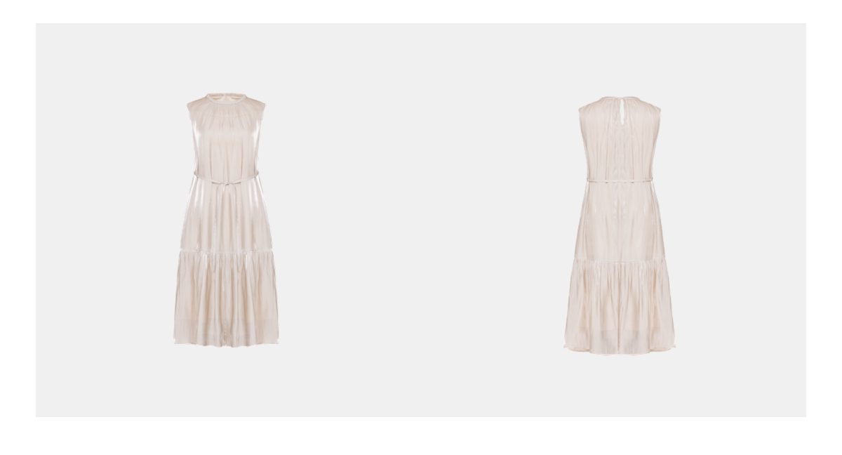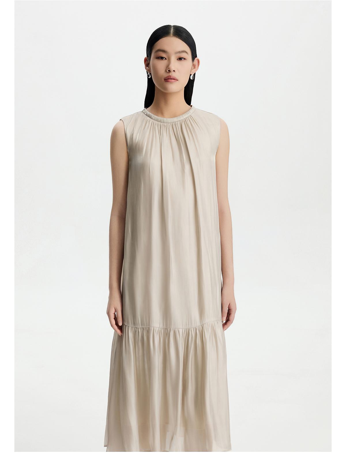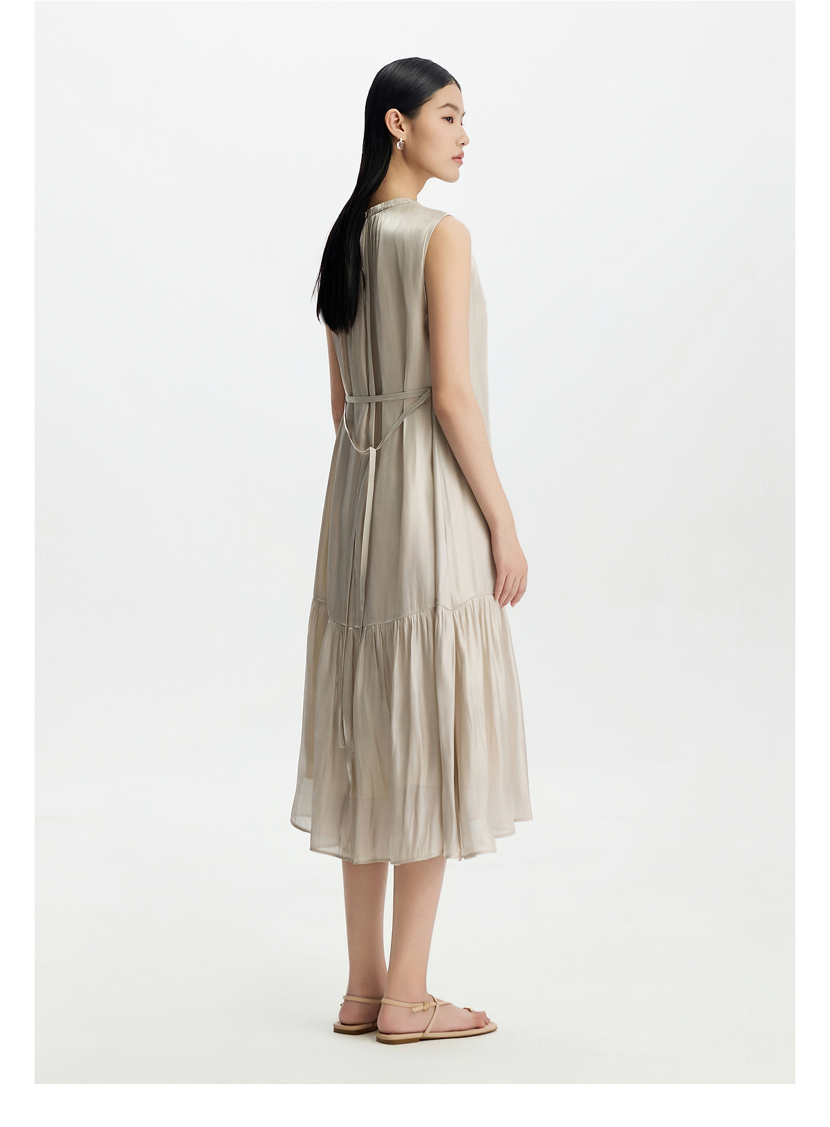 PURE TOUCH26春夏新款度假连衣裙珠光粉无袖抽褶中长裙系带收腰裙