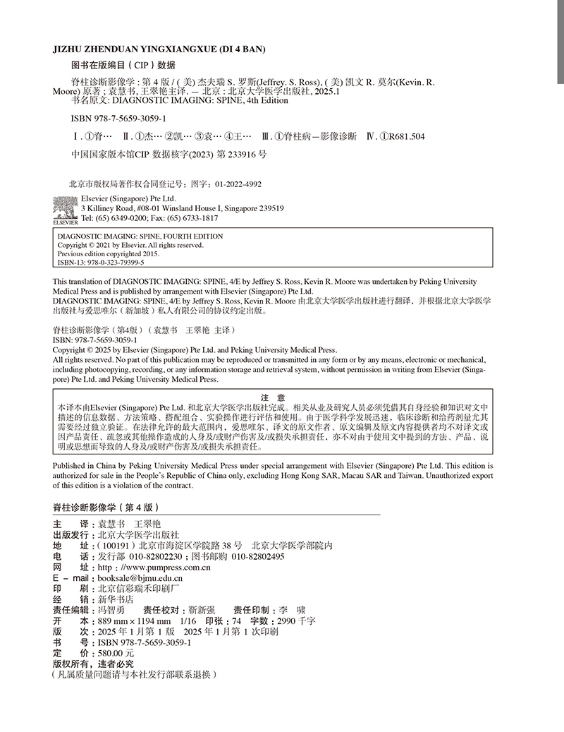 脊柱诊断影像学 第4版 袁慧书 王翠艳主译 脊柱外科学放射影像脊髓椎体疾病新手术方案神经外科 北京大学医学出版社9787565930591