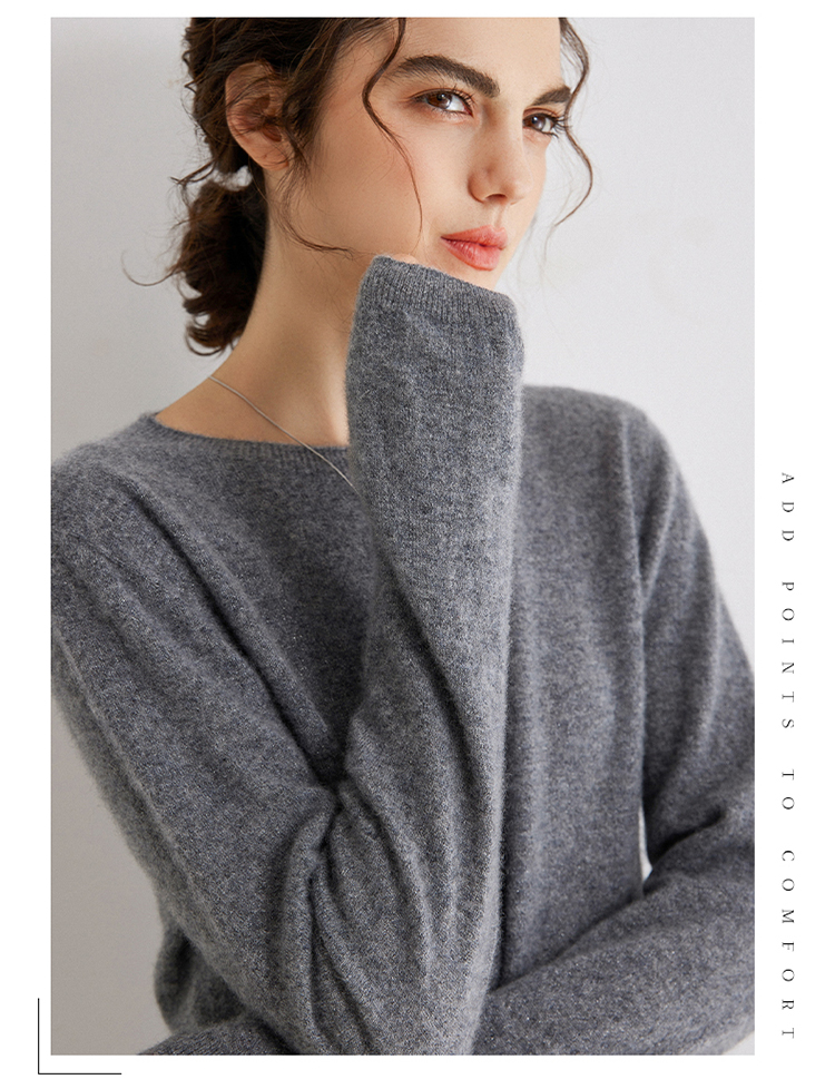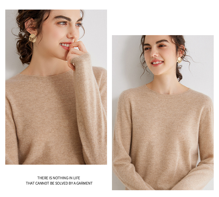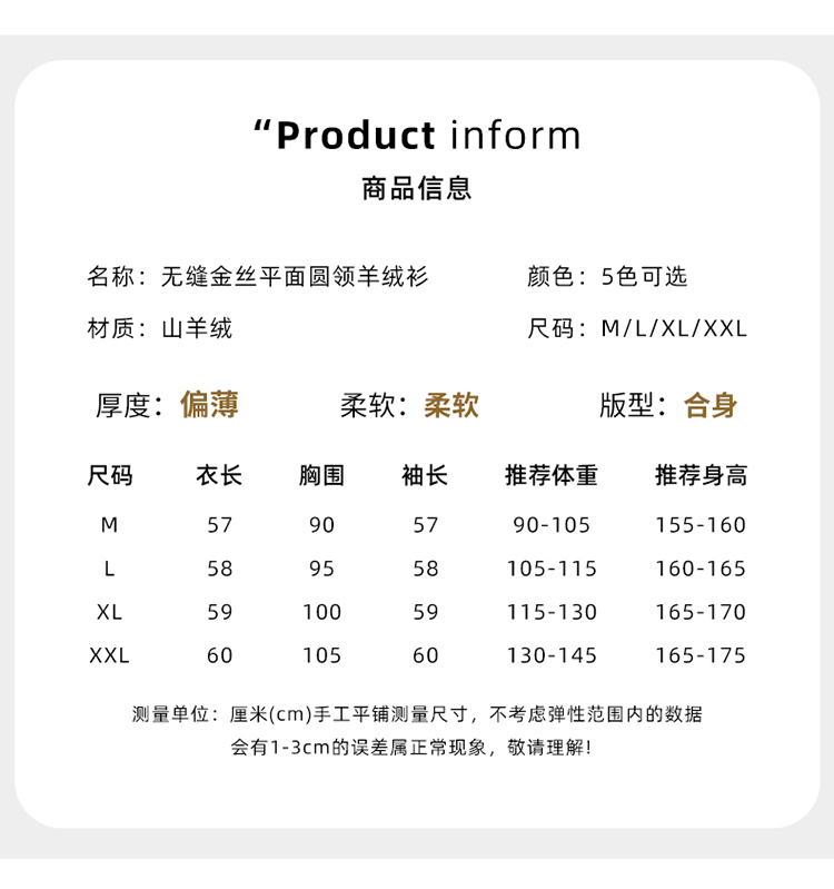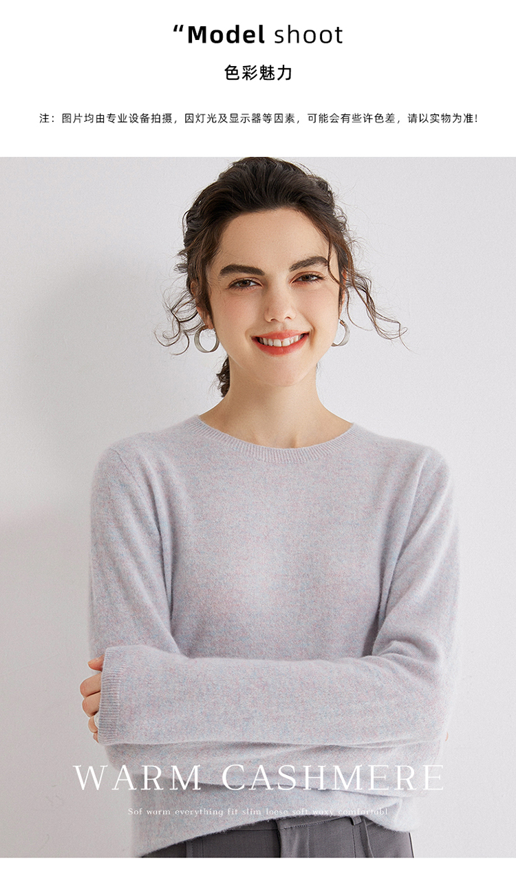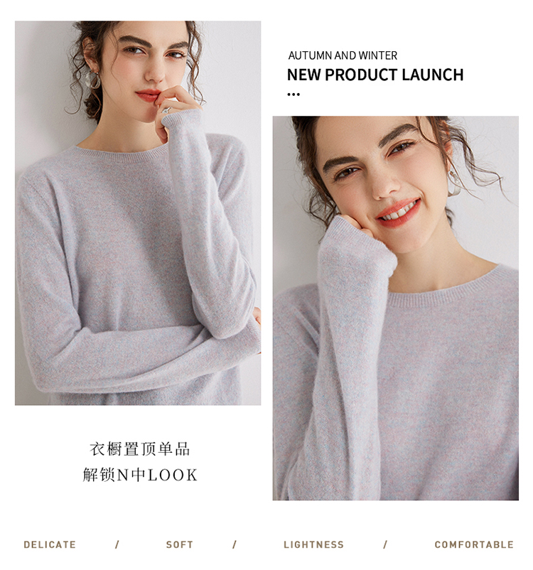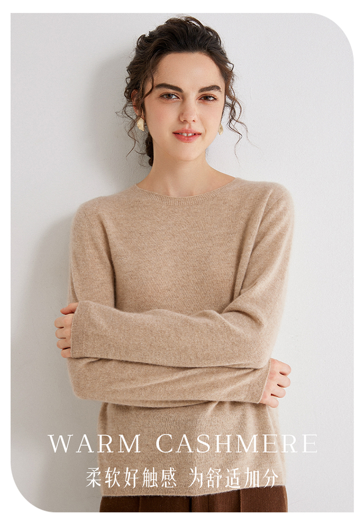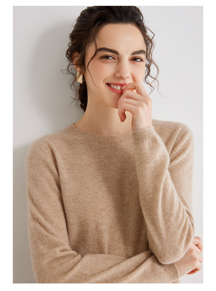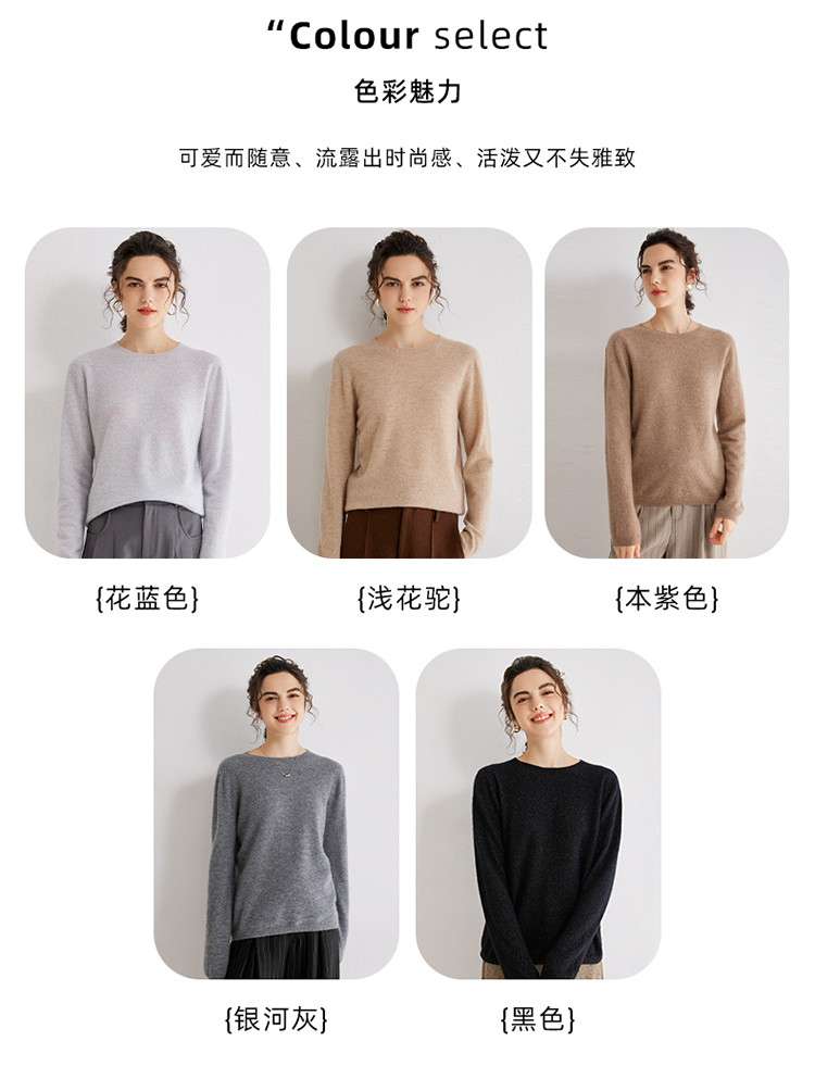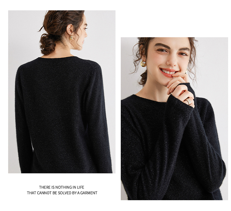 Avann阿曼衣无缝金丝平面圆领100%羊绒衫MY007-
