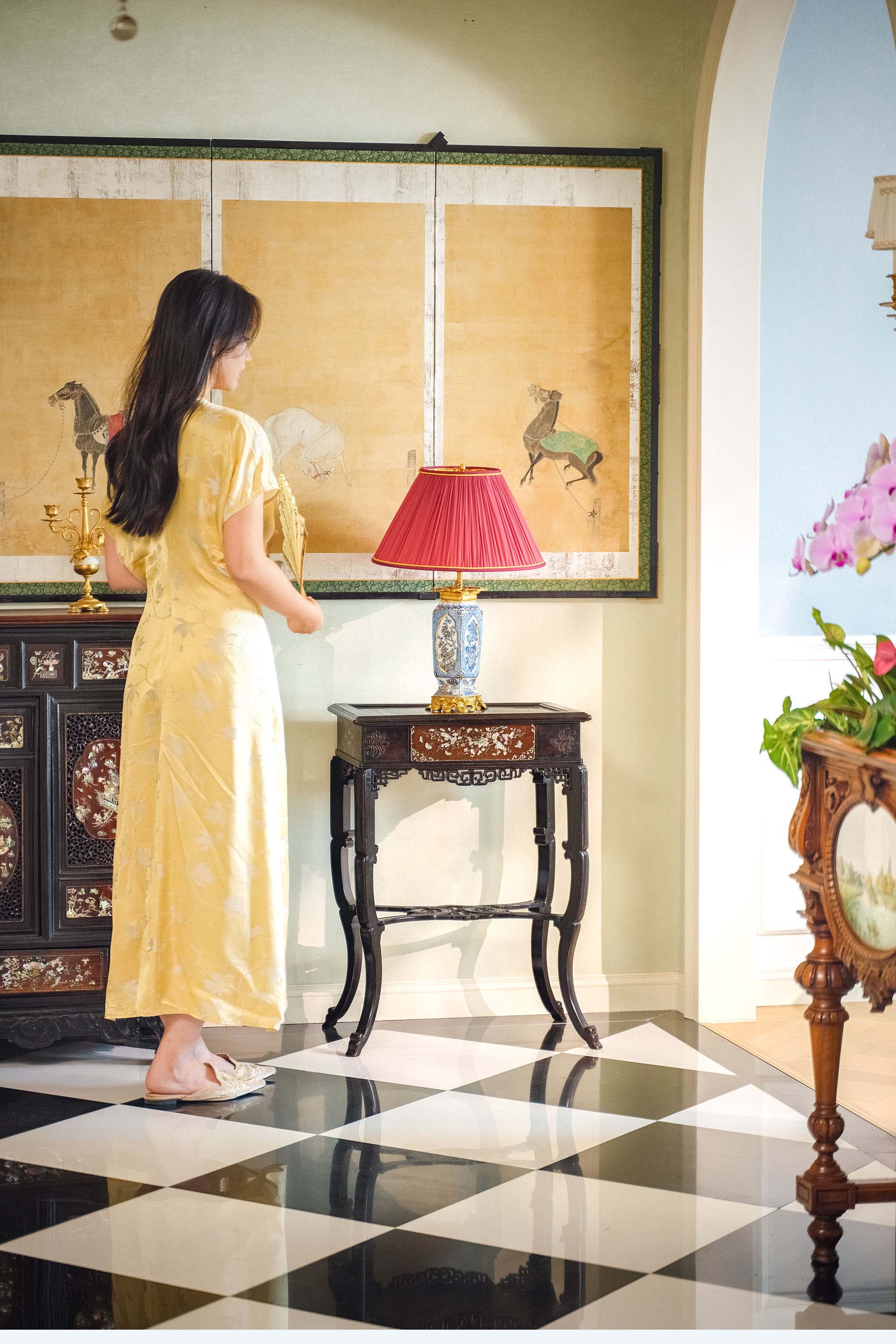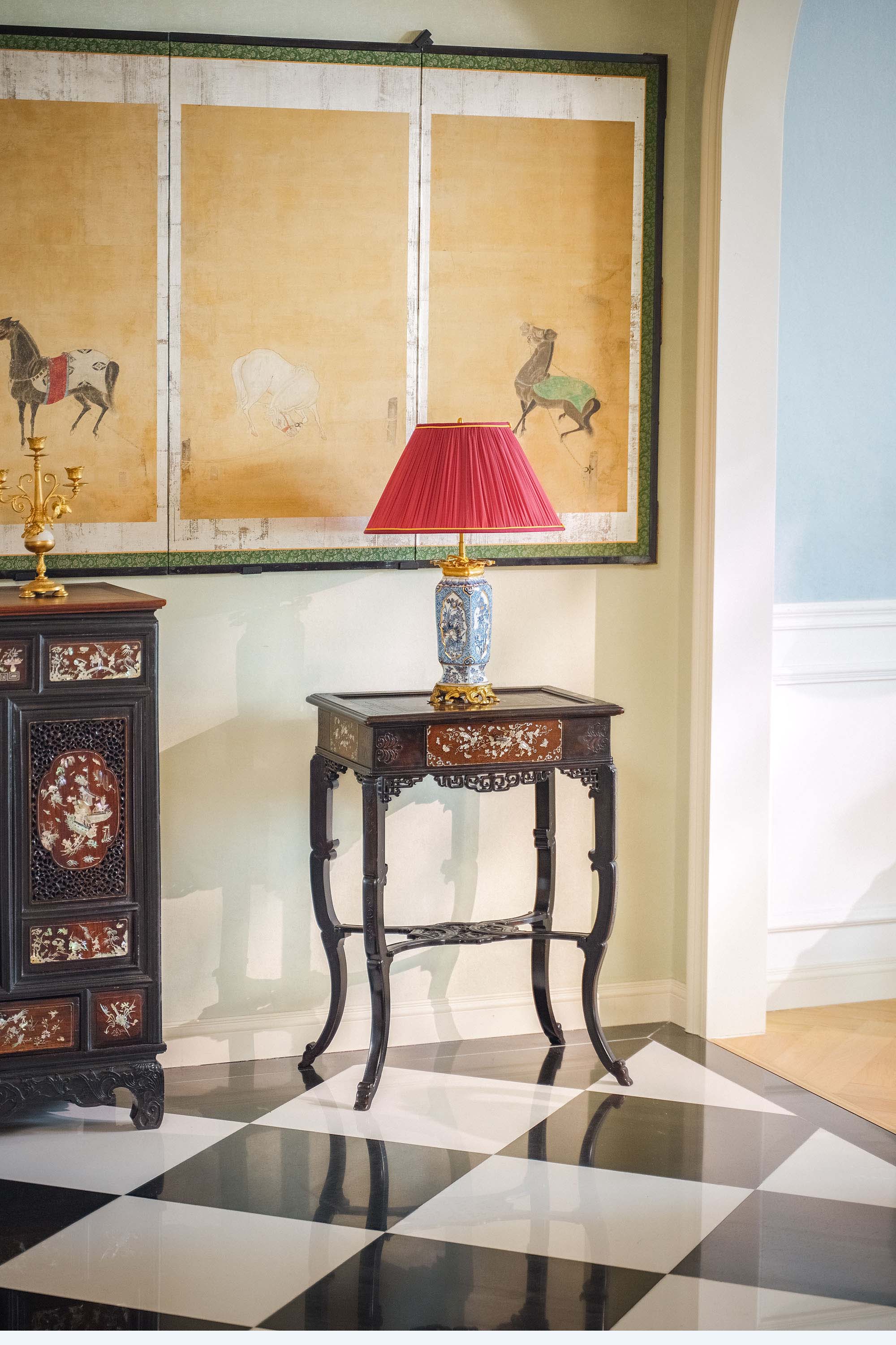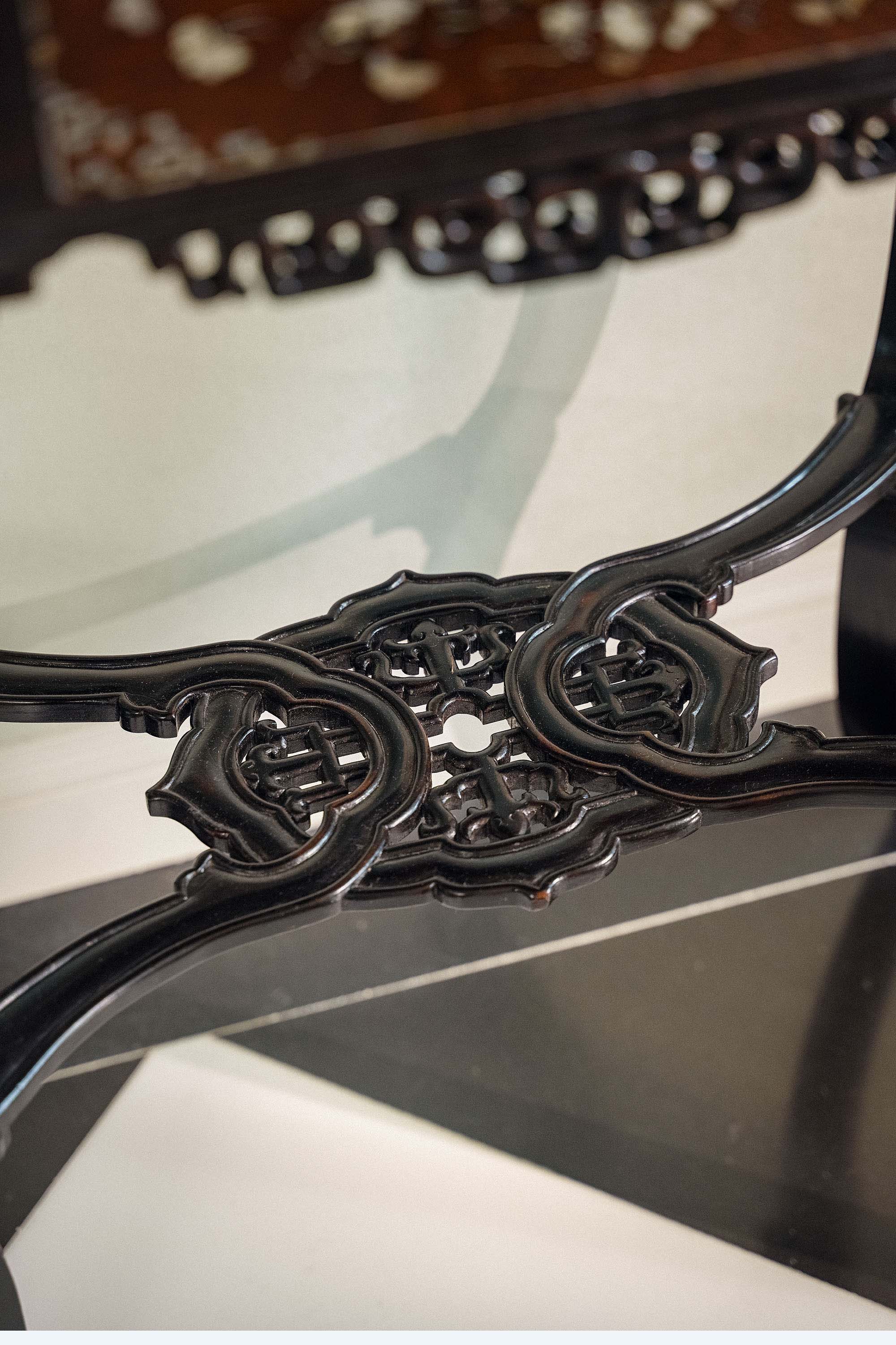 1880年代法国出品东方风格传统花卉主题螺钿镶嵌精雕桤木翻盖带镜抽屉桌