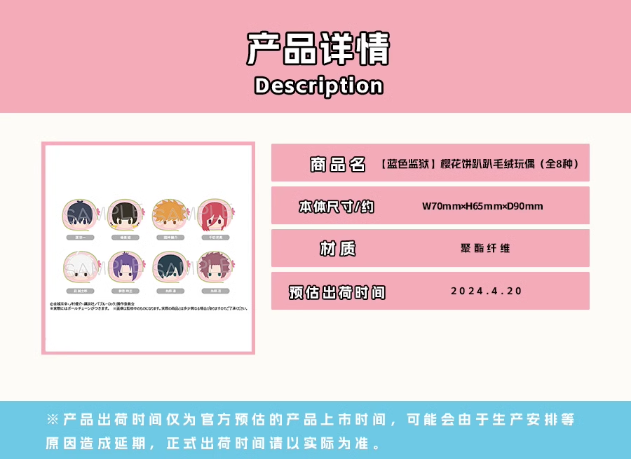 TAPIOCA 【蓝色监狱】樱花饼趴趴毛绒玩偶(全8种)随机TPOC4562378271131