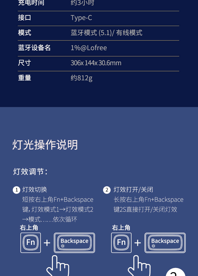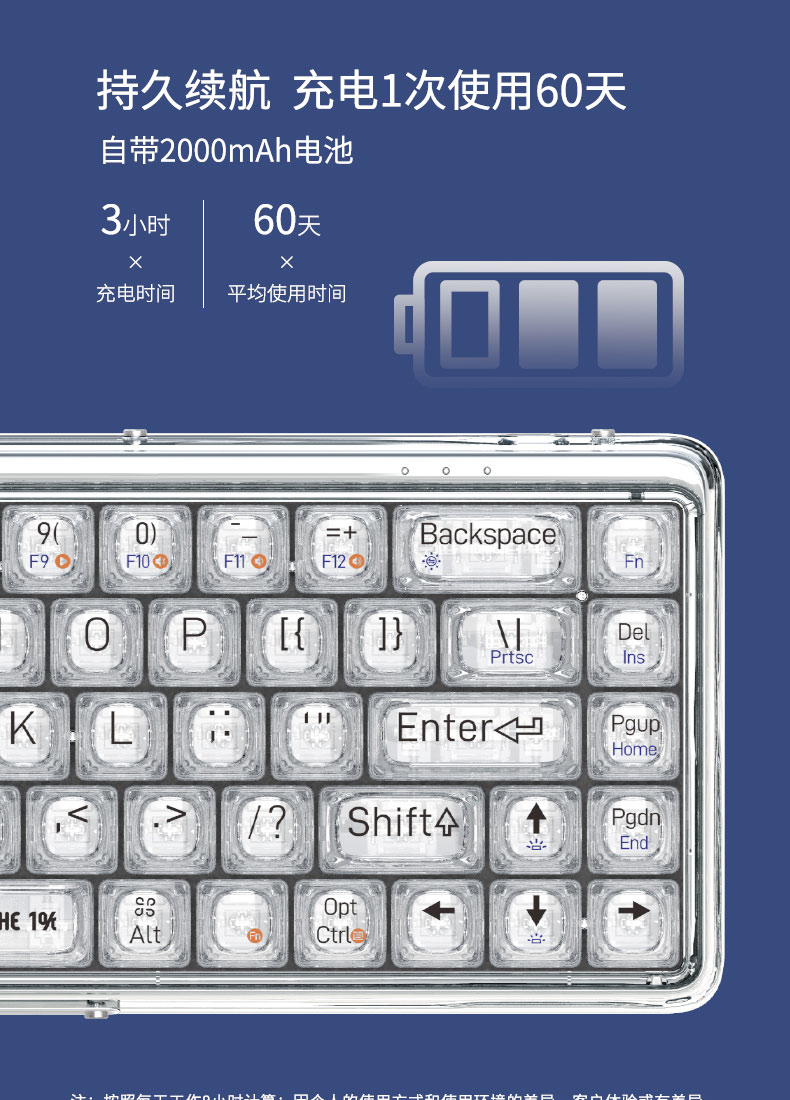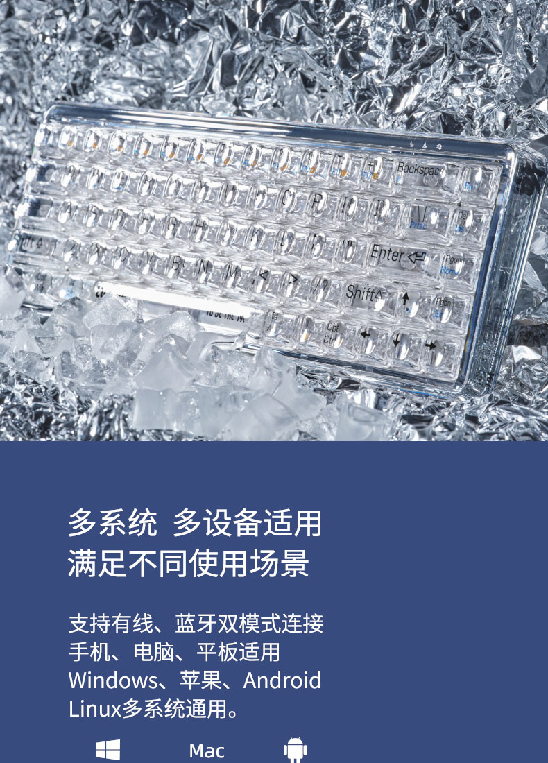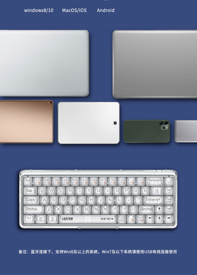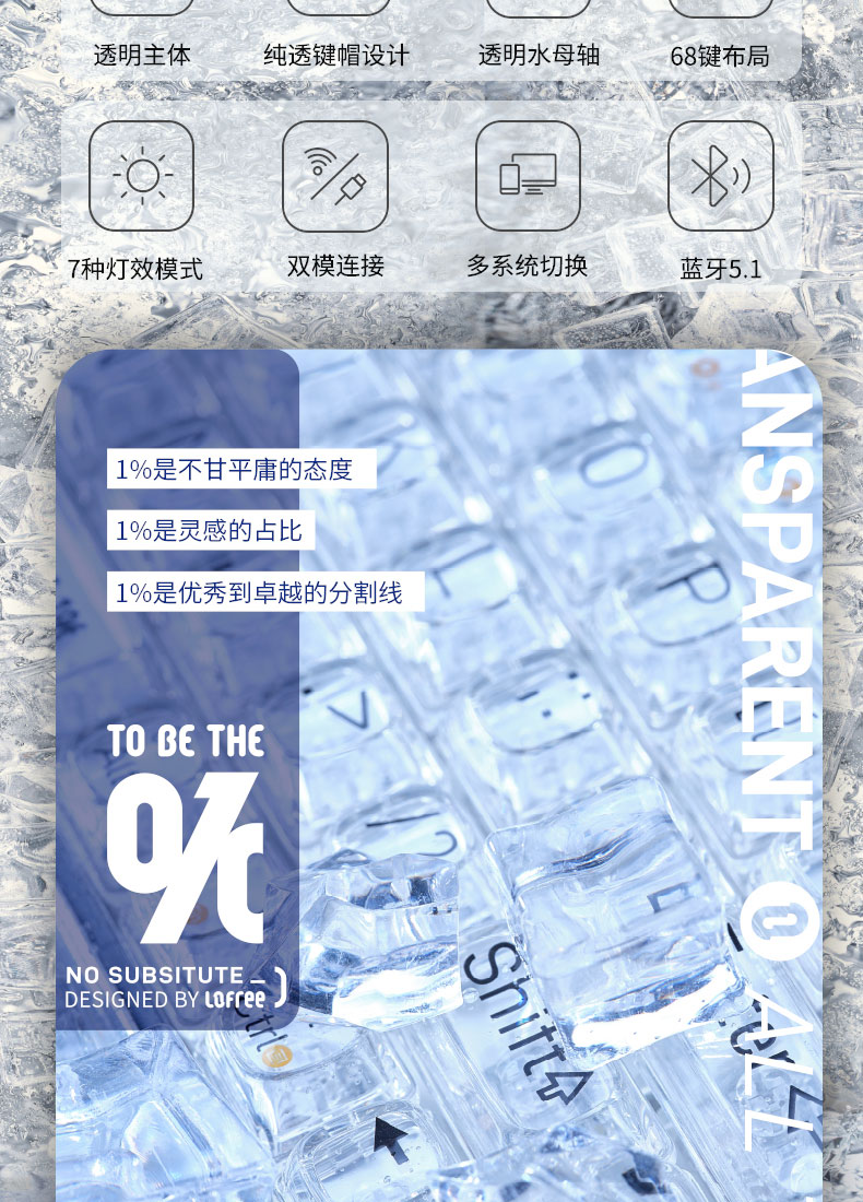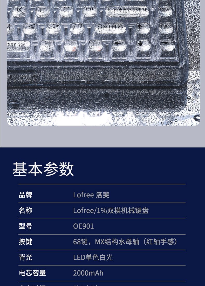 洛斐(LOFREE)透明1%双模无线机械键盘