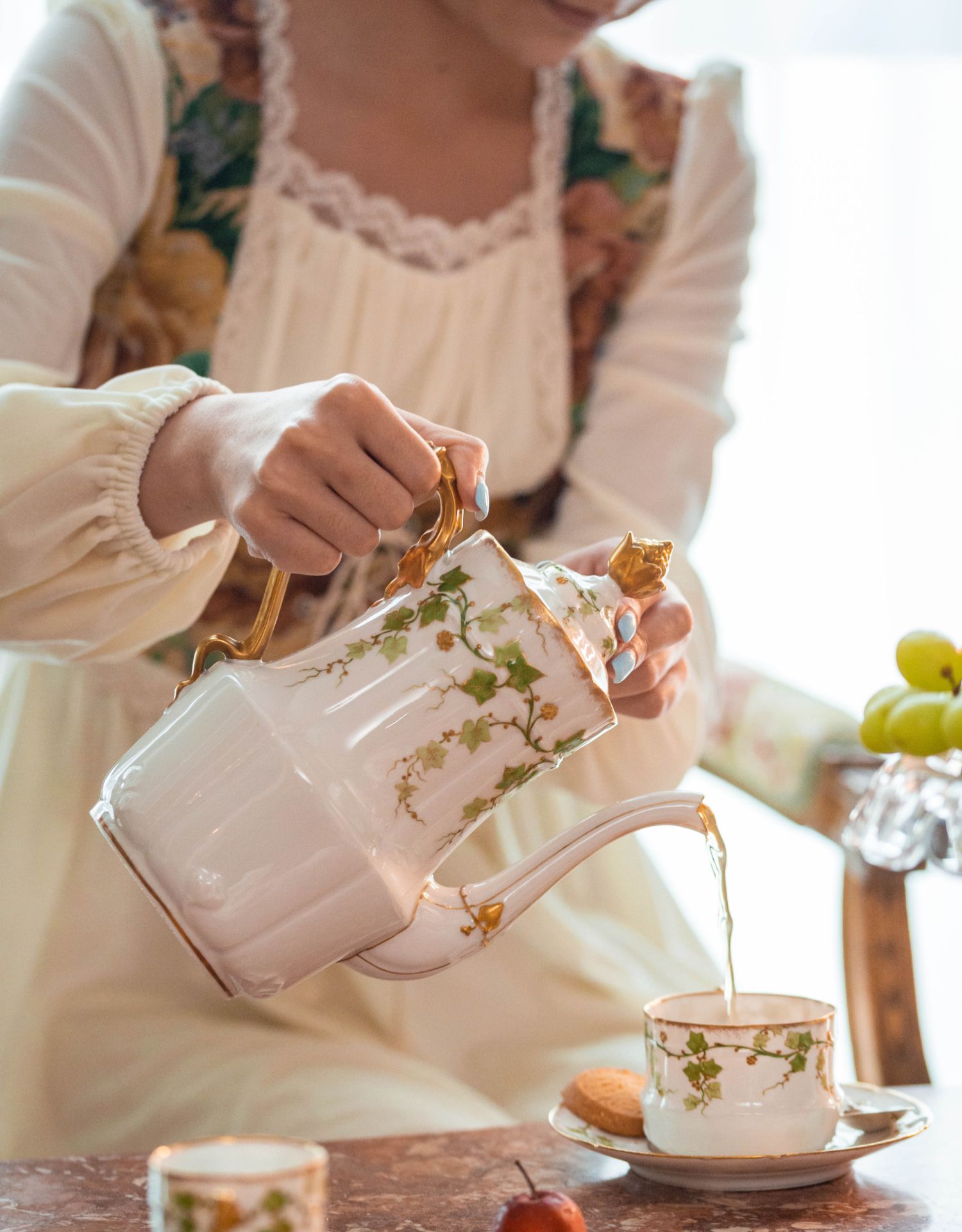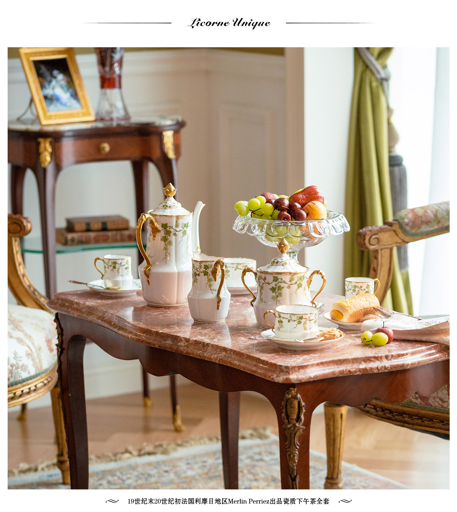 独角鹿西洋古董法国利摩日地区Merlin Perriez出品瓷质下午茶全套