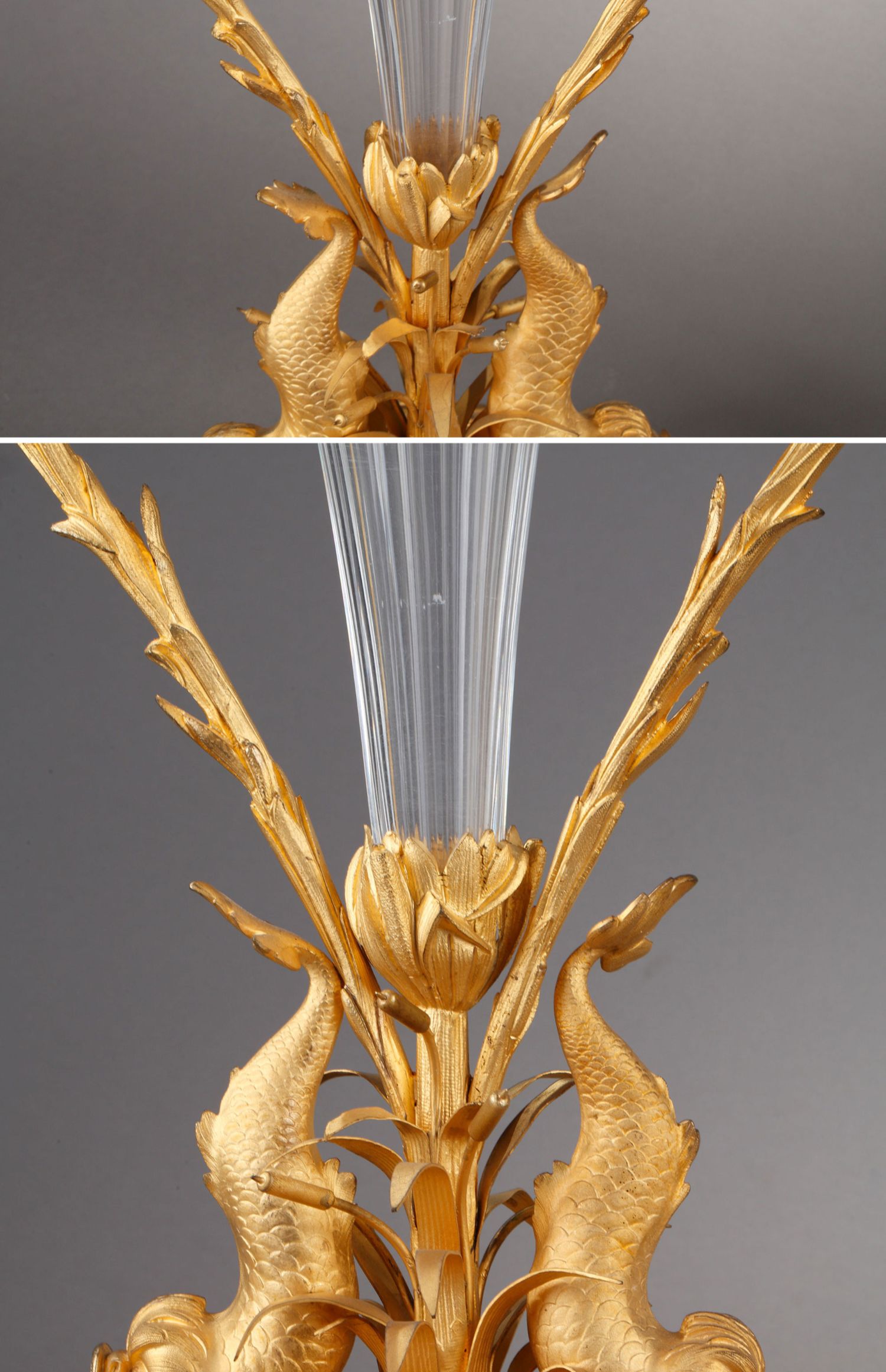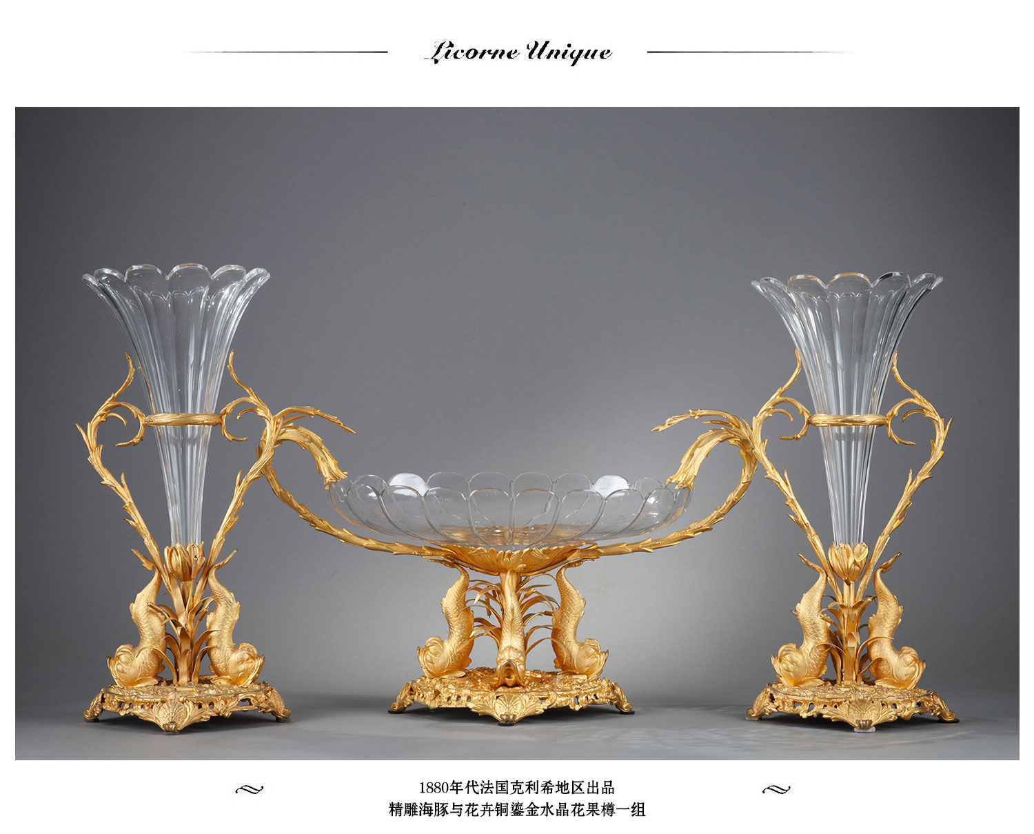 独角鹿西洋古董法国著名水晶工坊精雕铜鎏金水晶花果樽一组一套