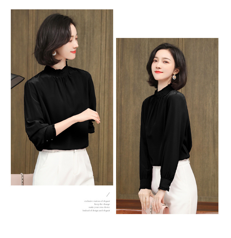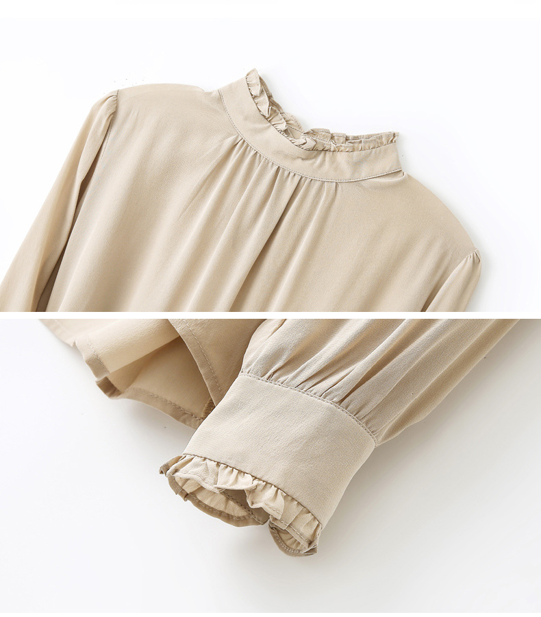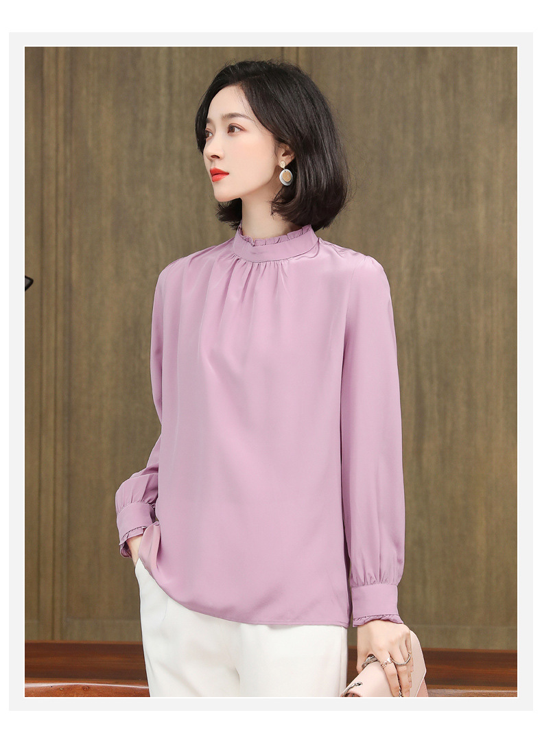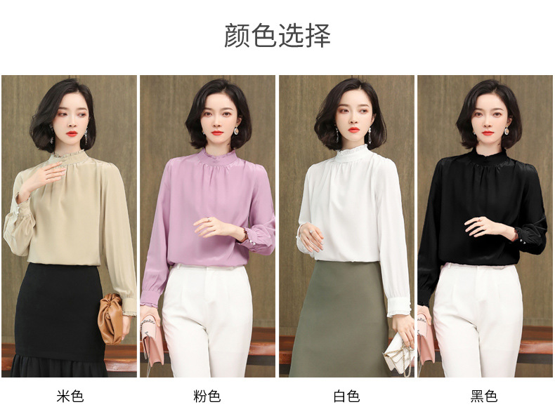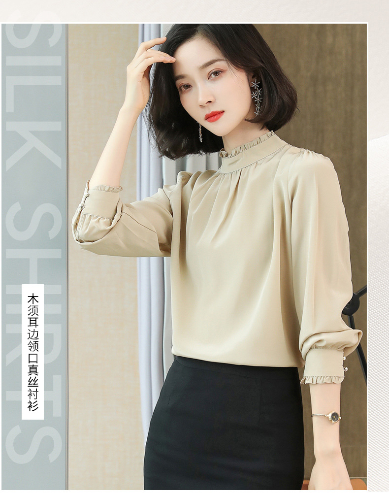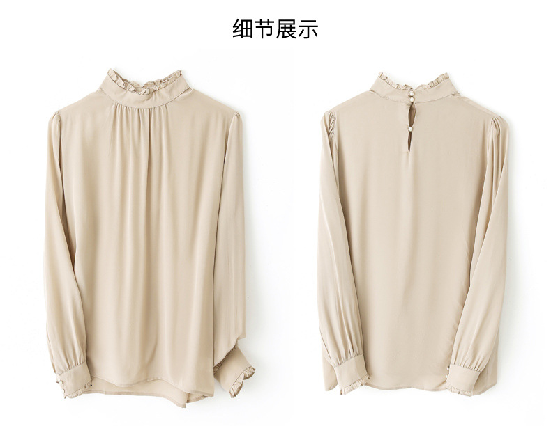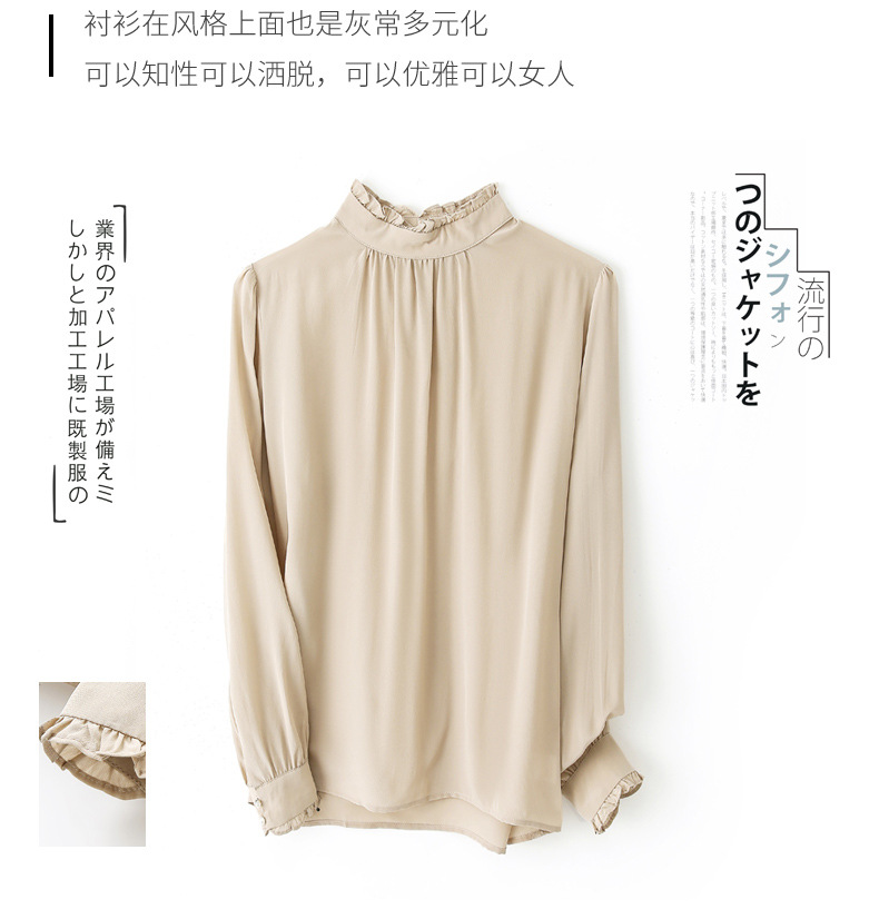 真丝衬衫女秋杭州新款时尚印花木耳边气质长袖桑蚕丝上衣