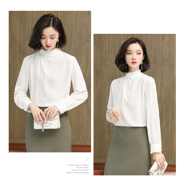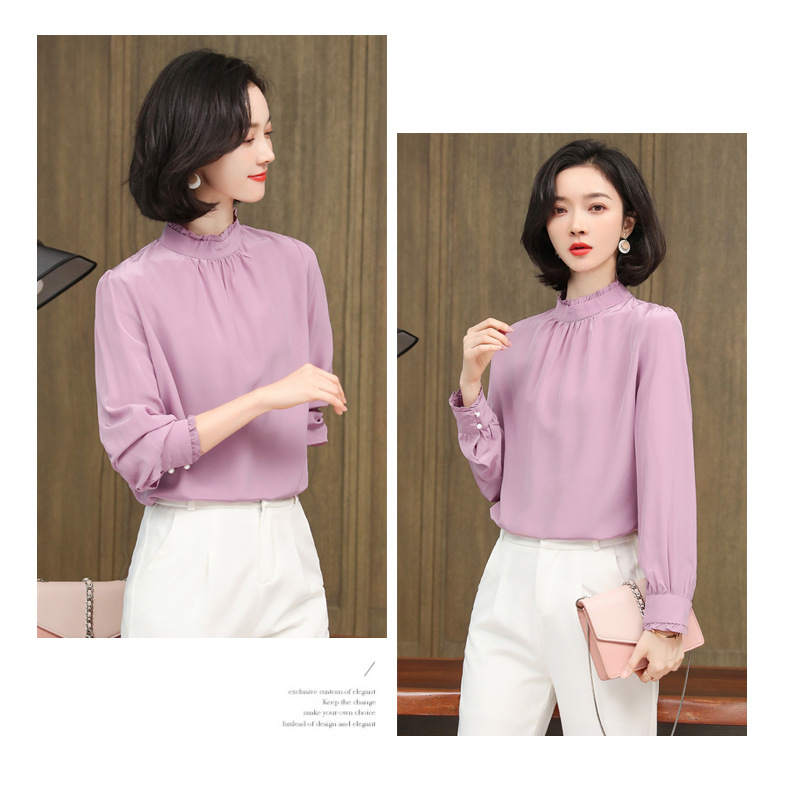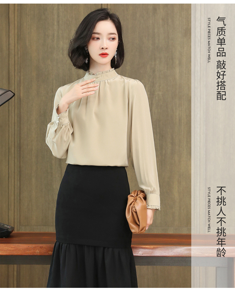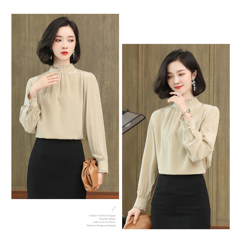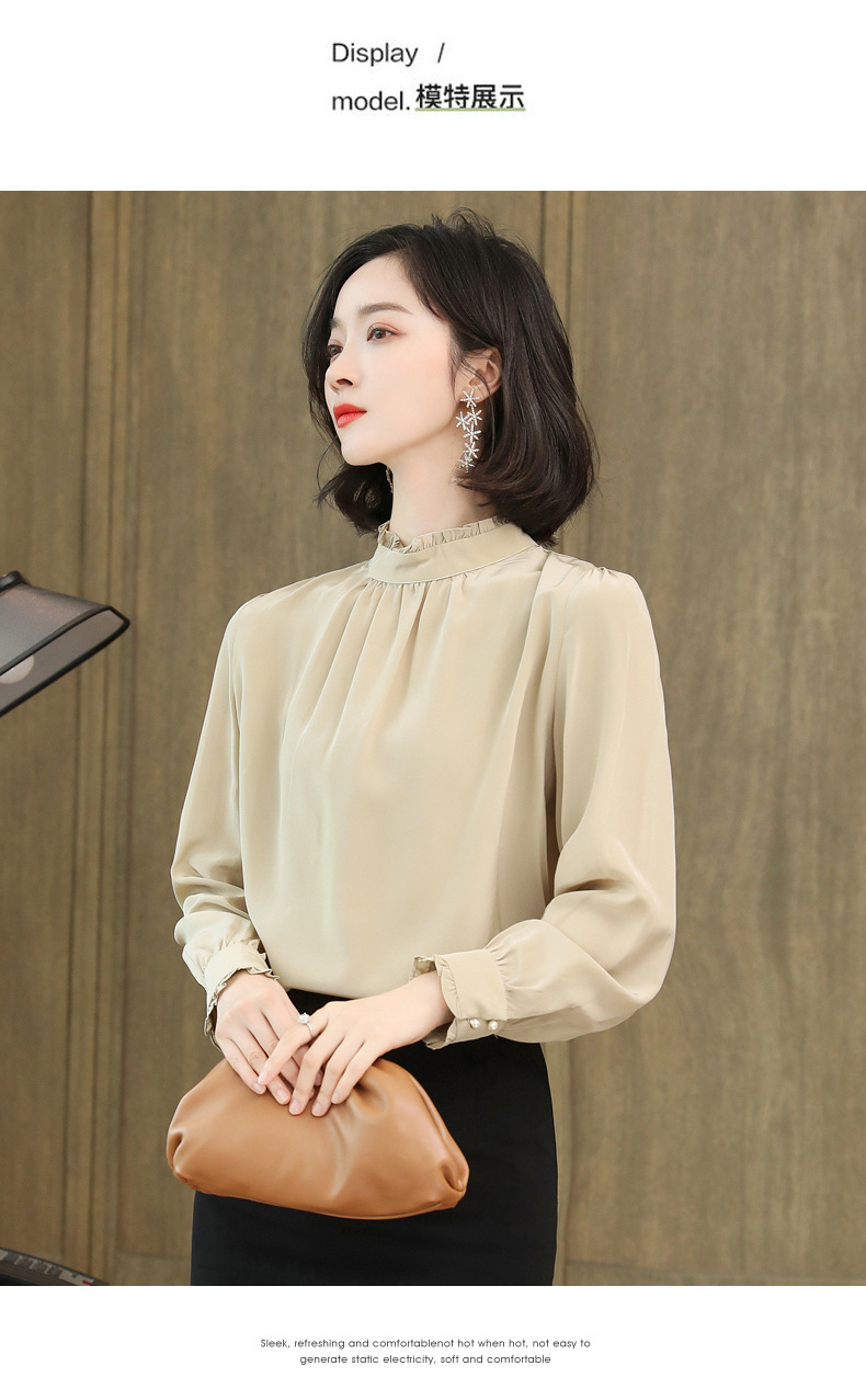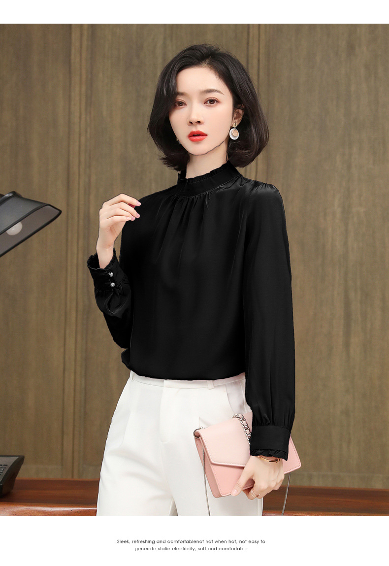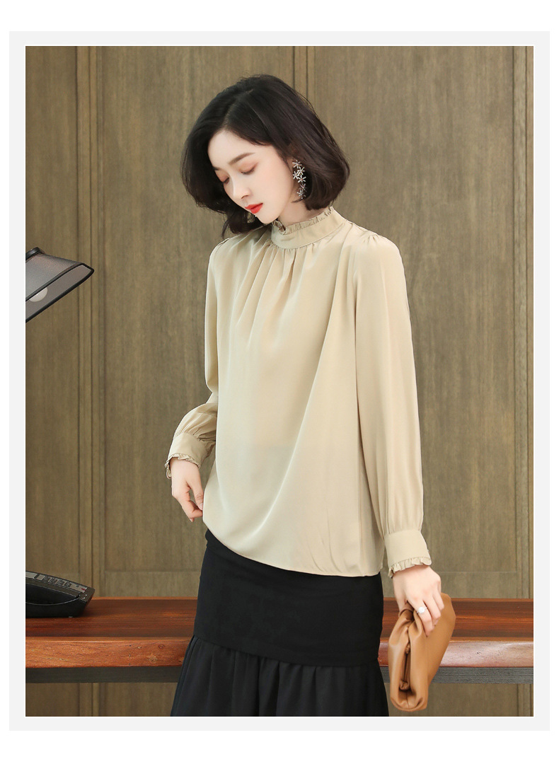 真丝衬衫女秋杭州新款时尚印花木耳边气质长袖桑蚕丝上衣