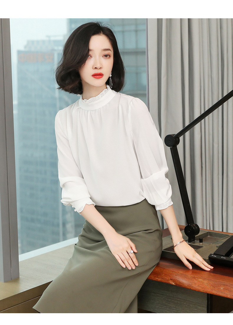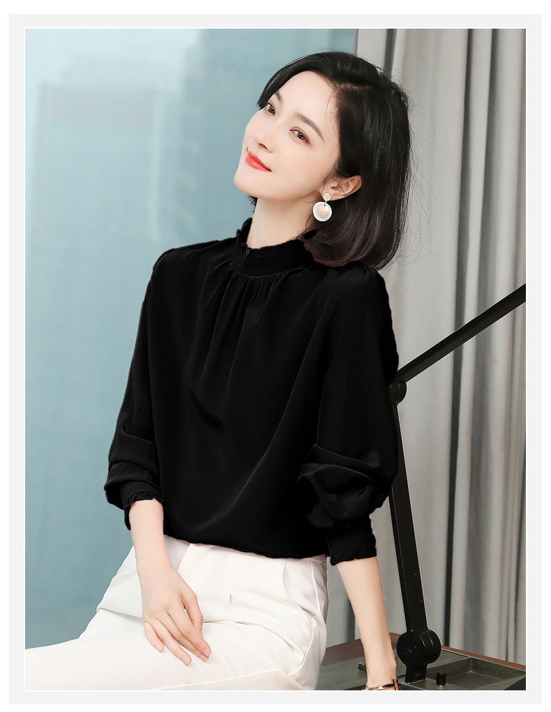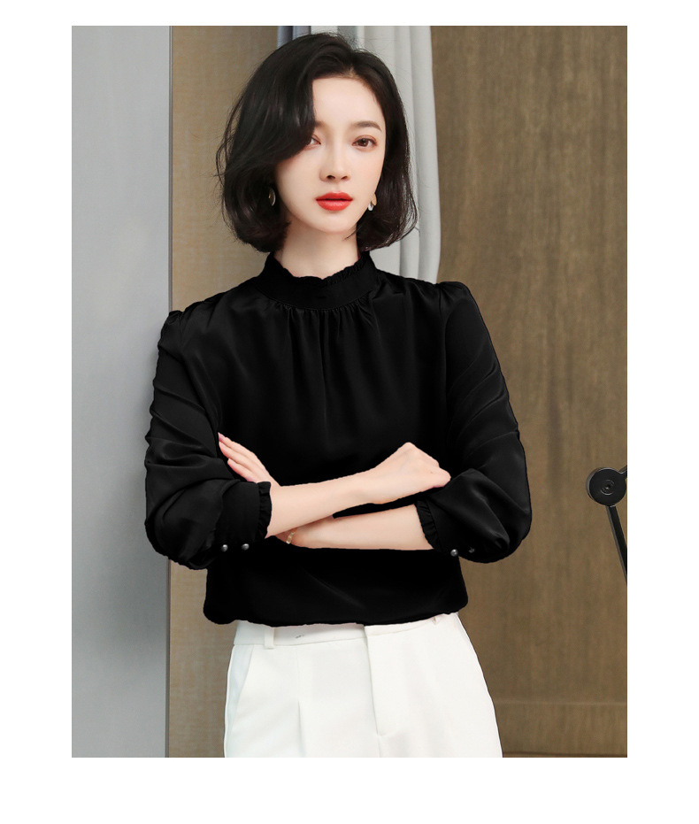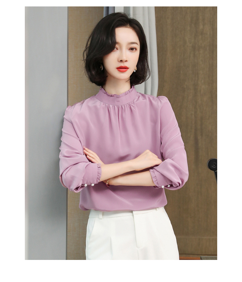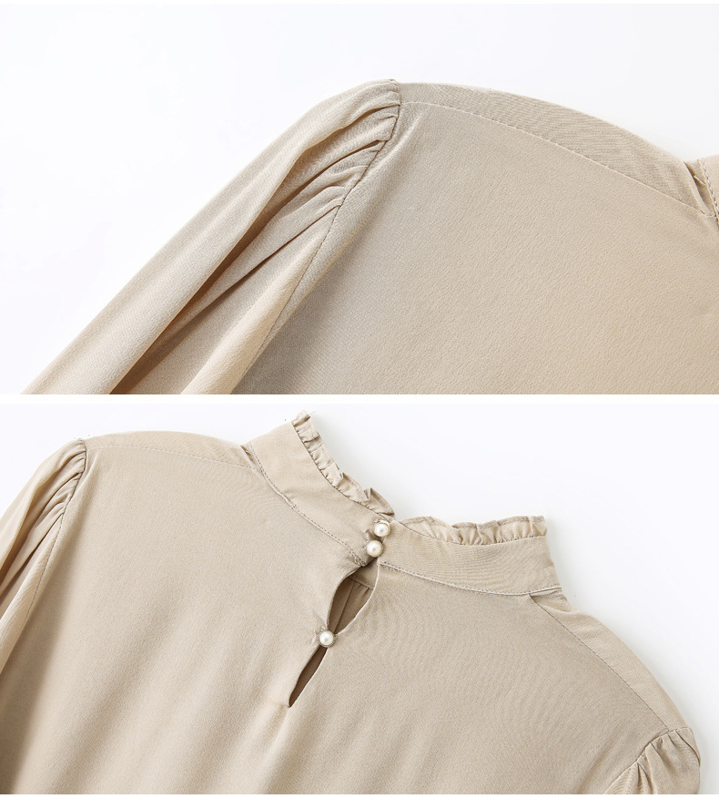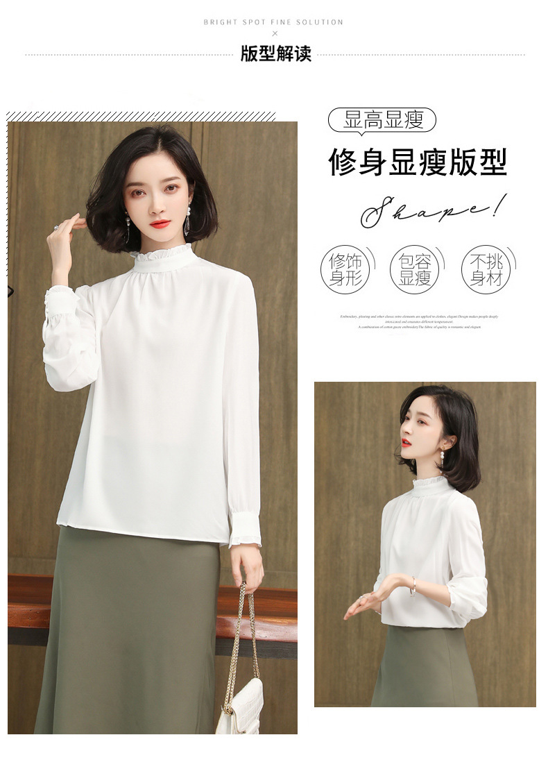 真丝衬衫女秋杭州新款时尚印花木耳边气质长袖桑蚕丝上衣