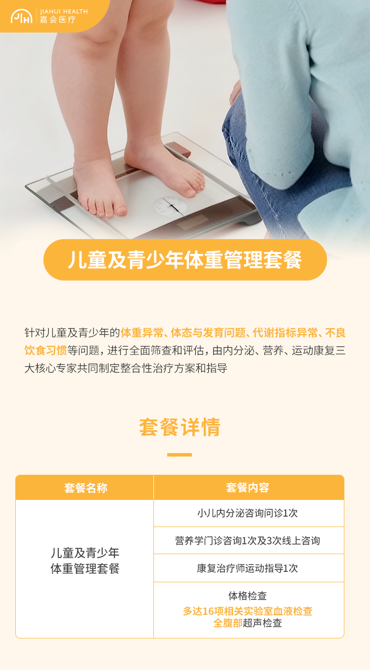 ● 为确保为孩子提供的体重管理方案精准有效,营养与运动指导服务需要根据首次内分泌科看诊后的检验检查报告进行制定,因此,营养咨询门诊与运动指导服务需要另行预约时间。感谢您的理解与配合!