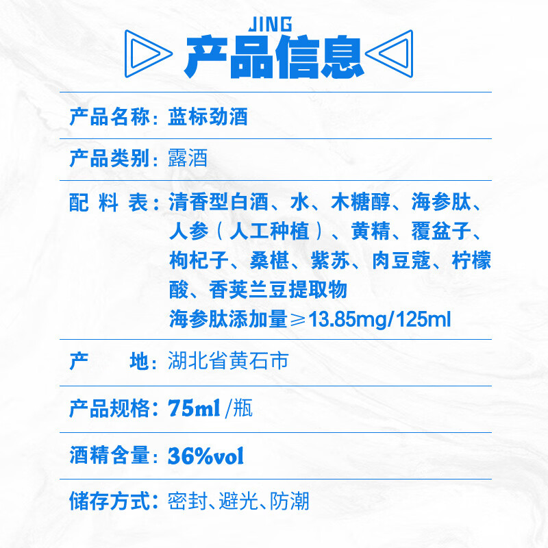 【优惠组合】40°金标劲酒75ml*3瓶+36°蓝标劲酒125ml*3瓶