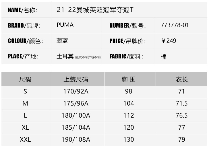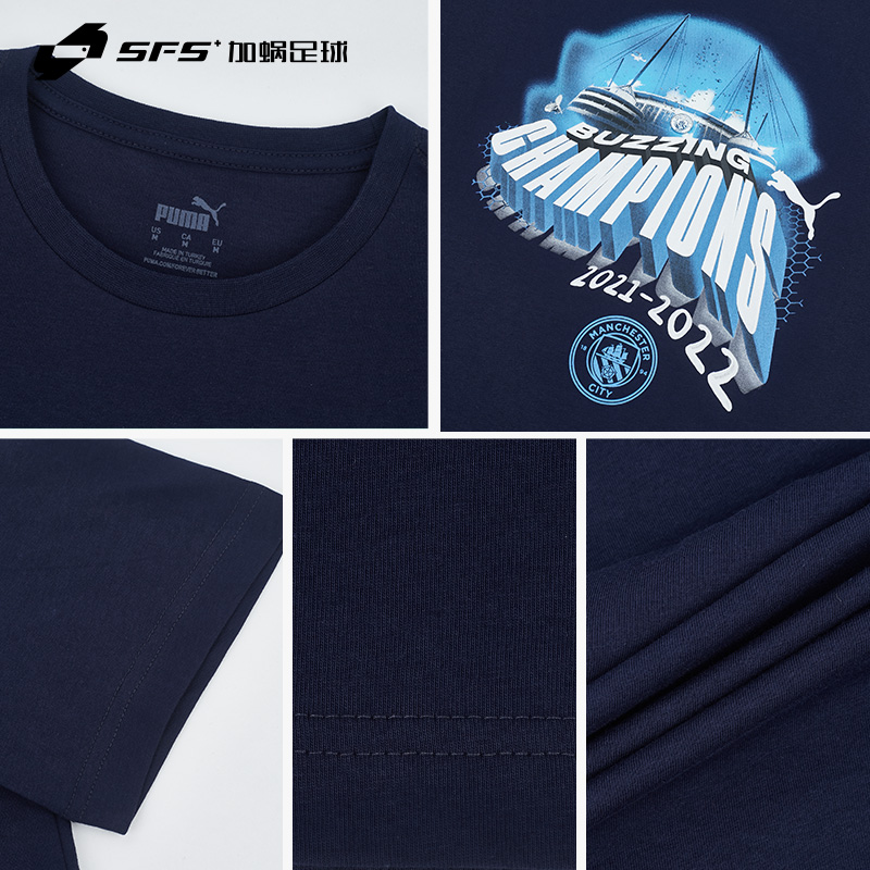 SFS彪马PUMA正品21/22曼城夺冠T球员同款纪念衫T恤773778-01