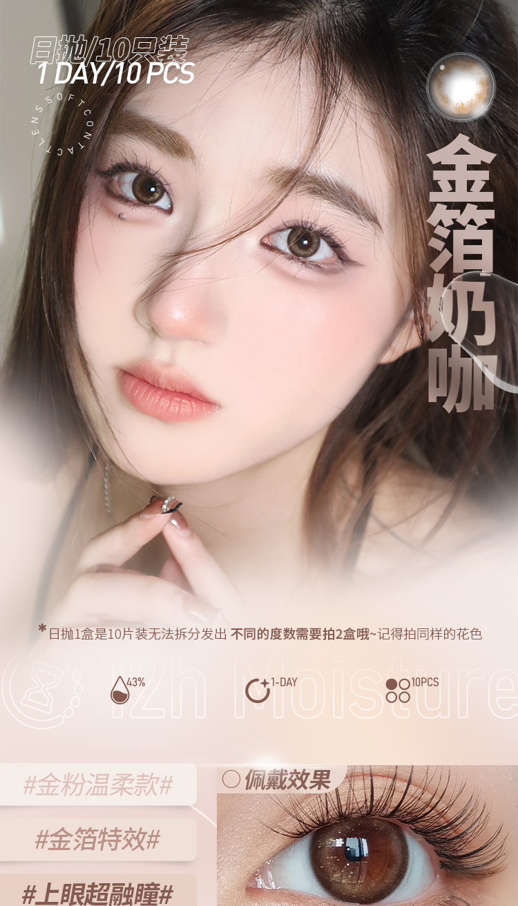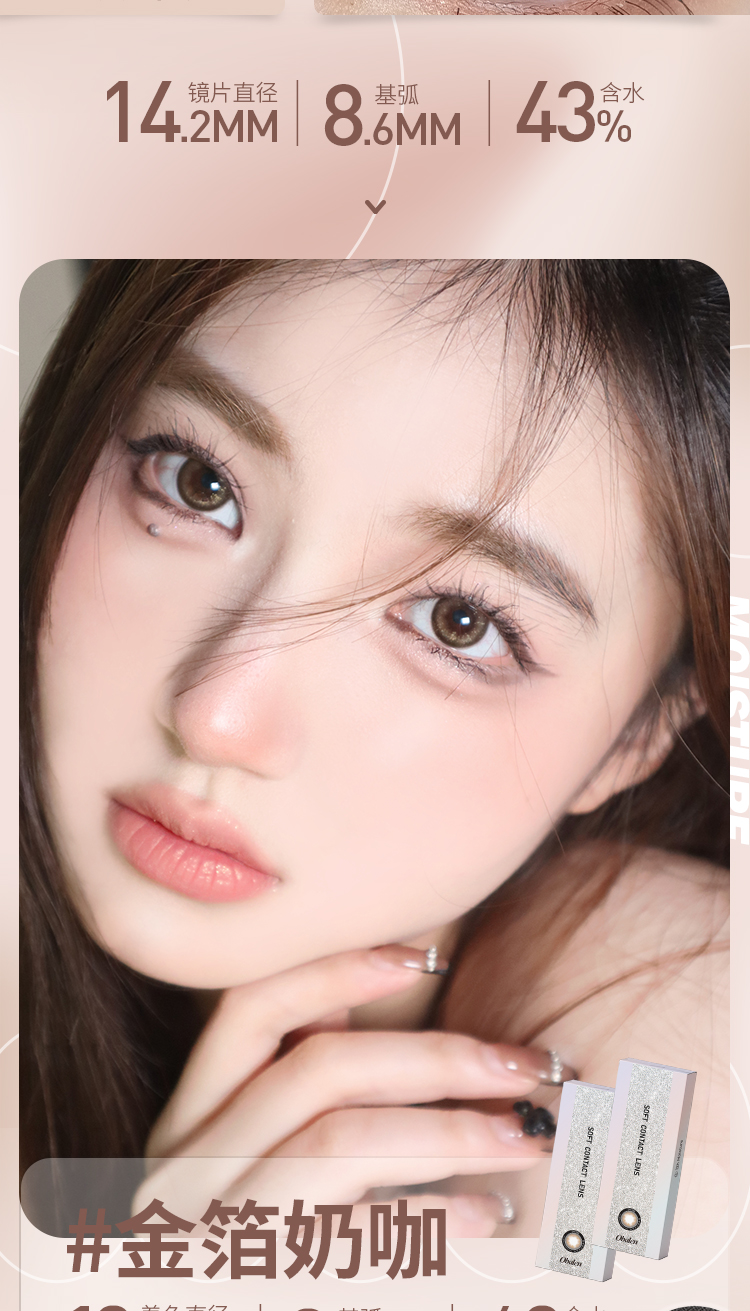 Obalen金箔奶咖百搭自然美瞳日抛网红款大直径14.2mm非离子隐形近视眼镜水润无感10片装