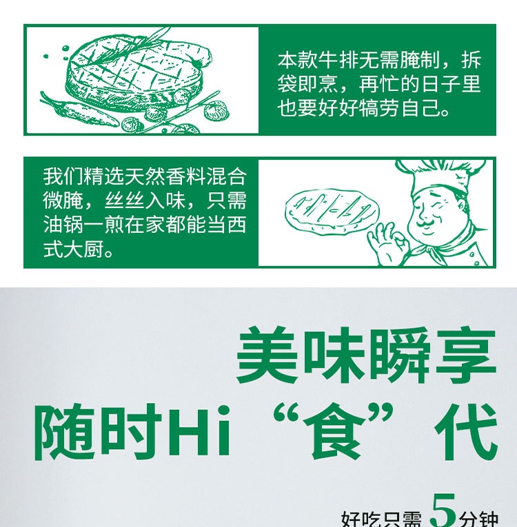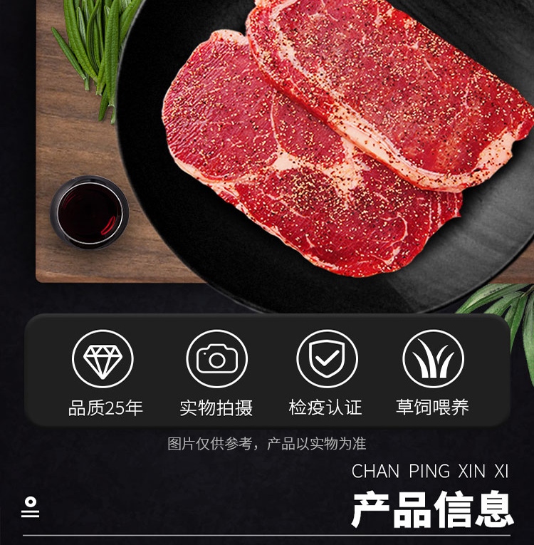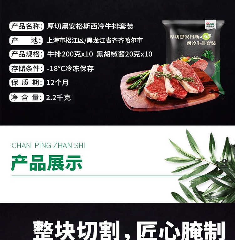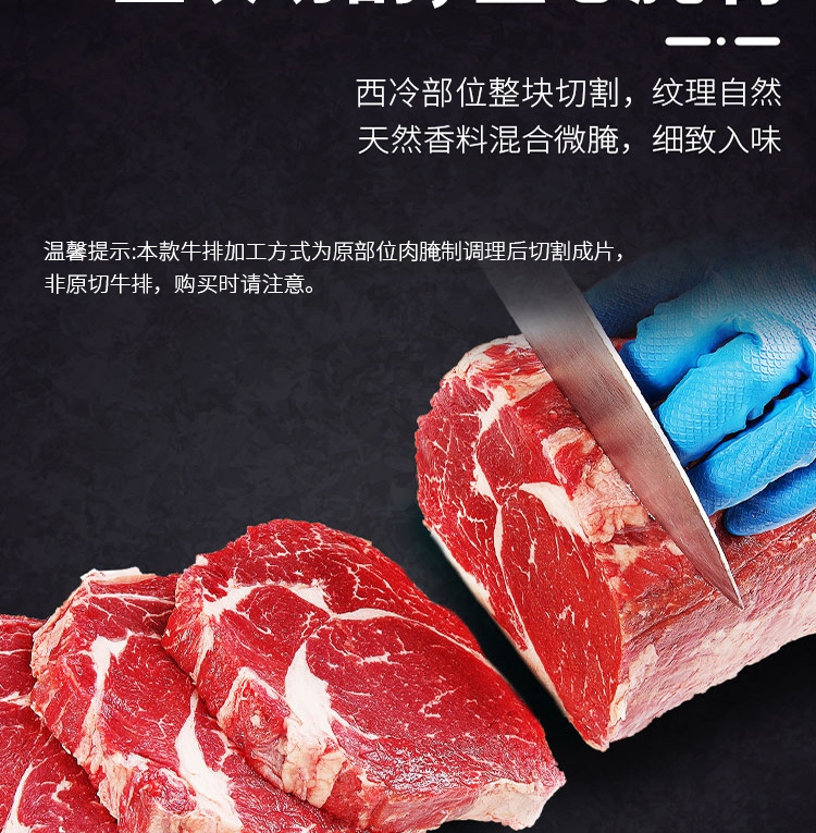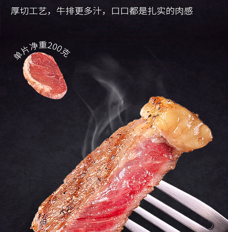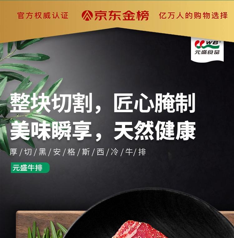 元盛 国产整切调理黑安格斯西冷牛排套装(2200克 /10片内含酱包)
