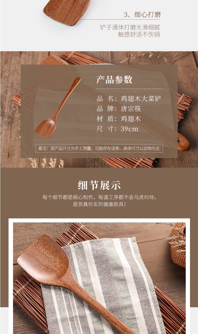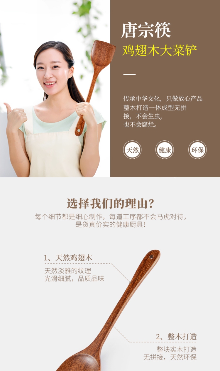 唐宗筷 鸡翅木锅铲 实木木铲 原木不粘锅用菜铲A6008
