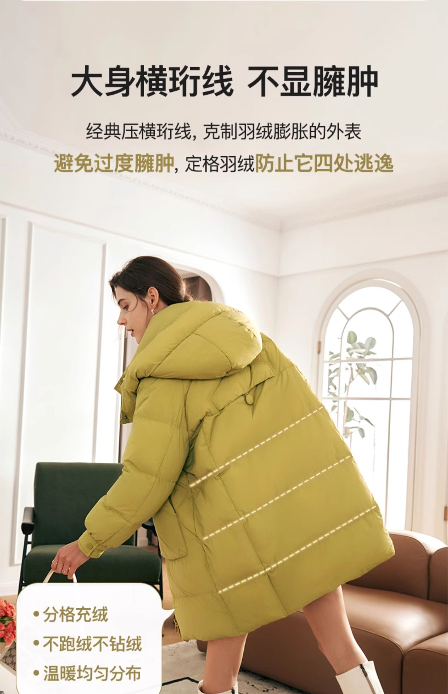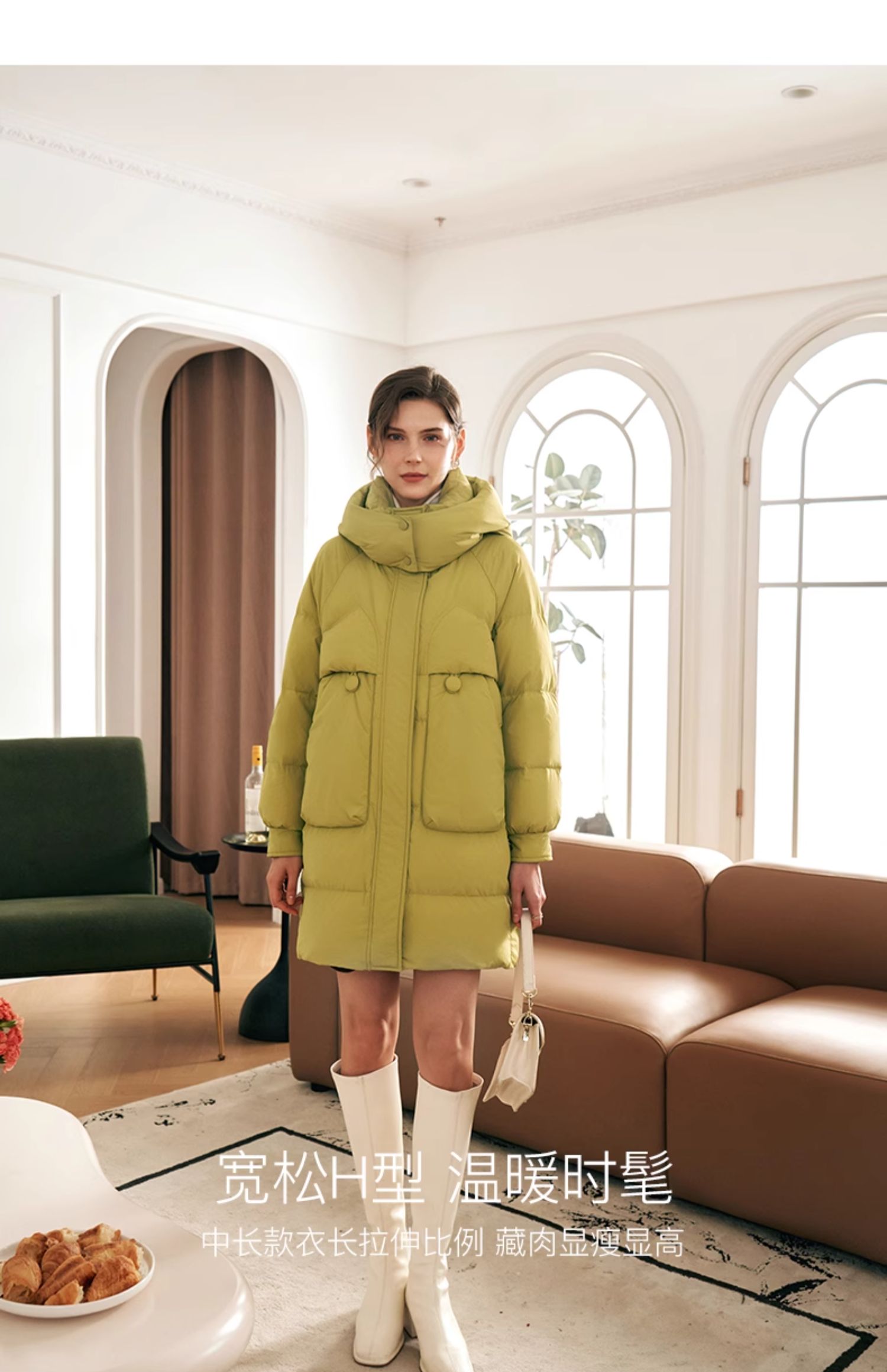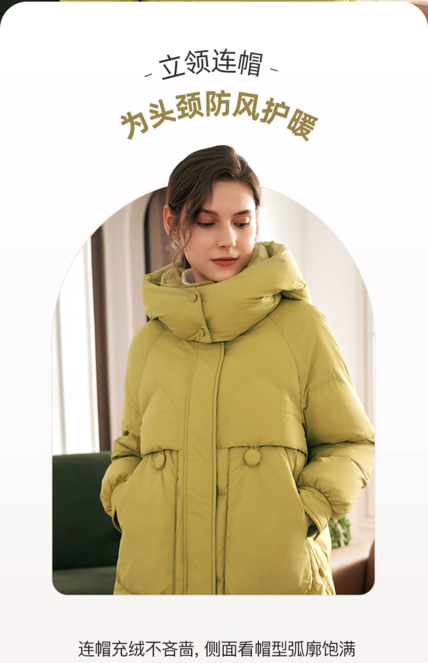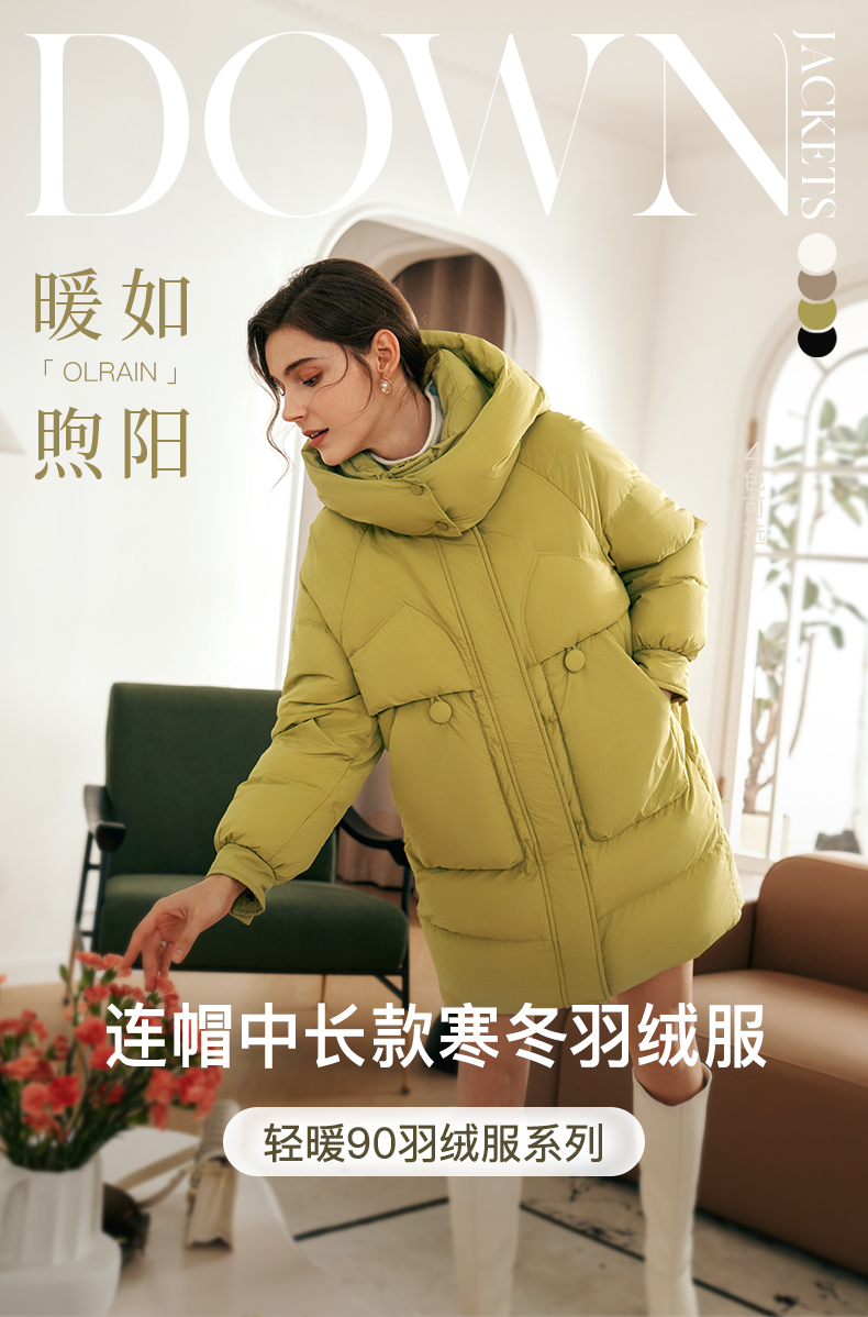 OLrain欧芮儿绿色中长款羽绒服女秋冬2024年新款时尚宽松显瘦棉服