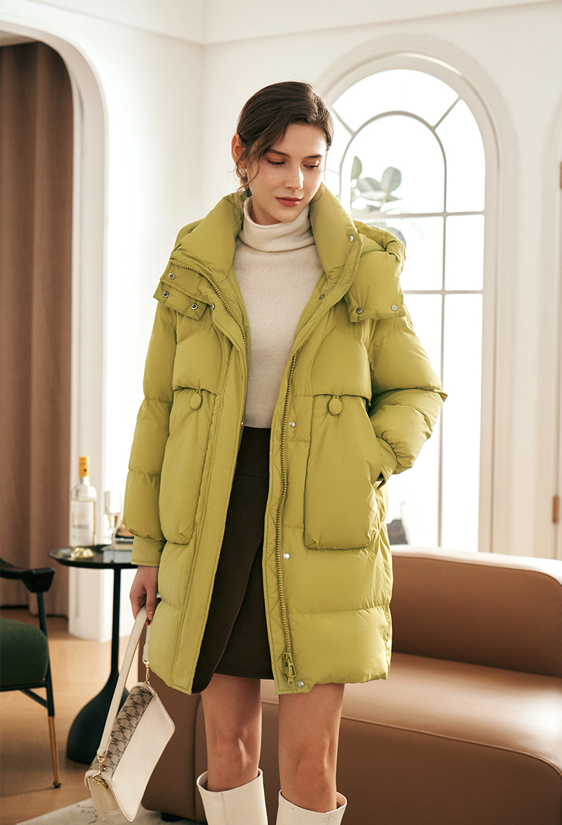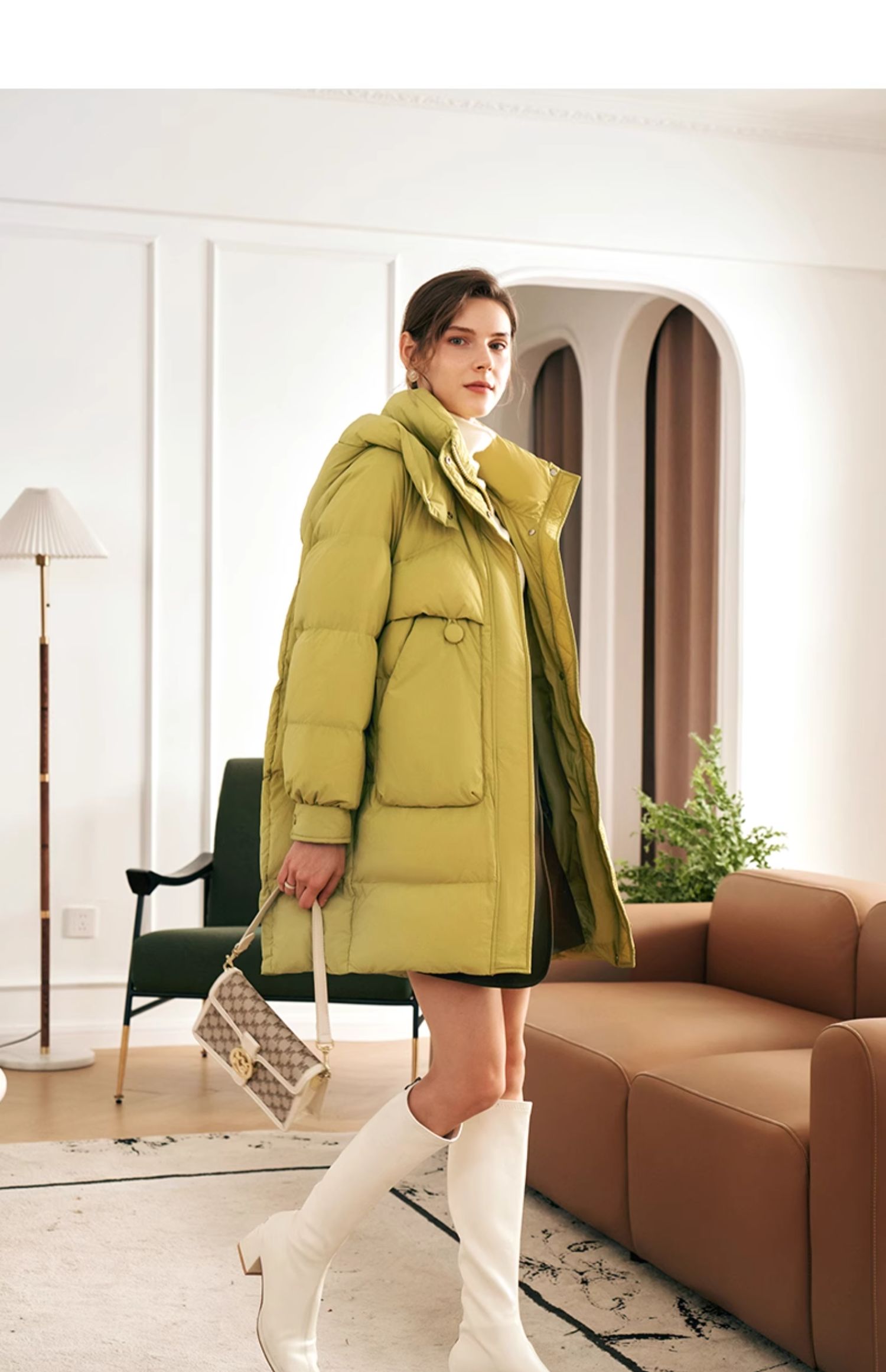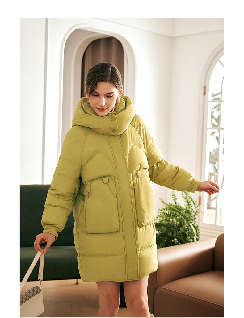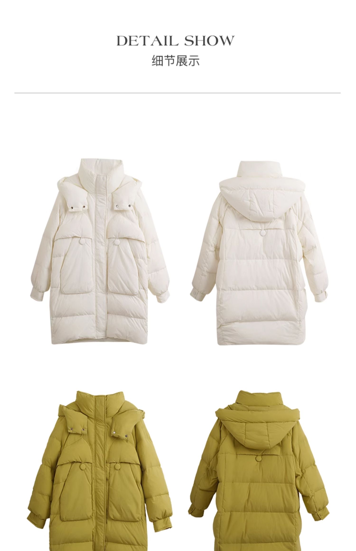 OLrain欧芮儿绿色中长款羽绒服女秋冬2024年新款时尚宽松显瘦棉服