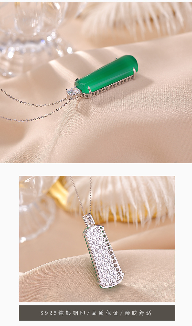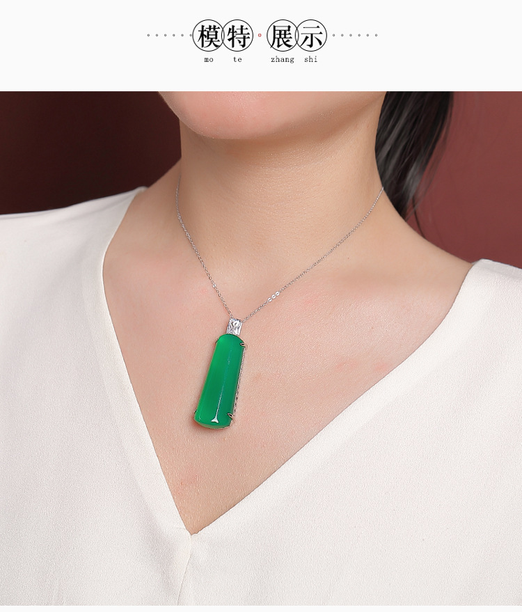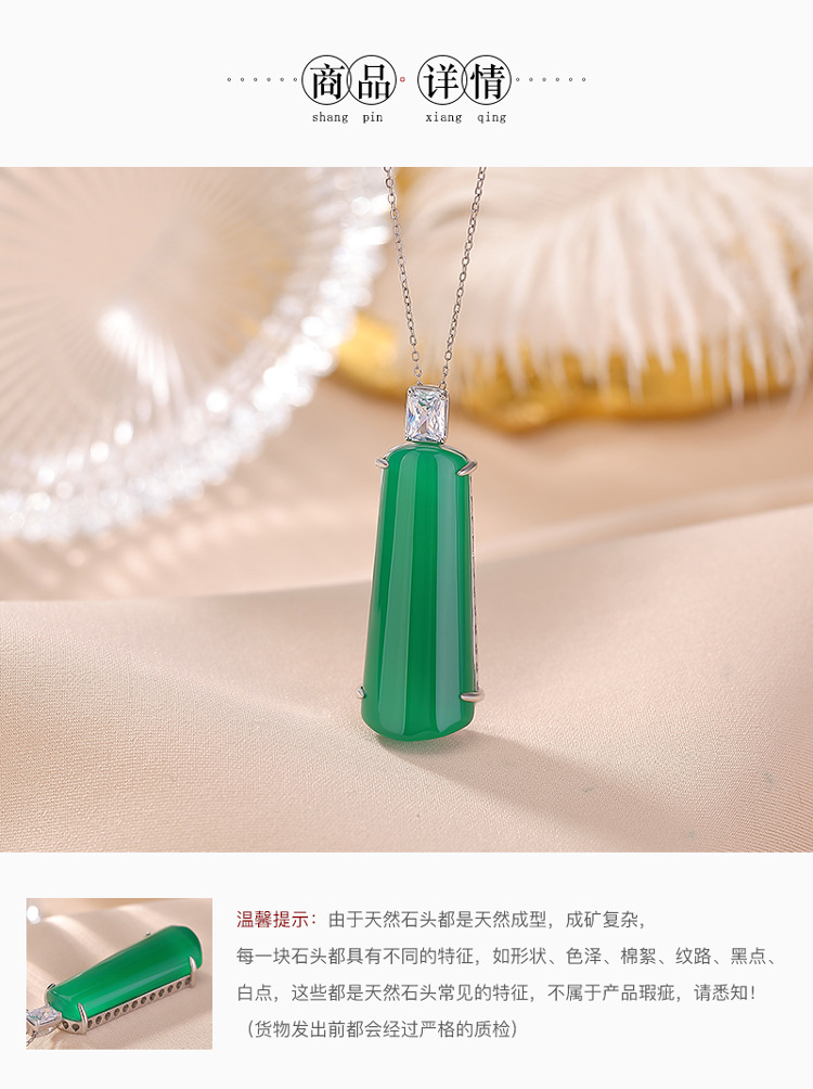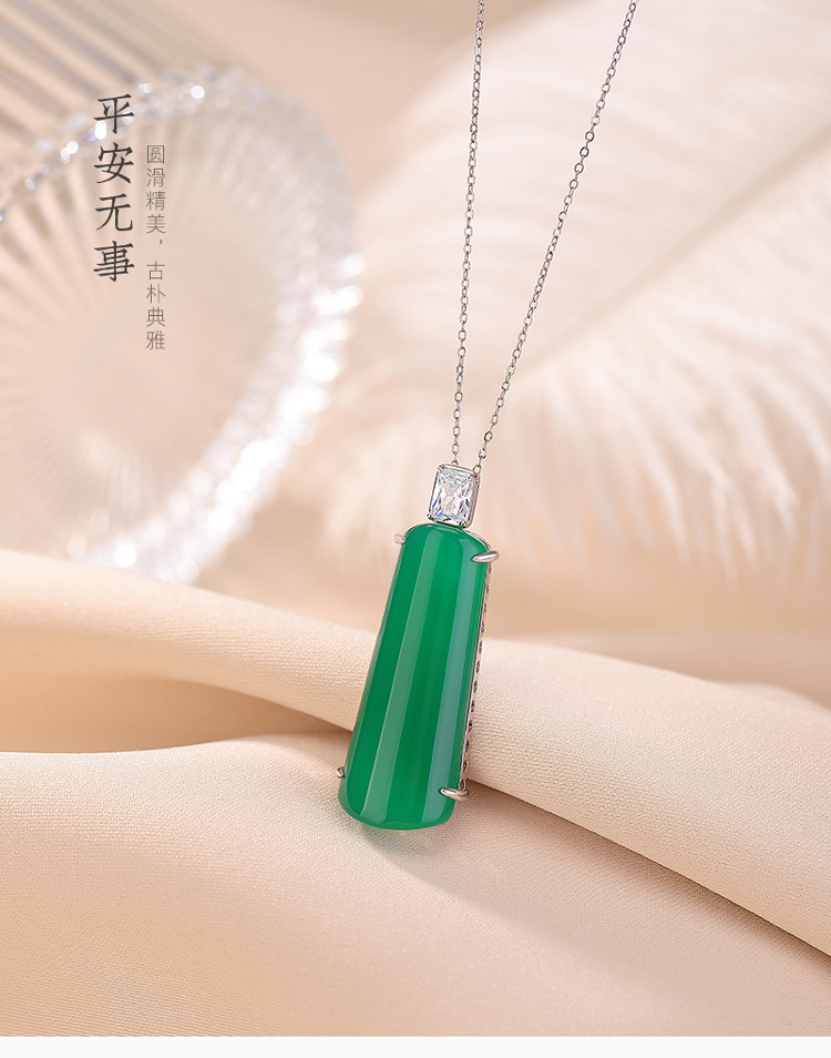 【清欢无事】S925纯银绿玉髓几何形无事牌吊坠【CW-DZ07200】