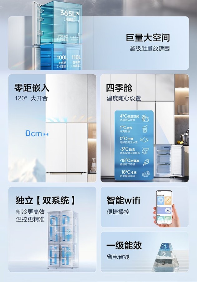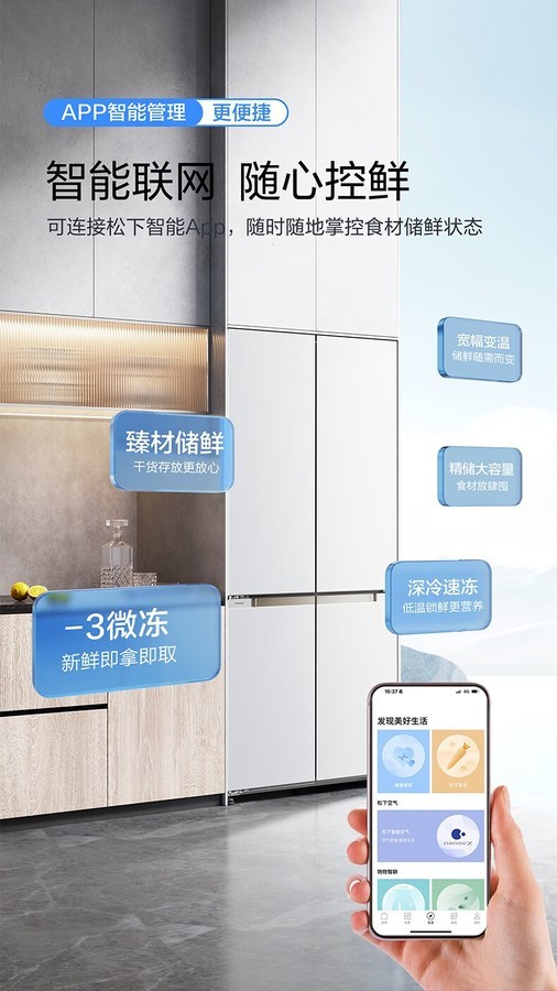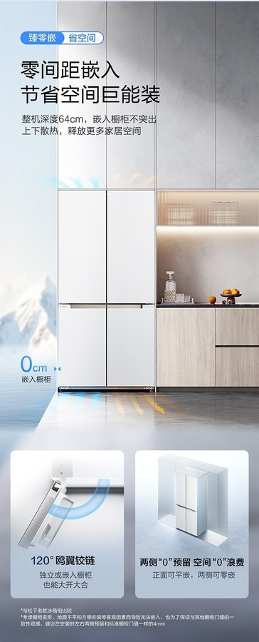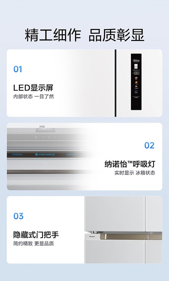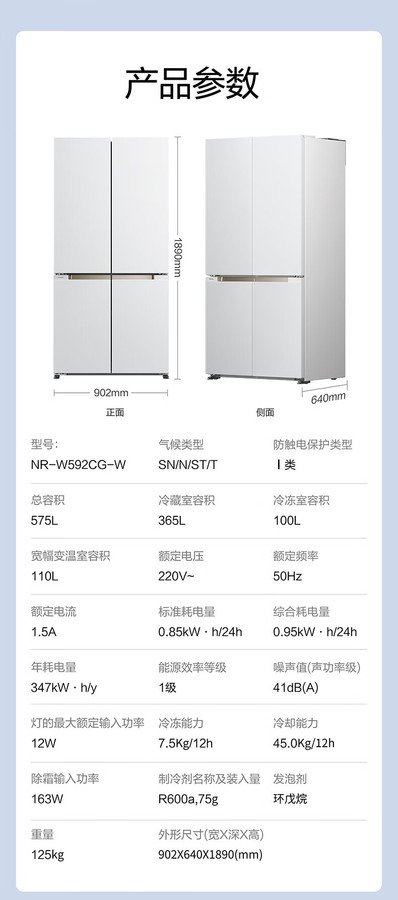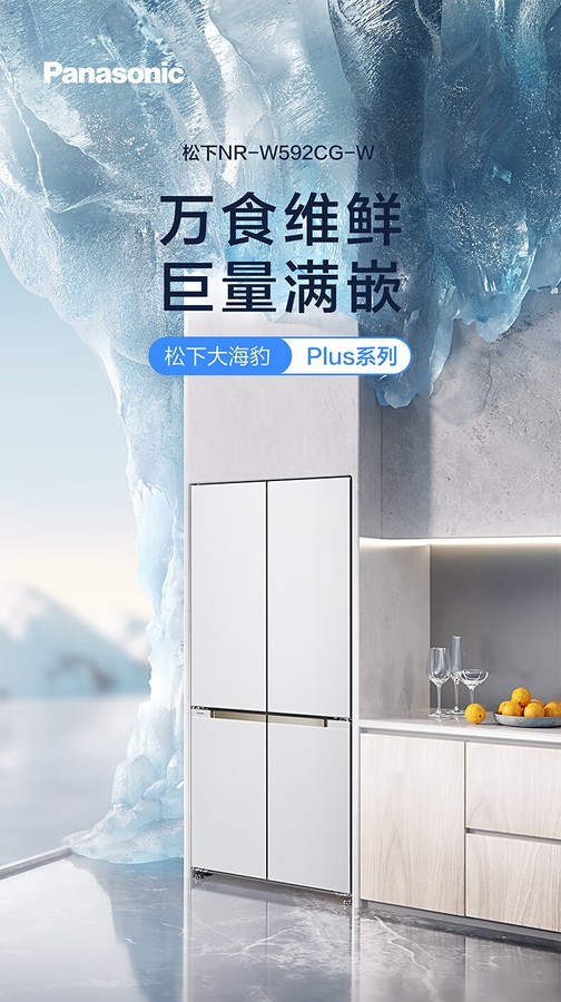 松下 冰箱 NR-W592CG-W 575升 十字四门 风冷 变频 一级能效 双循环 嵌入式 电脑控温