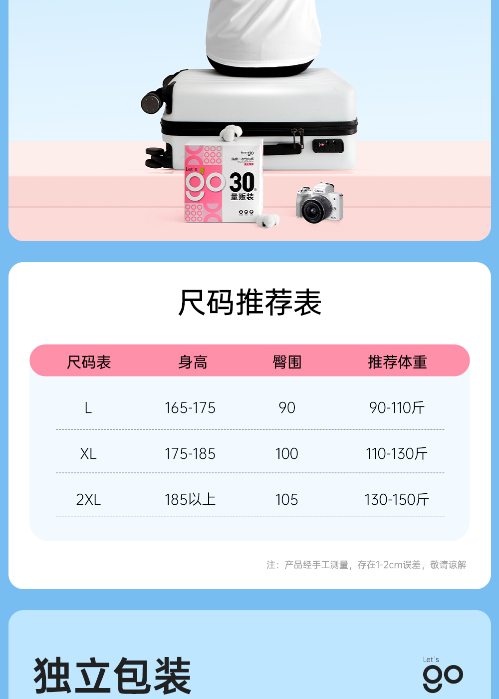 Freego 「30条量贩装」7A抗菌纯棉一次性内裤女款 舒适透气 独立包装 48小时发货