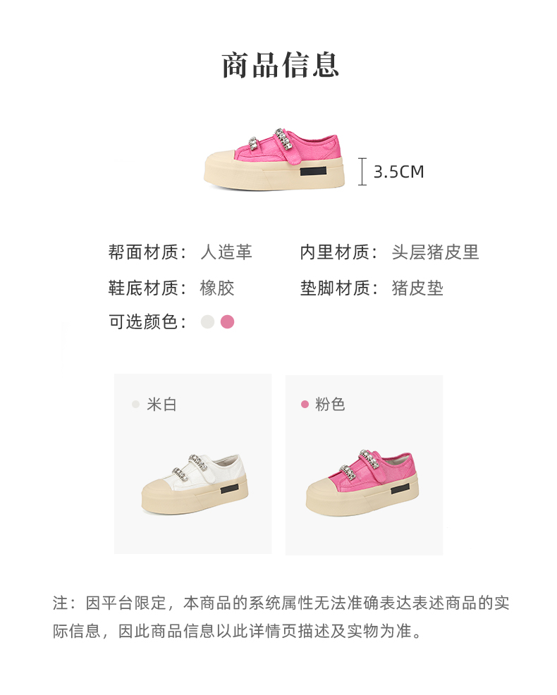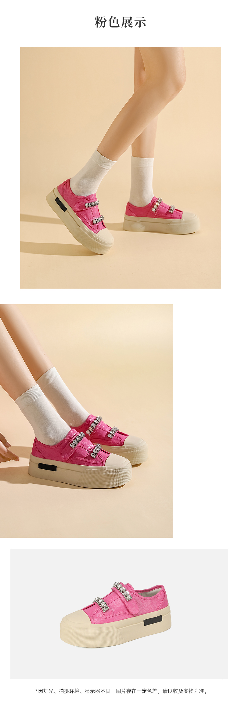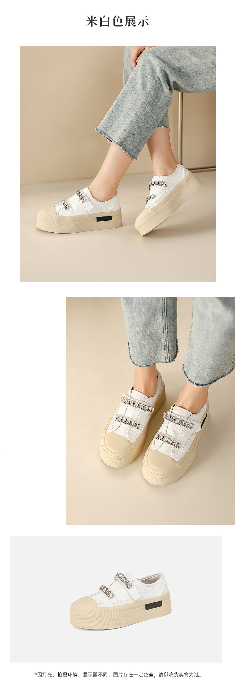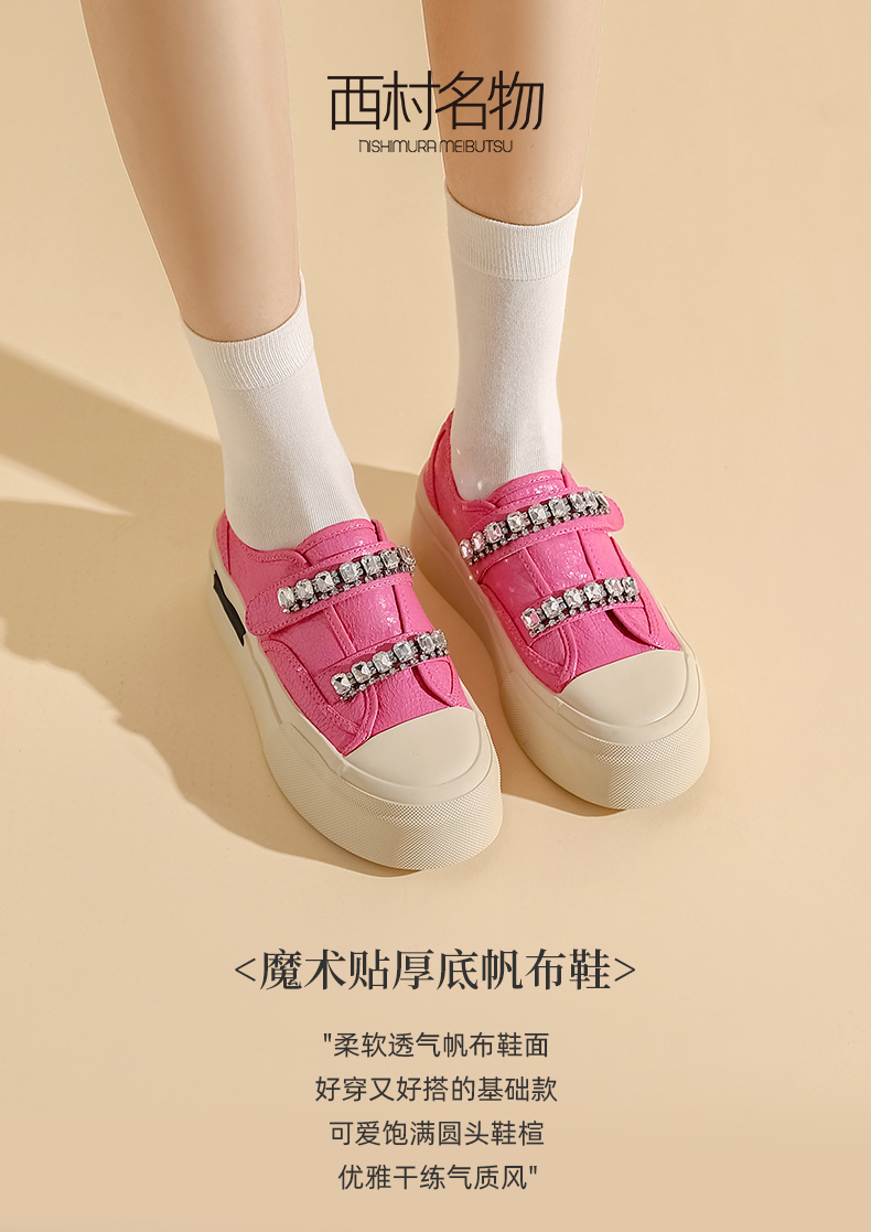 西村名物2023年春季新款魔术贴厚底小白鞋韩版水钻休闲鞋女33311