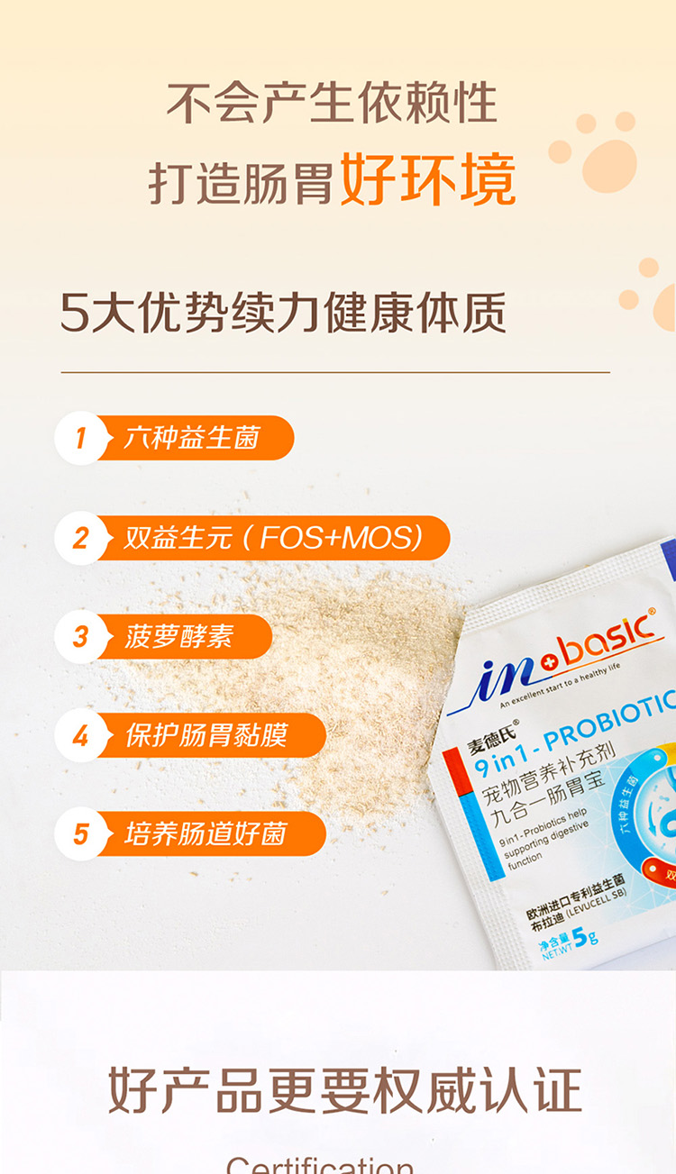 麦德氏九合一益生菌犬猫拉稀呕吐腹泻食欲不振宠物肠胃调理25g