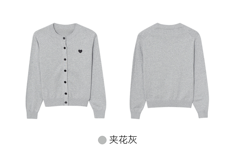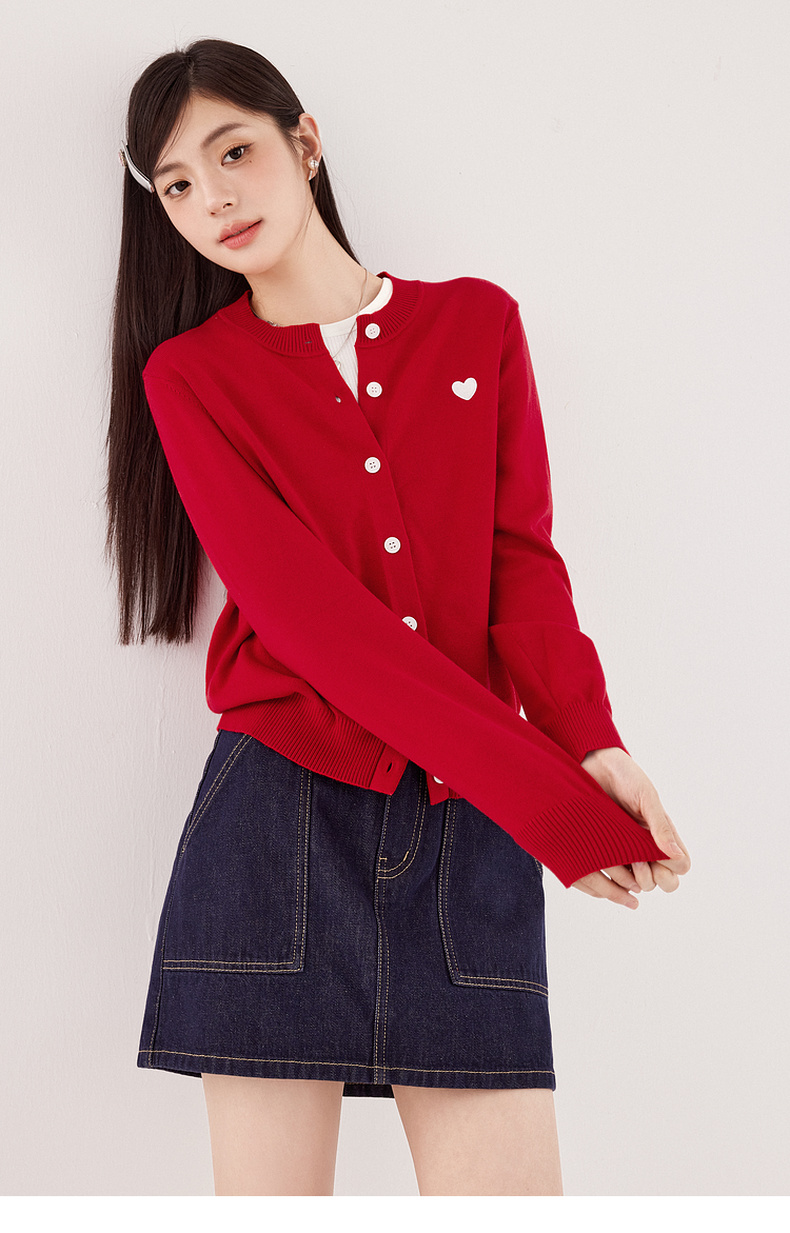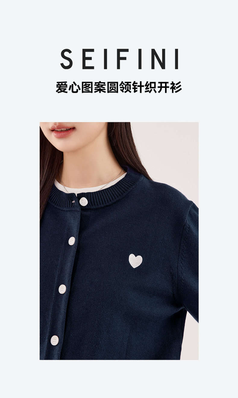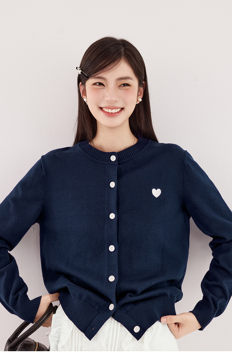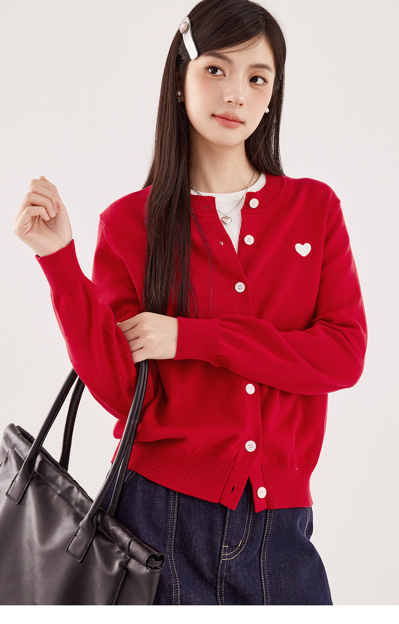【严选】【心动毛衣】诗凡黎圆领爱心图案针织开衫2024秋新款流行百搭上衣7F7330071