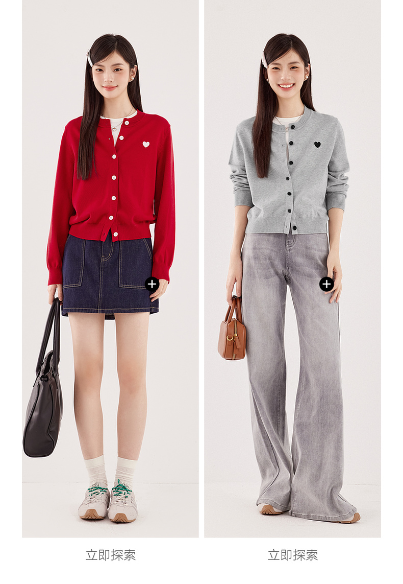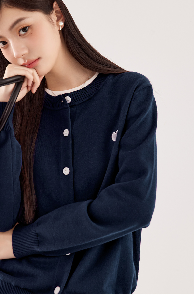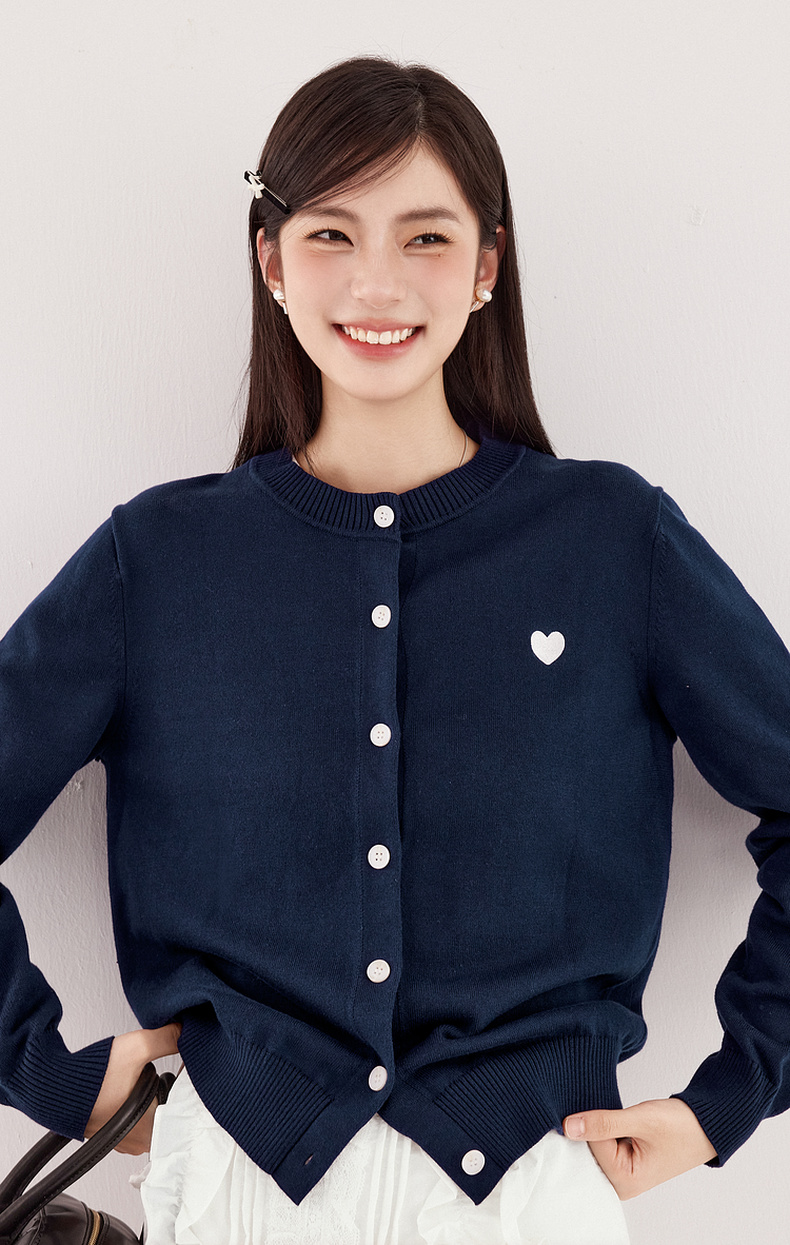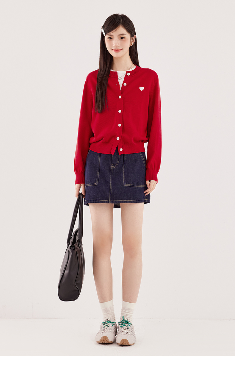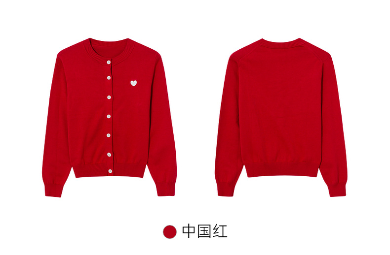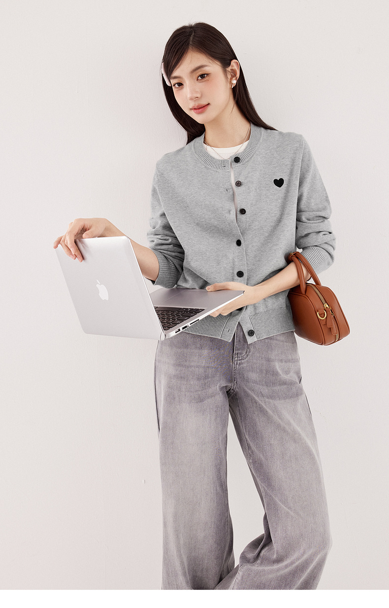 【严选】【心动毛衣】诗凡黎圆领爱心图案针织开衫2024秋新款流行百搭上衣7F7330071