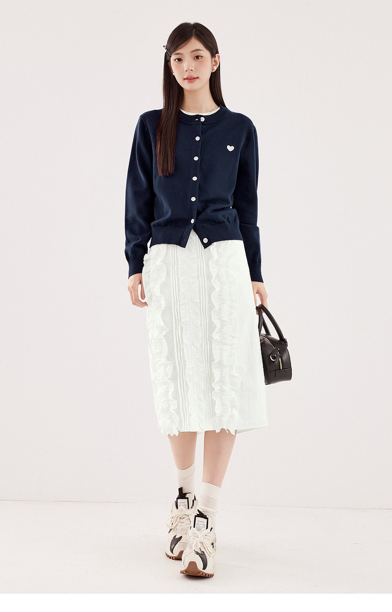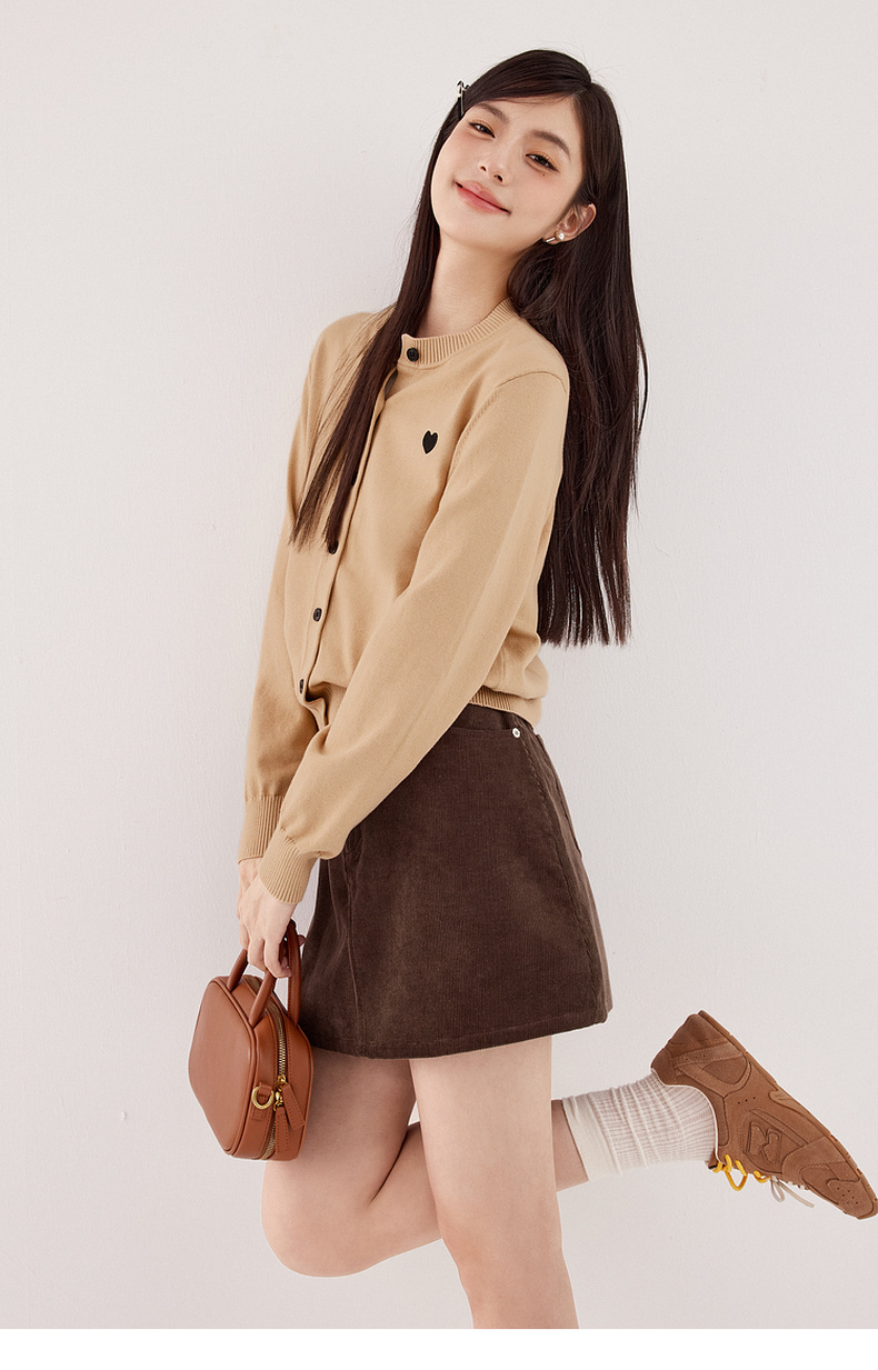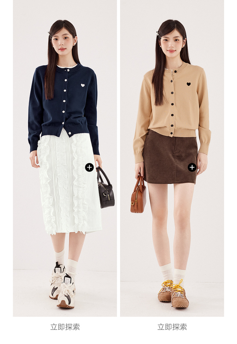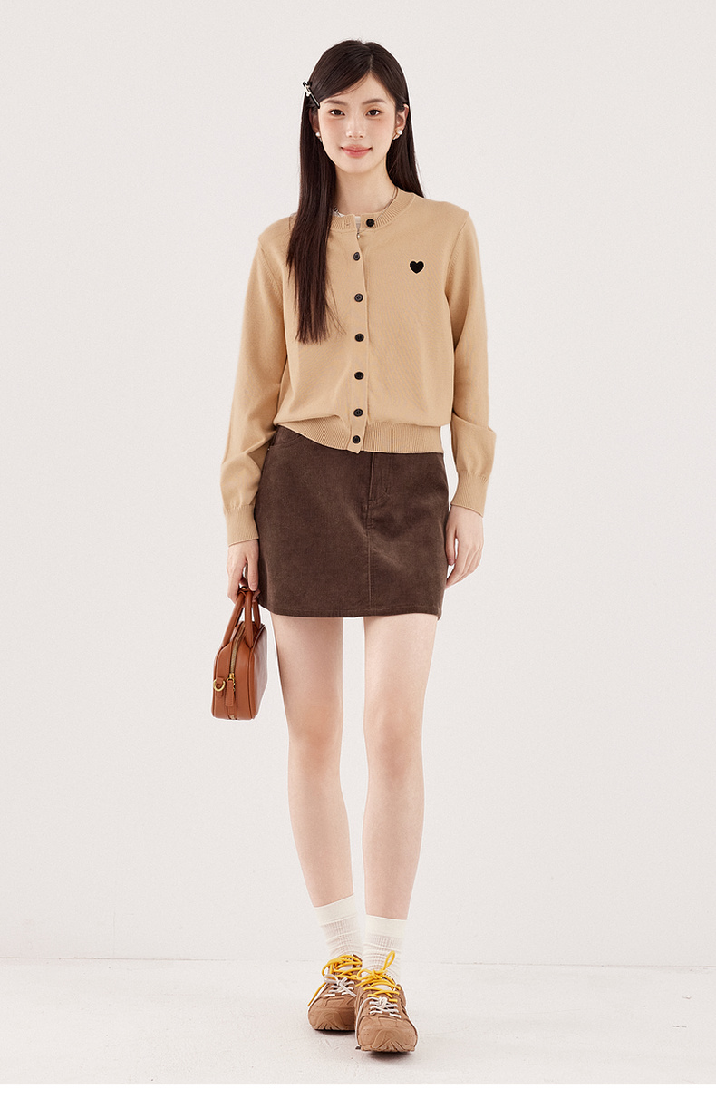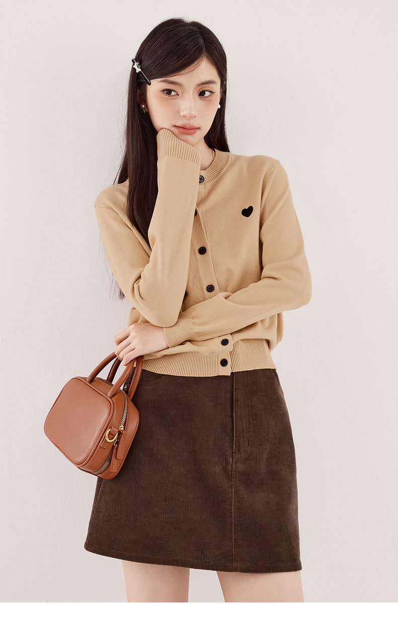 【严选】【心动毛衣】诗凡黎圆领爱心图案针织开衫2024秋新款流行百搭上衣7F7330071