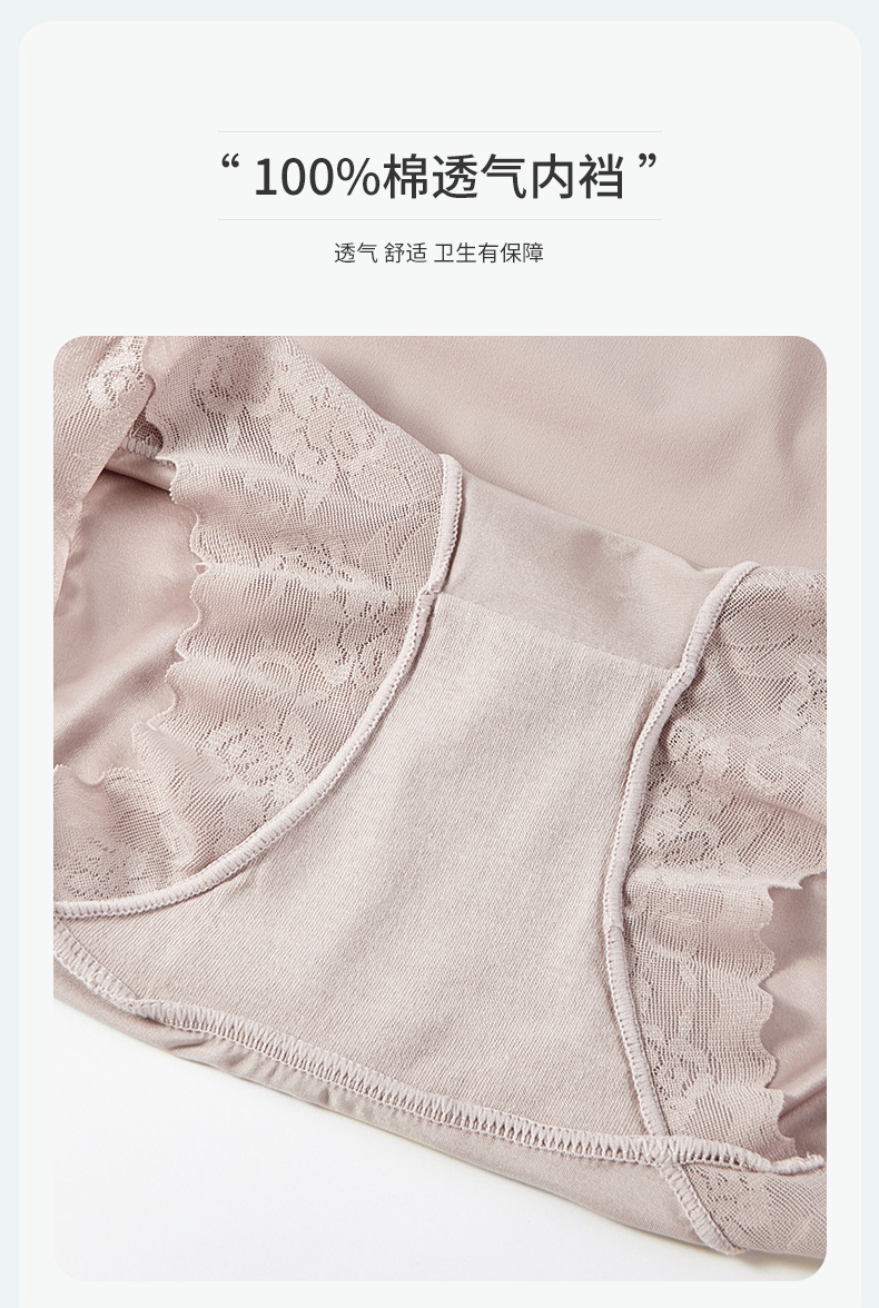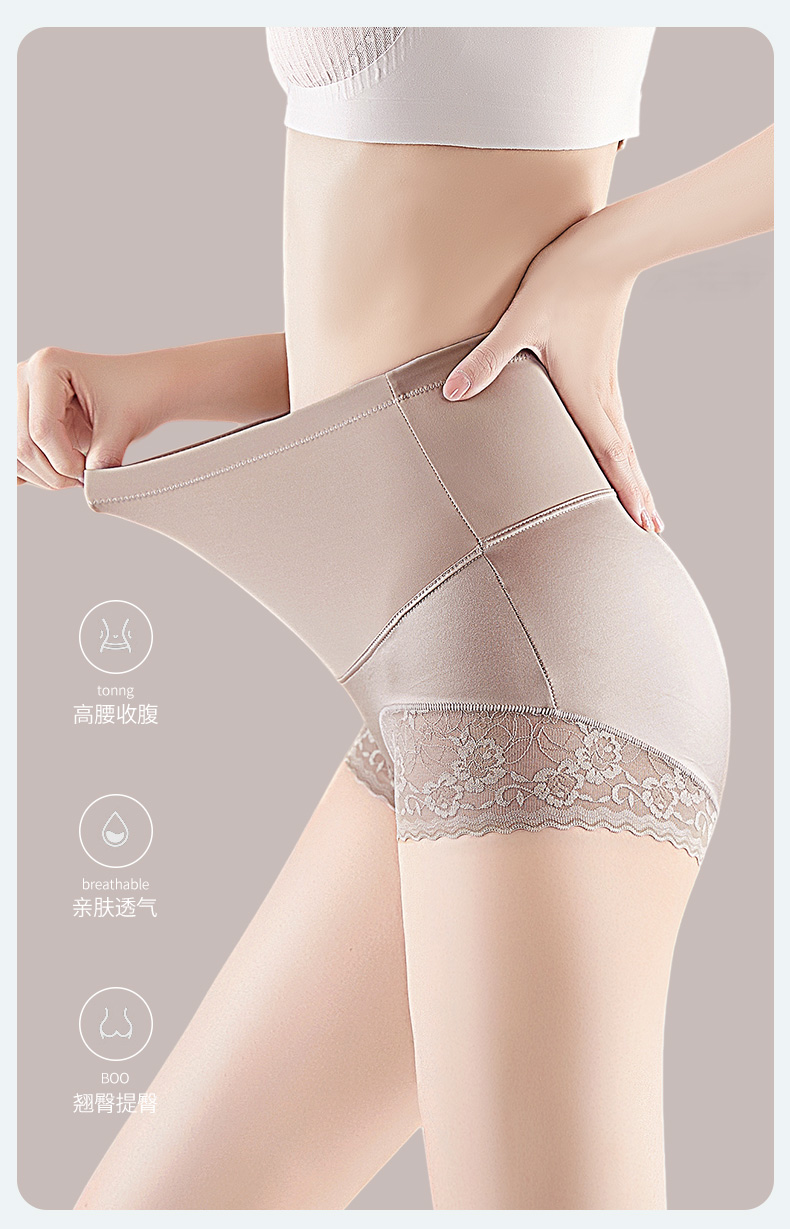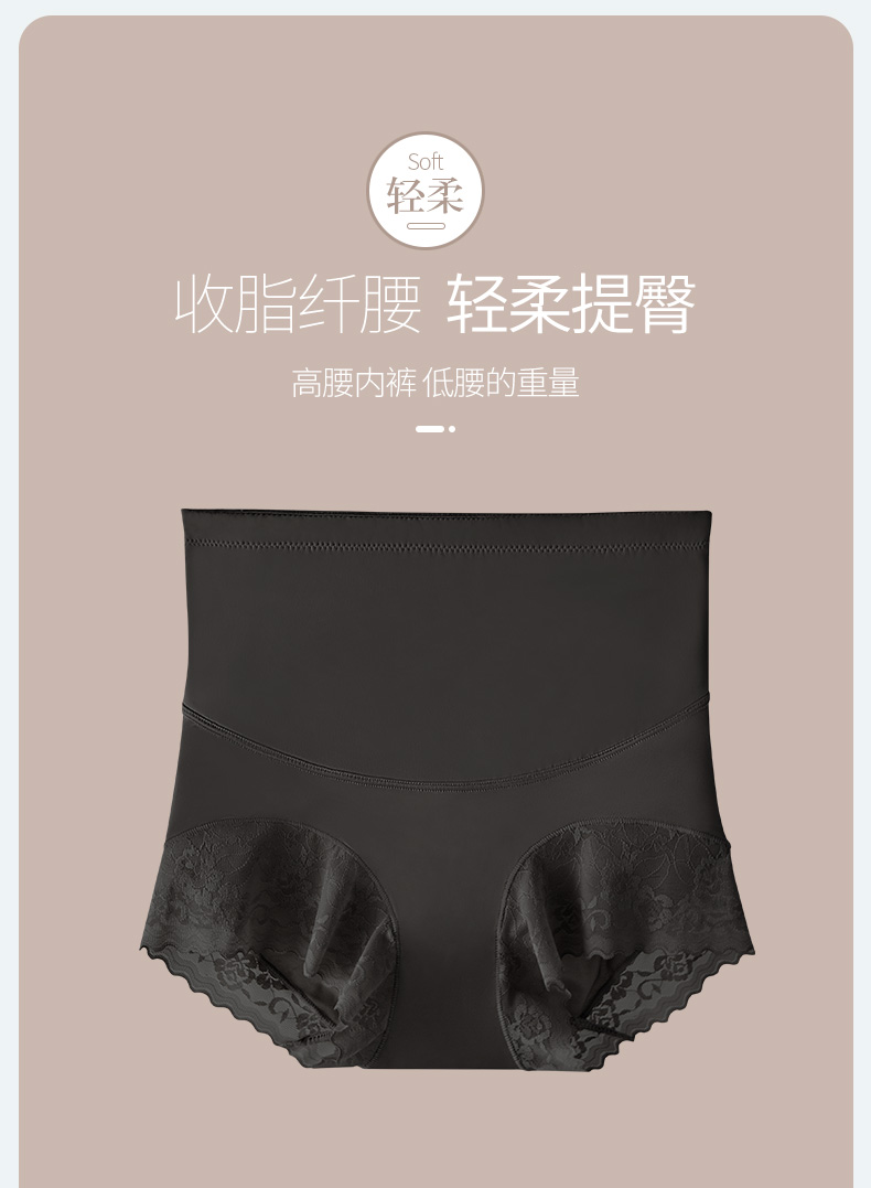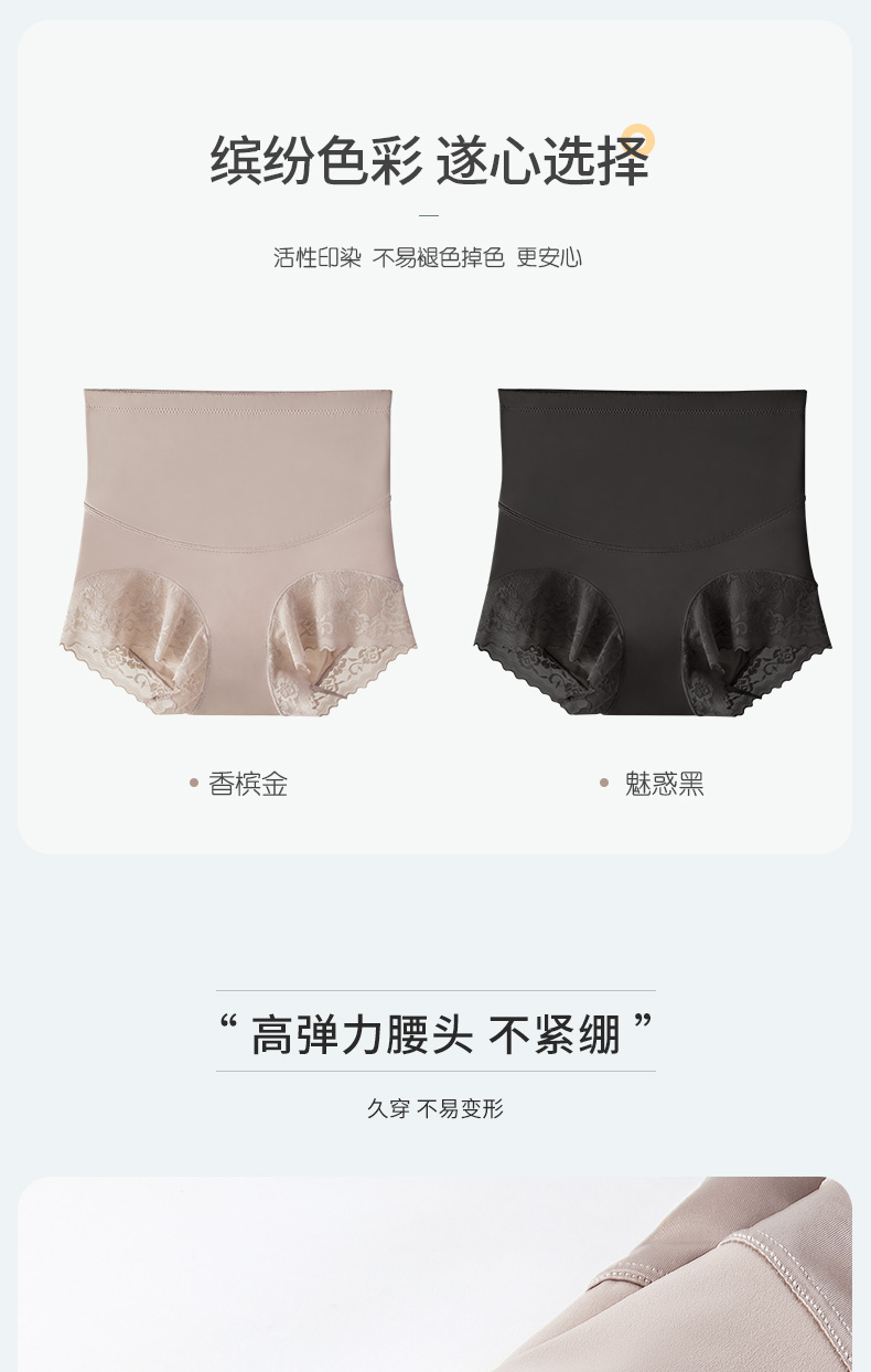 洁丽雅女士高腰收腹裤舒适透气双层纯棉内裆性感蕾丝高级感内裤