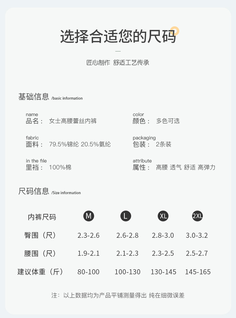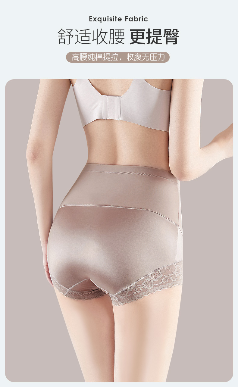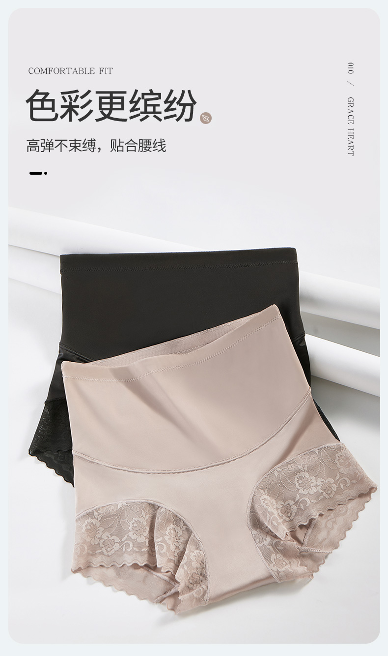 洁丽雅女士高腰收腹裤舒适透气双层纯棉内裆性感蕾丝高级感内裤