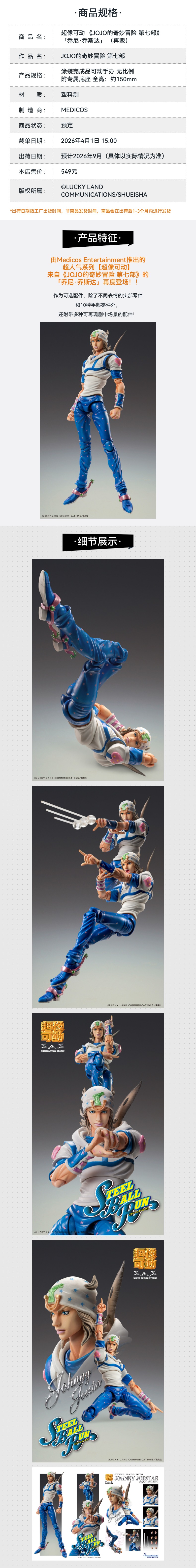 【GSC预售定金】超像可动 《JOJO的奇妙冒险 第七部》 「乔尼·乔斯达」 (再贩)