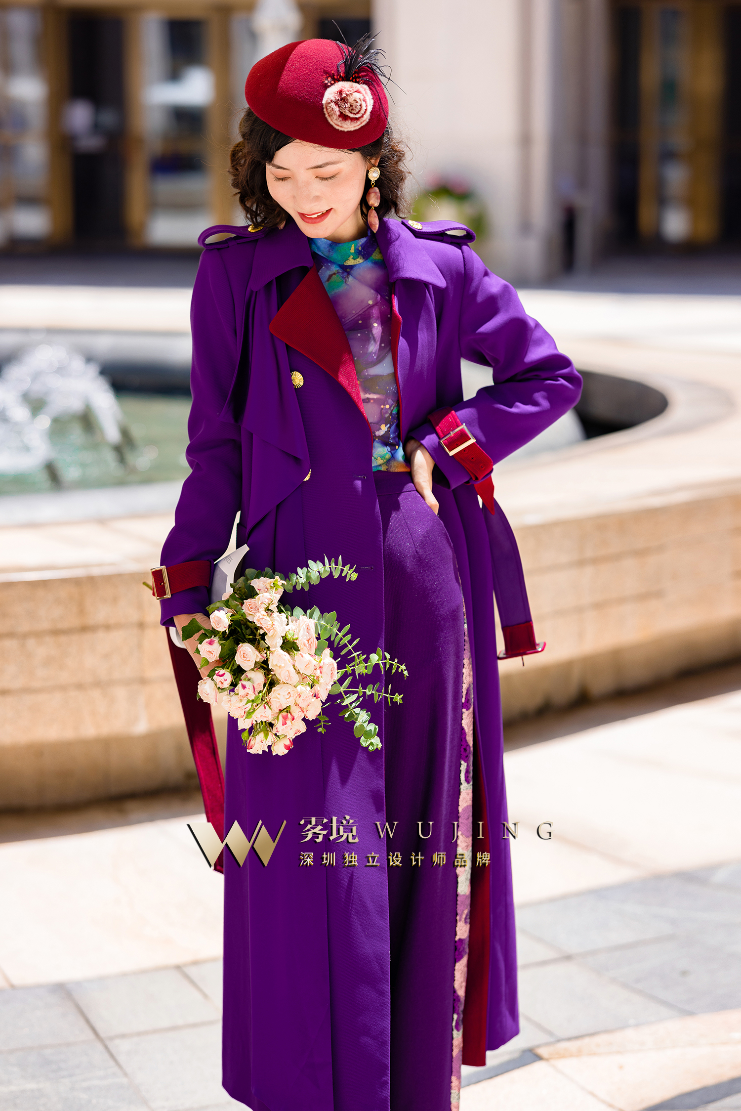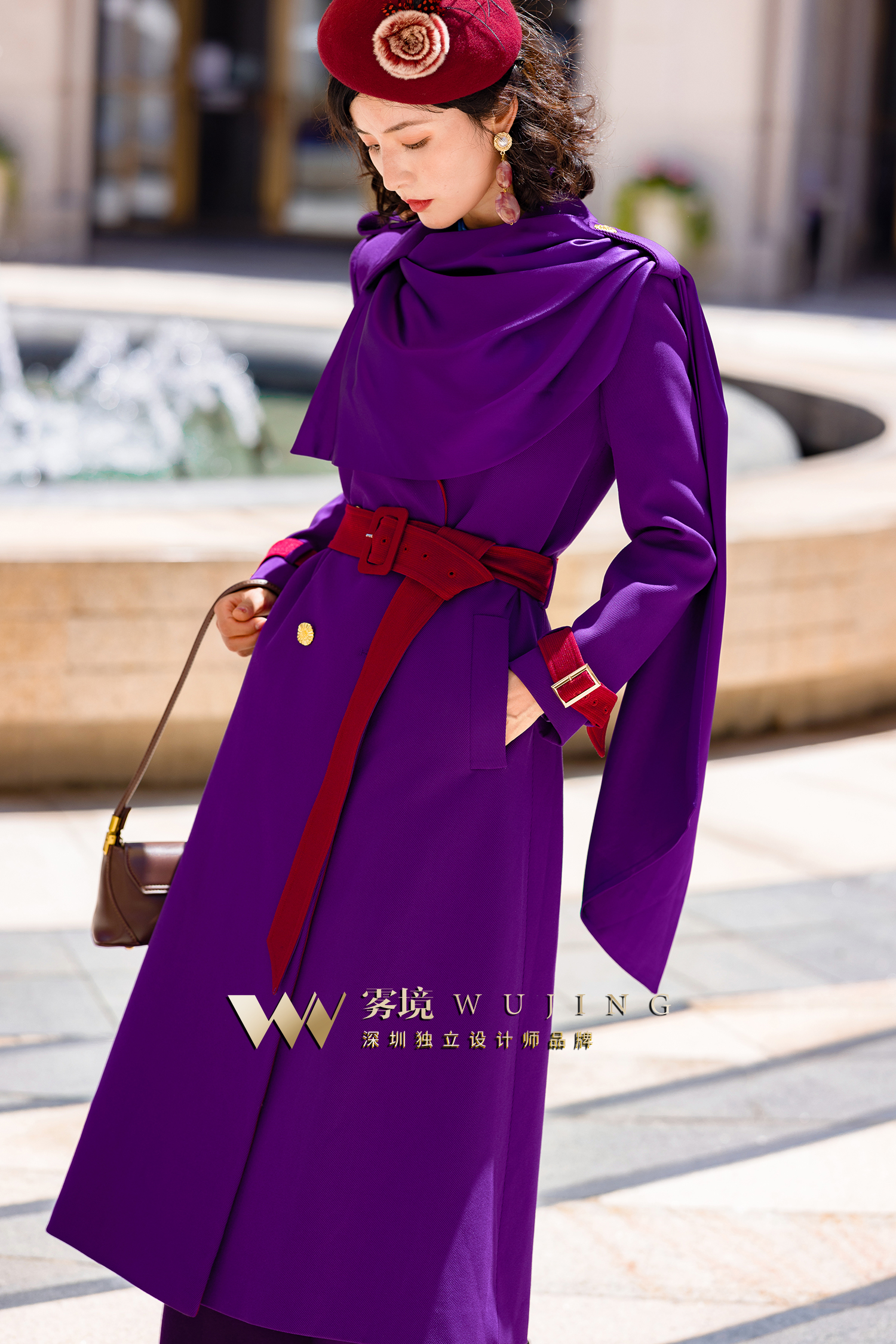 2202189 青都紫薇 厚织双色斜纹醋酸缎外套 雾境 (腰带为紫色)