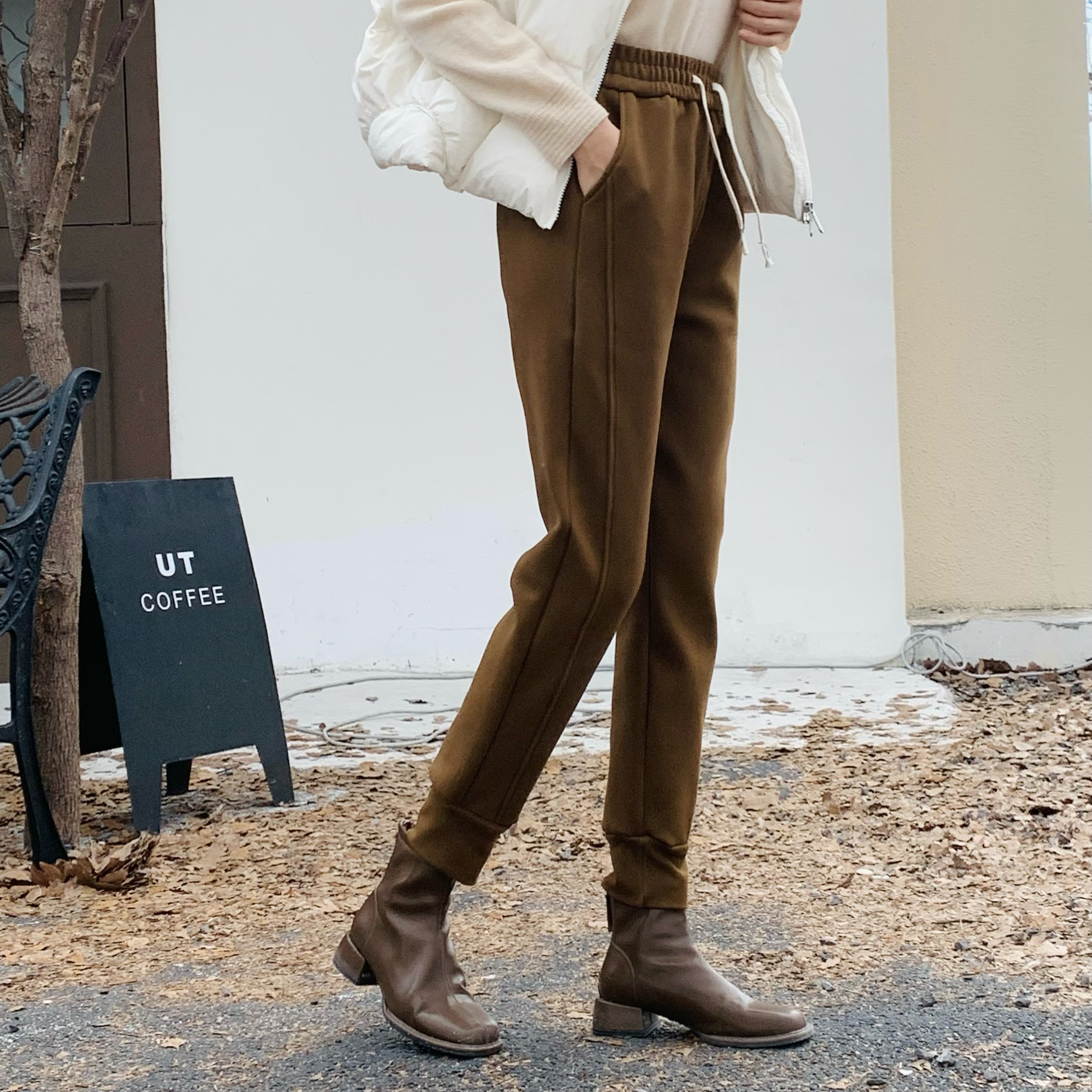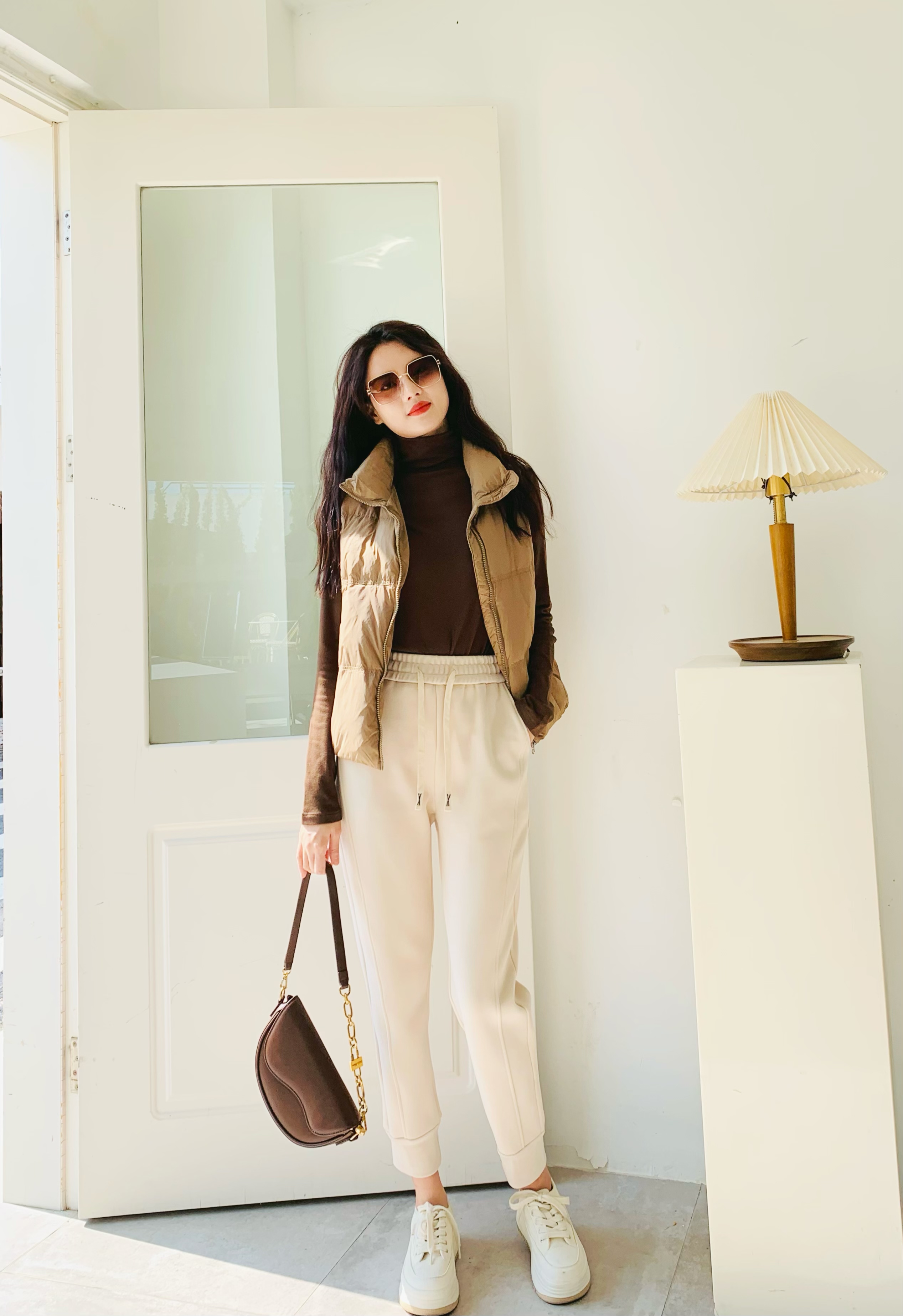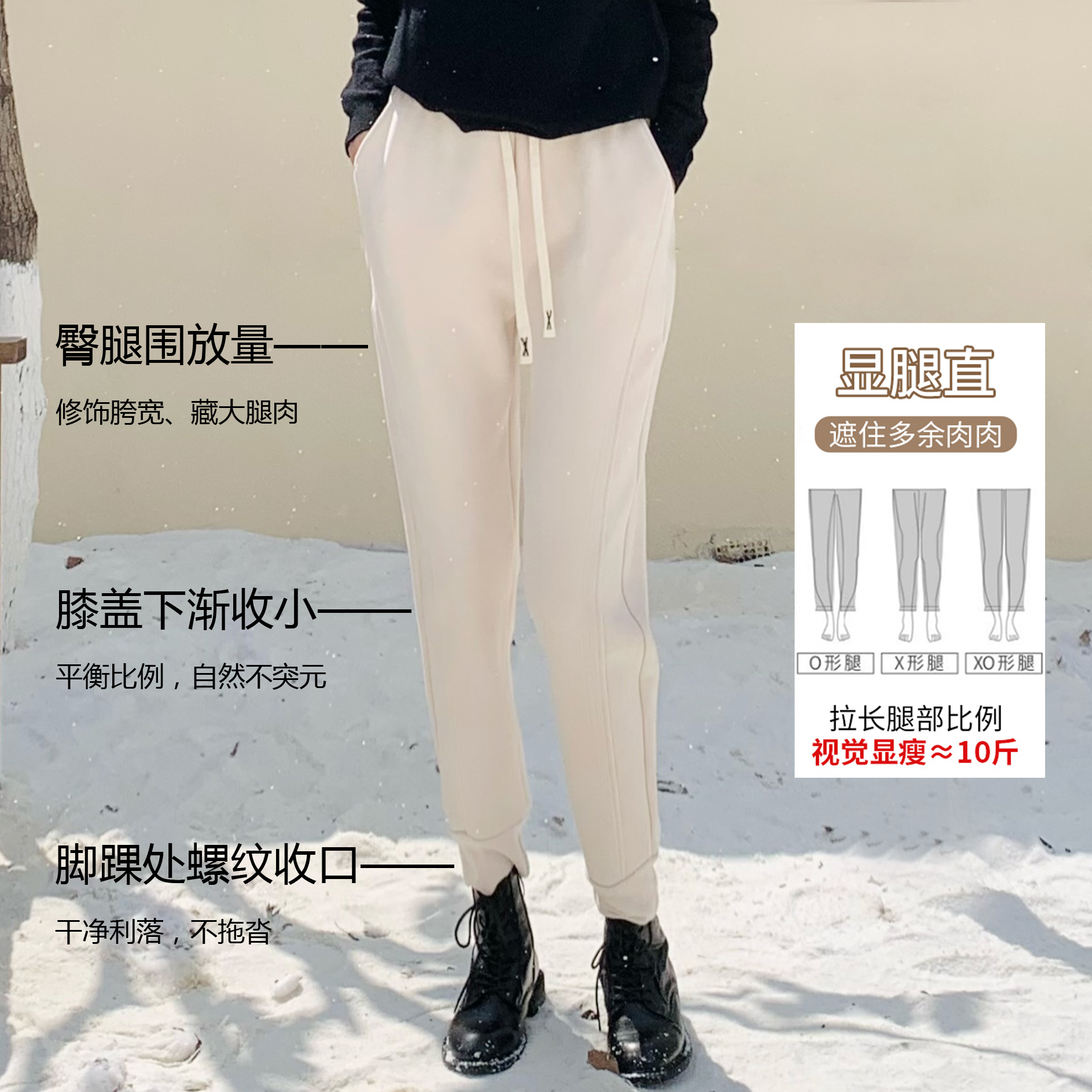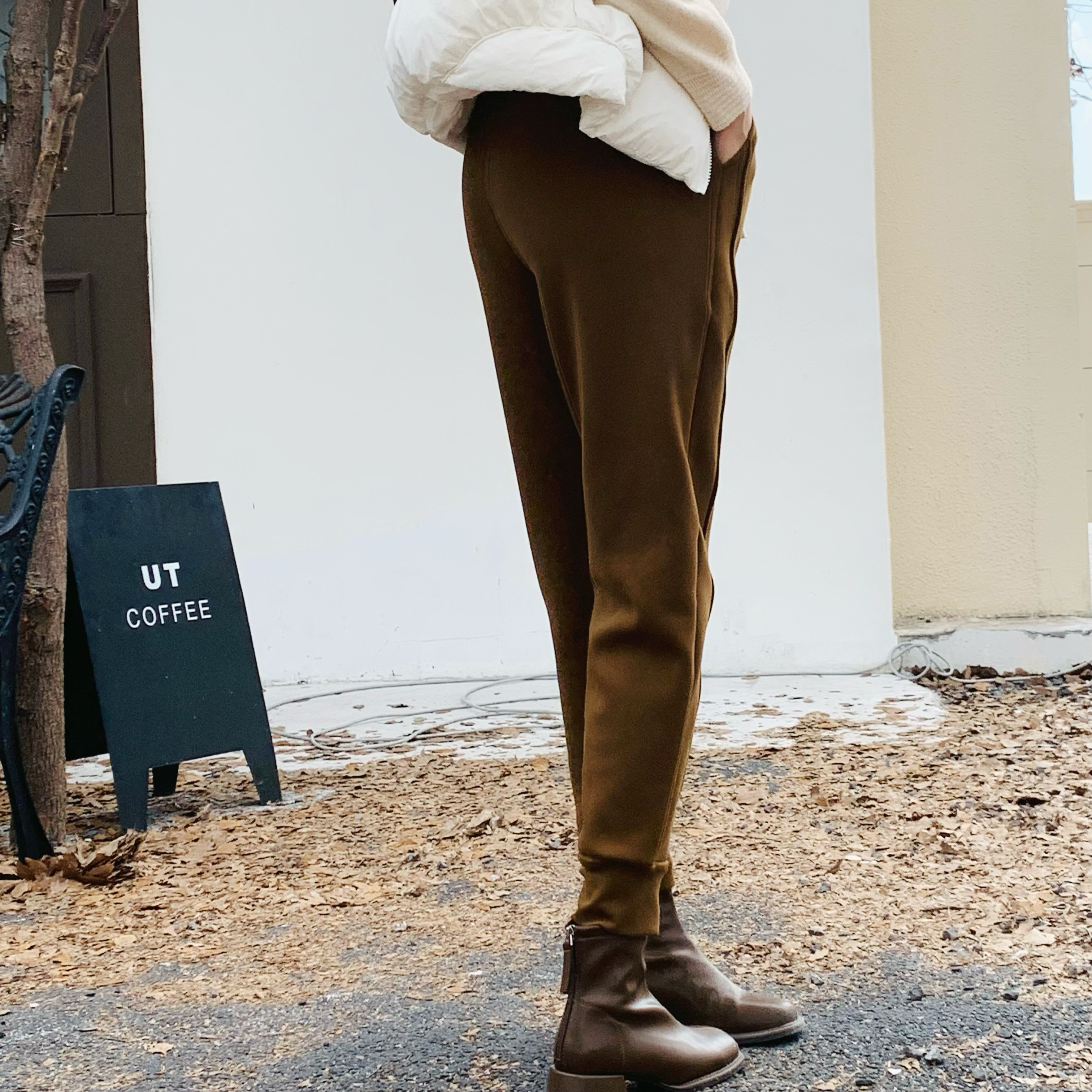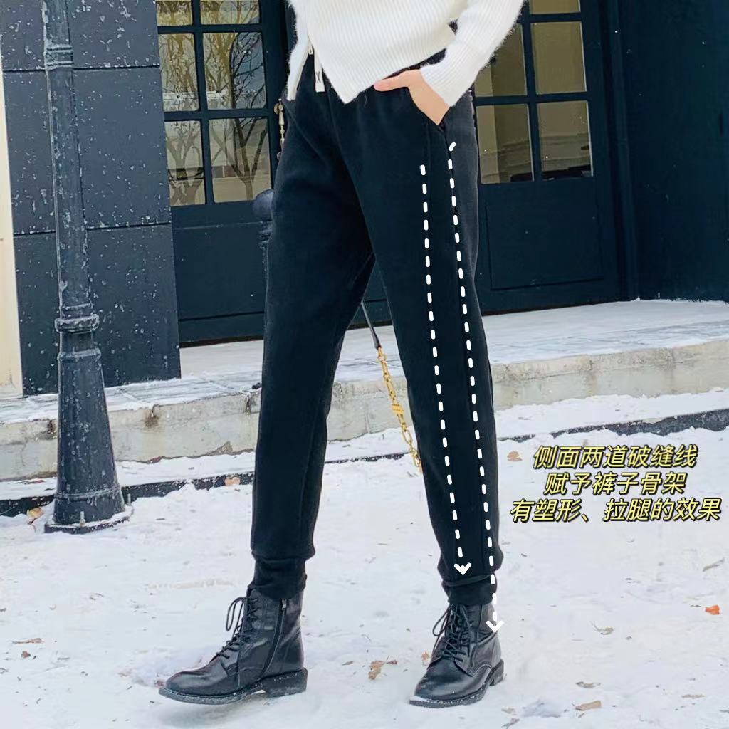 前面小脚裤样子,后面拼接螺纹,舒服不勒