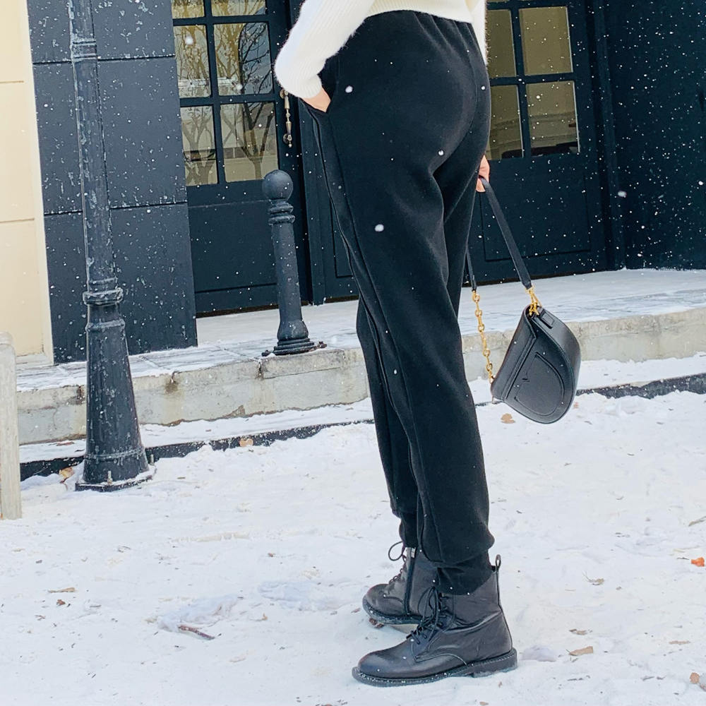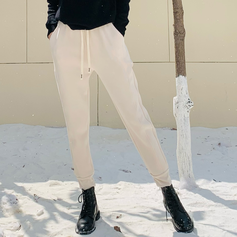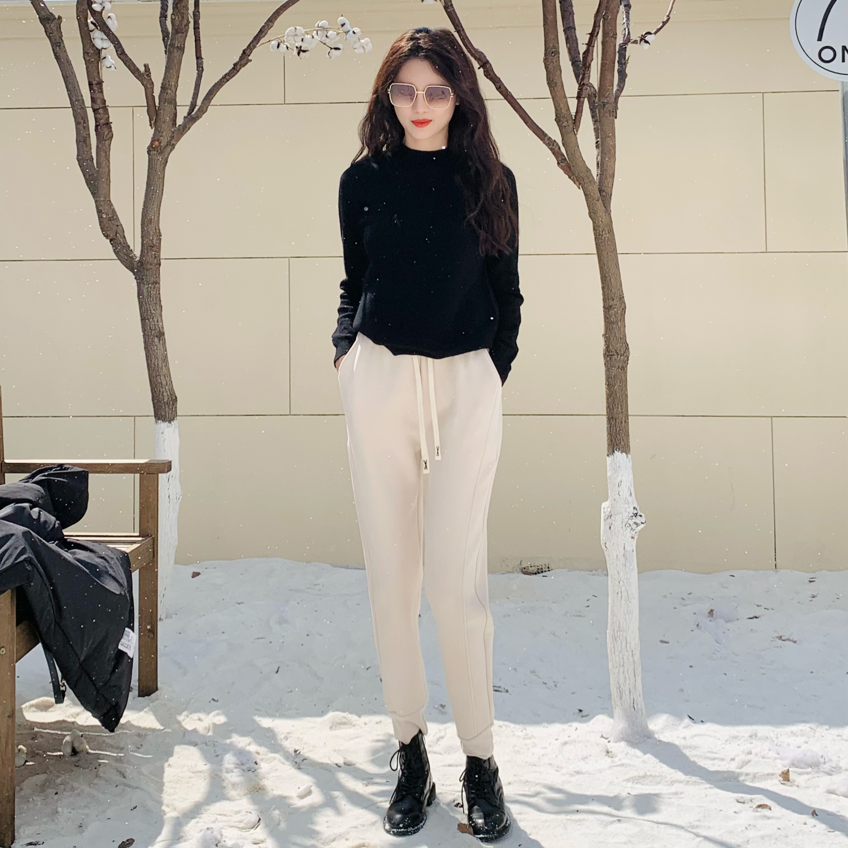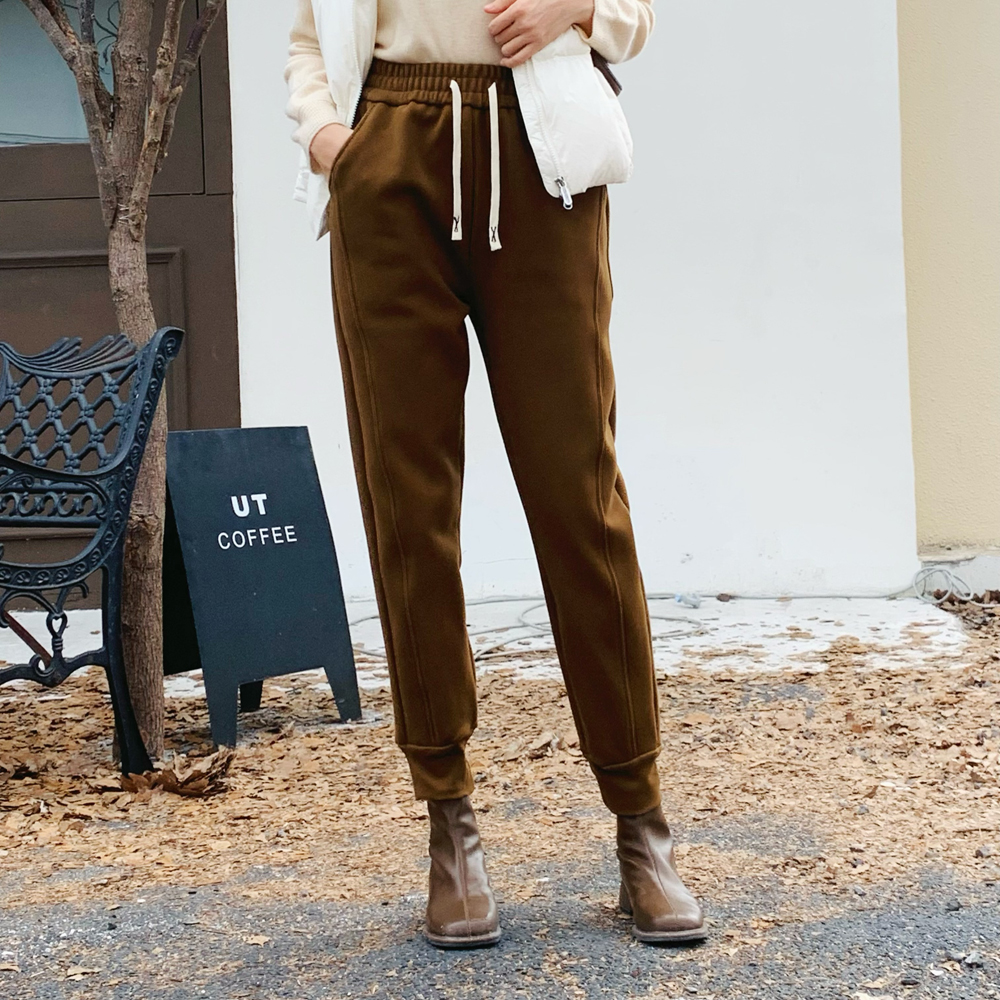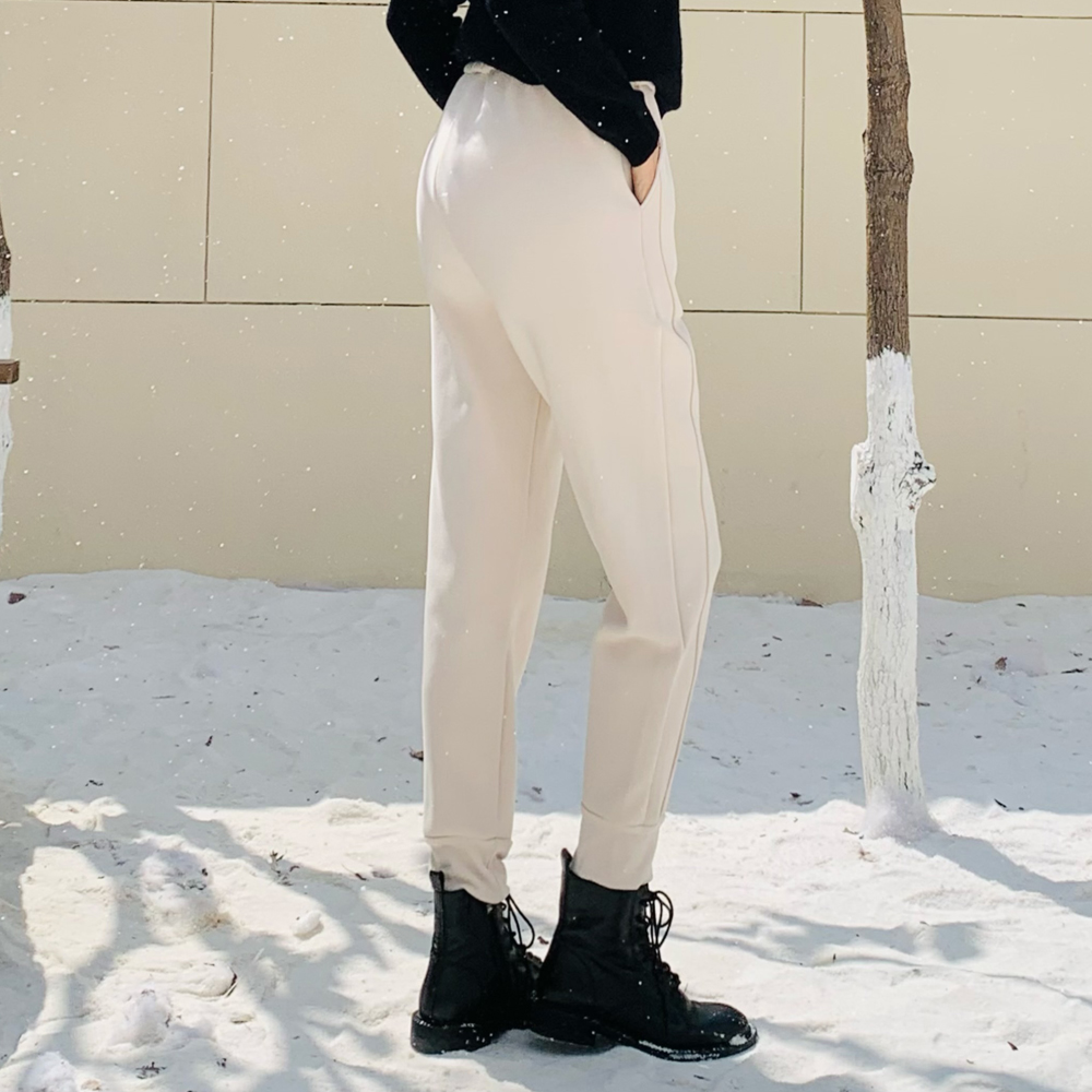 前面小脚裤样子,后面拼接螺纹,舒服不勒