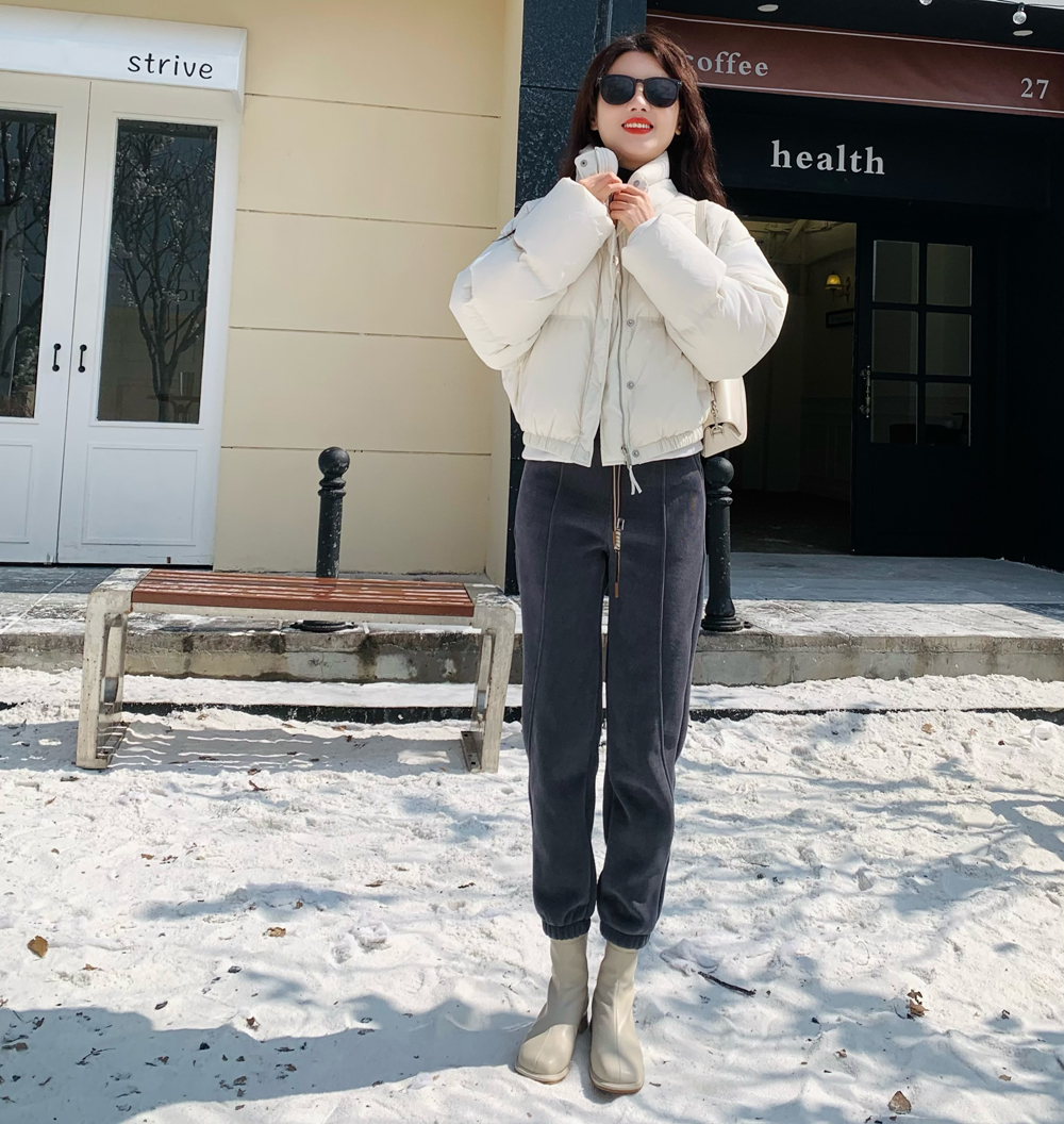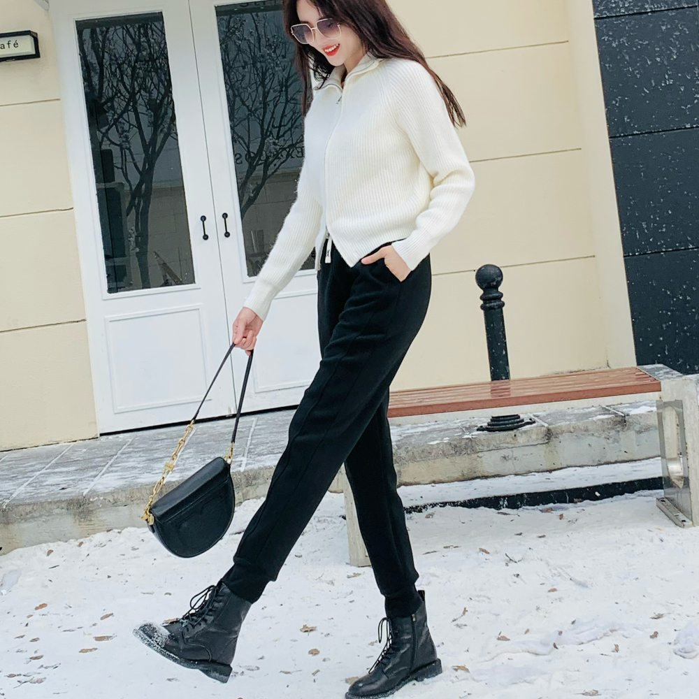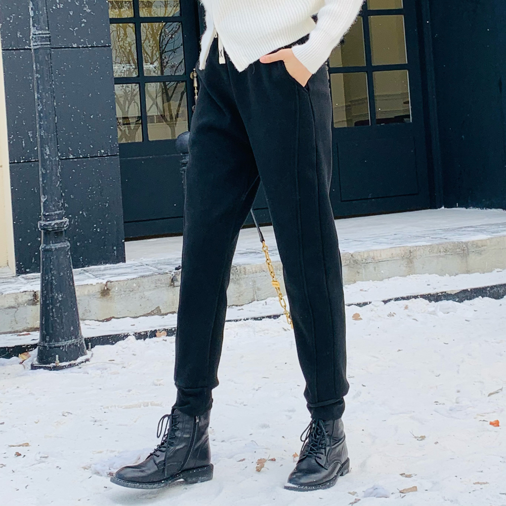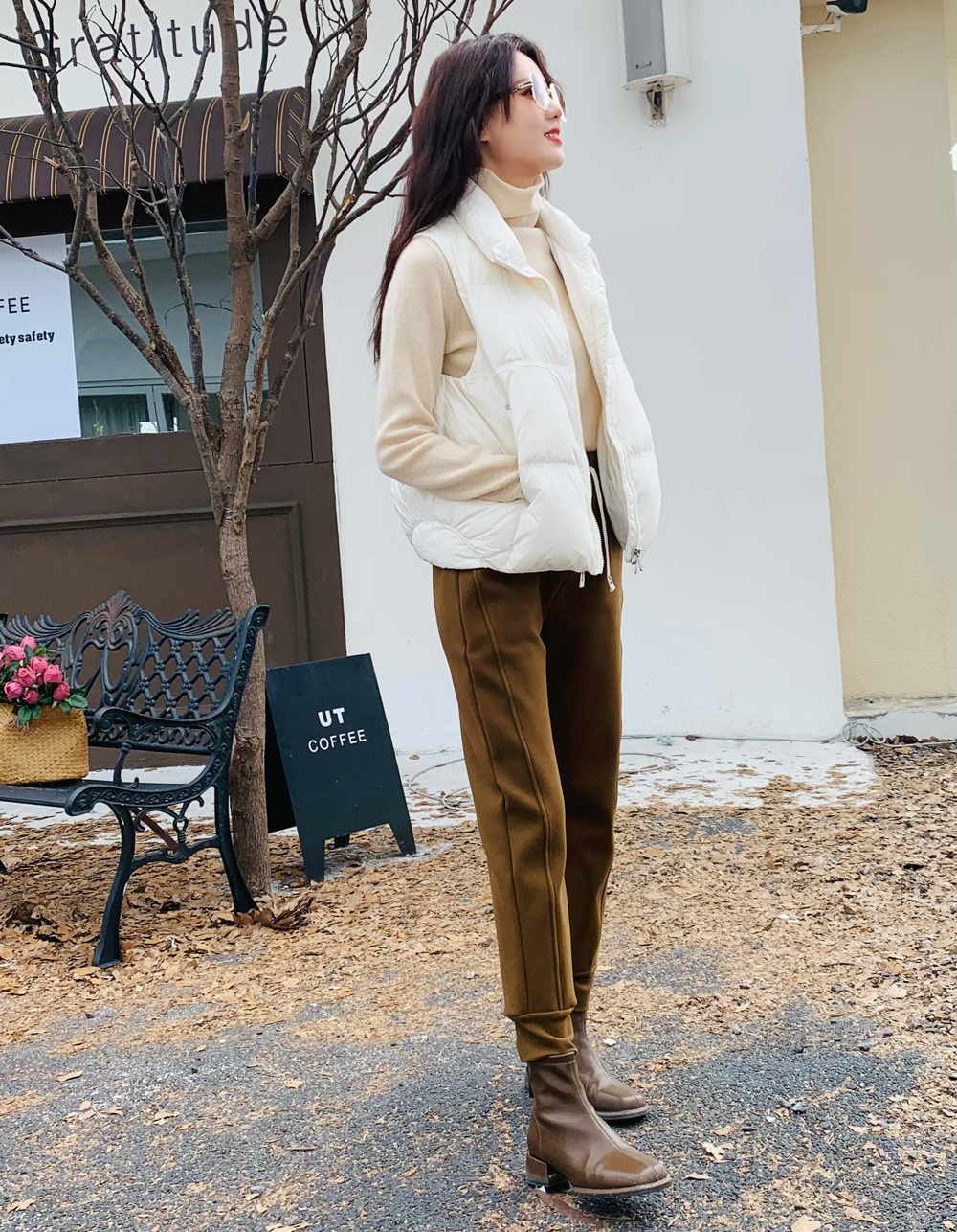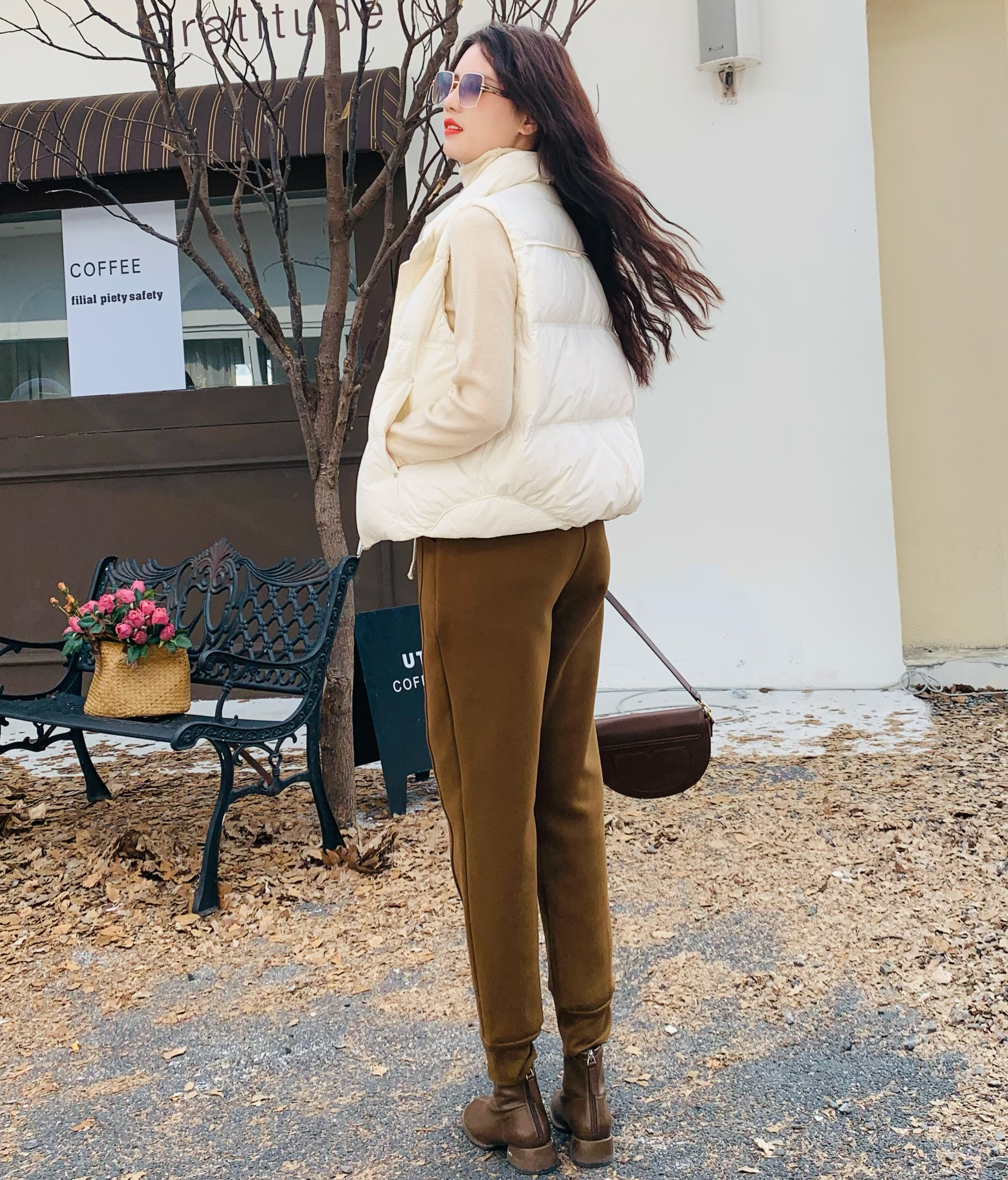 前面小脚裤样子,后面拼接螺纹,舒服不勒