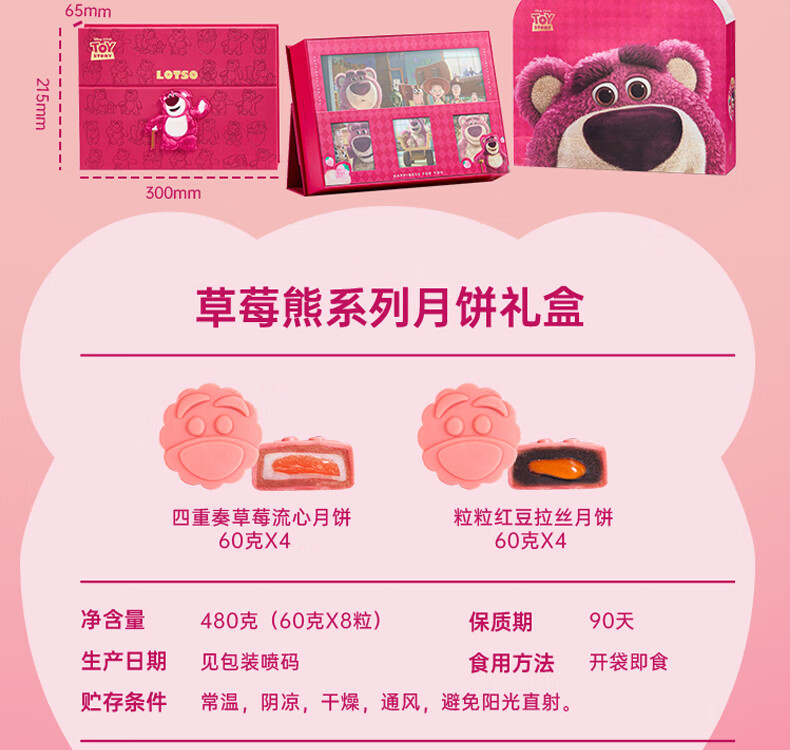 迪士尼草莓熊流心月饼礼盒480g XHR