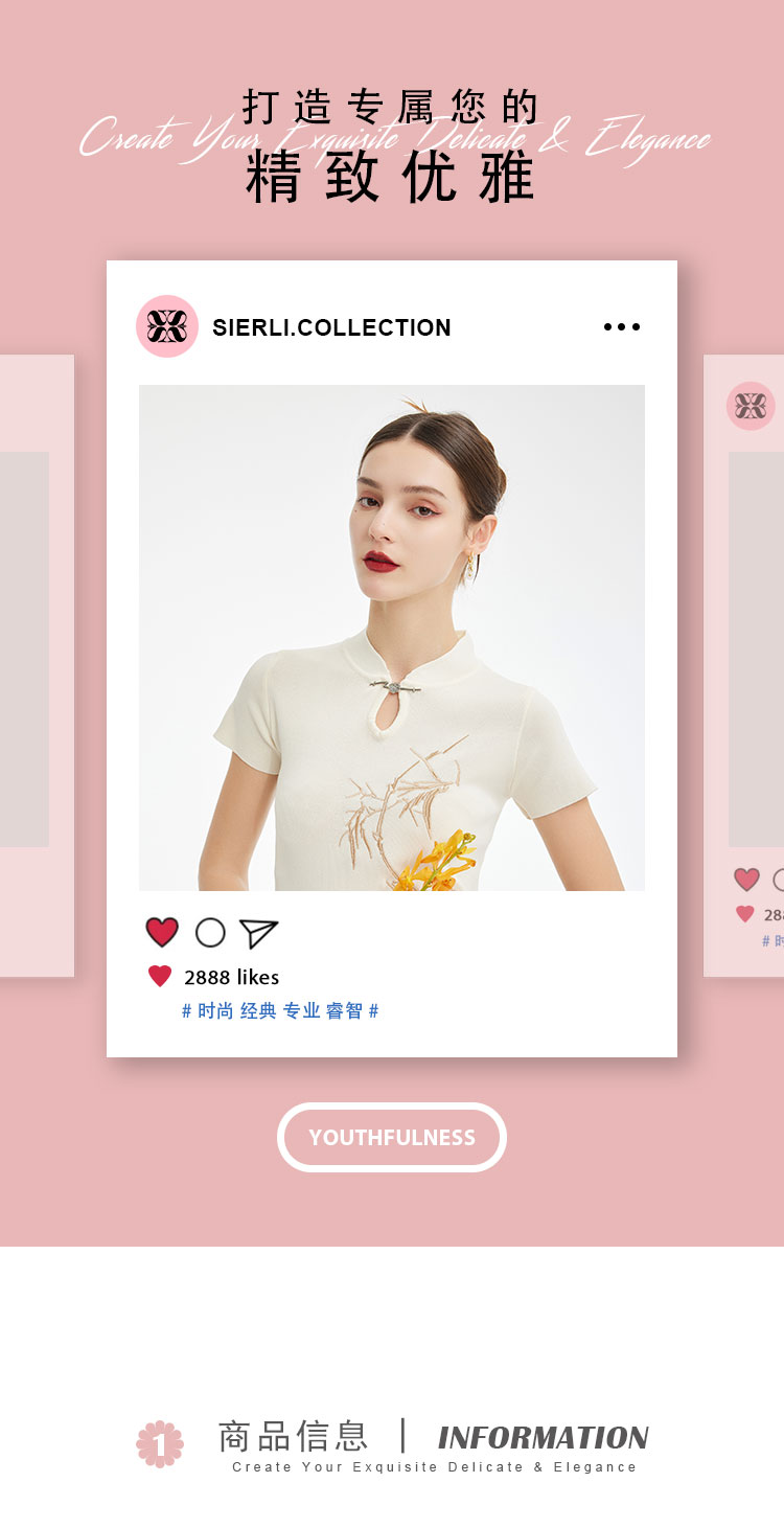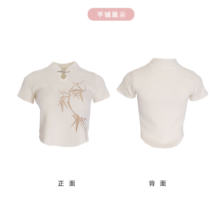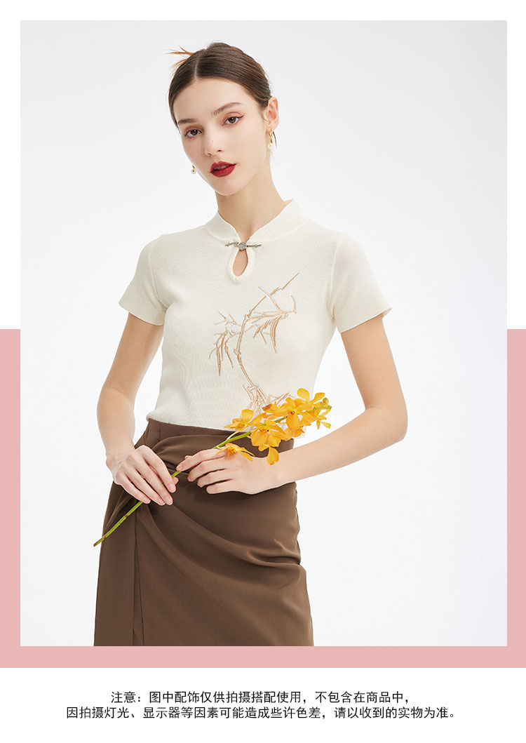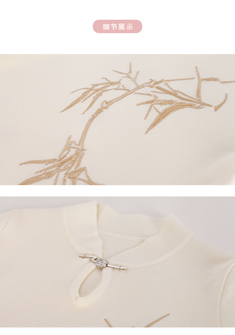 PF601斯尔丽2024新款滑爽不贴身针织旗袍领国风绣花百搭上衣女式针织衫