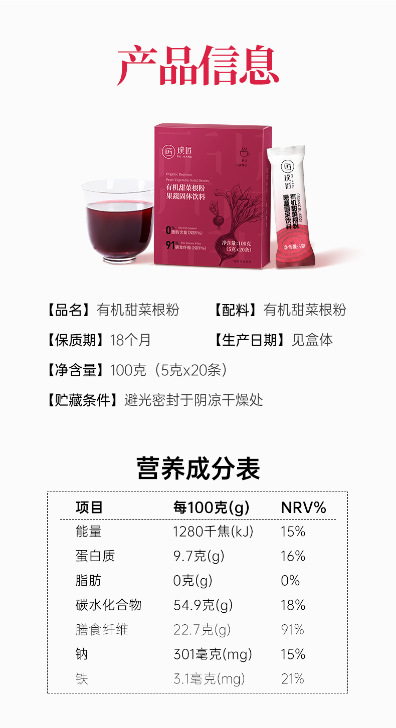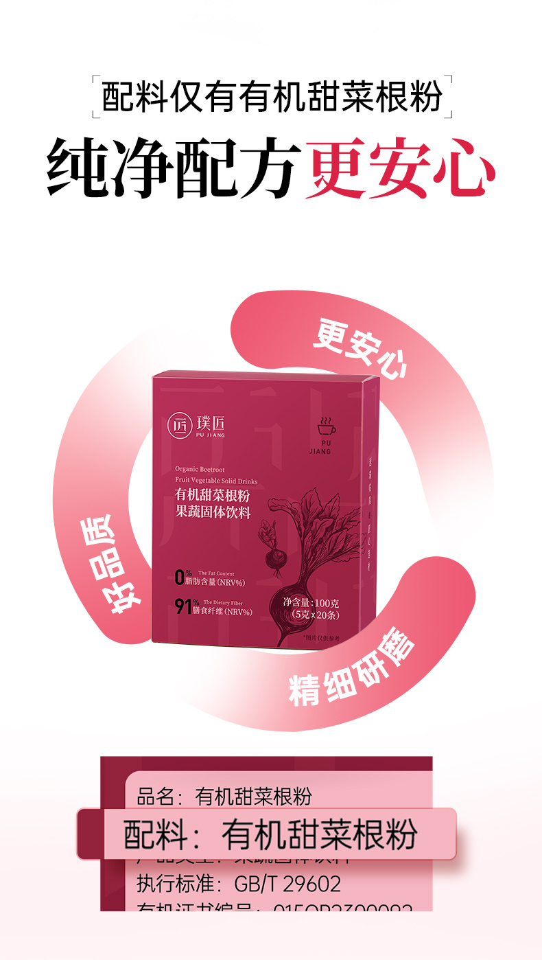 璞匠红甜菜根粉冲饮粉健身早餐饮料烘焙蔬菜粉果蔬粉便携装