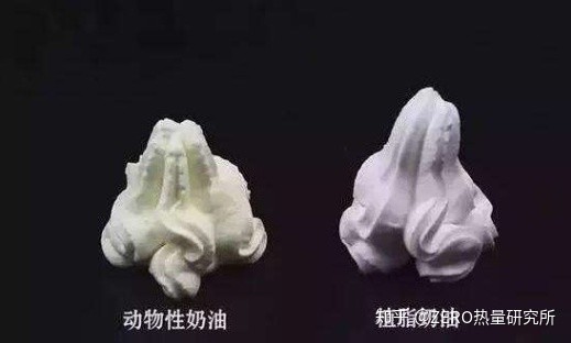 • 沉水法:把等量的动物奶油和植物奶油分别倒入20℃的清水里,观察两者现象。动物奶油是浮在水面上的,部分容于水中,植物奶油是沉在水面下的.