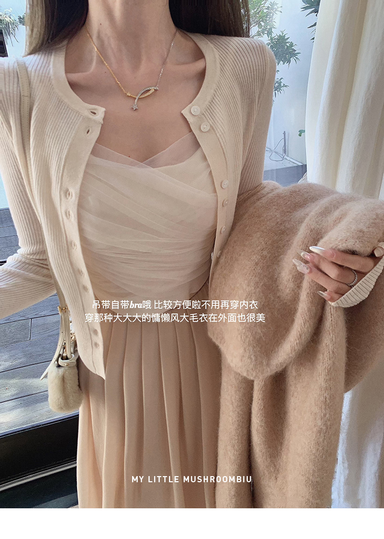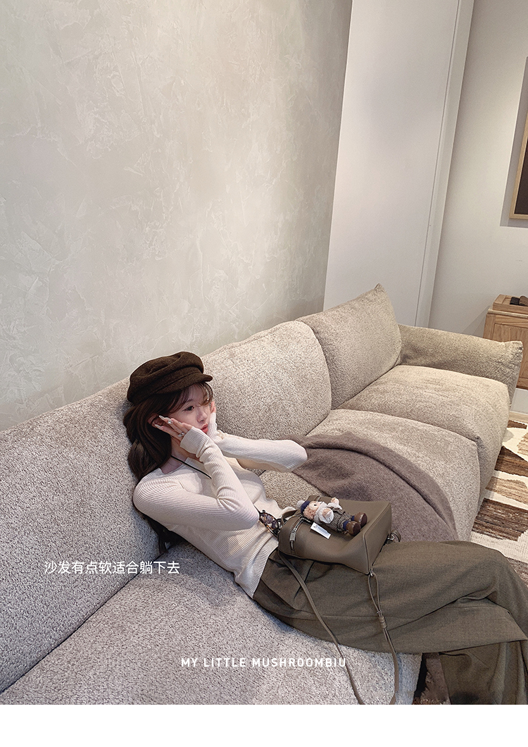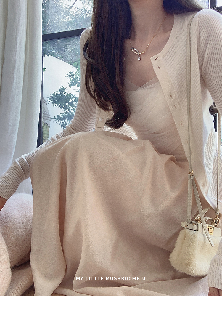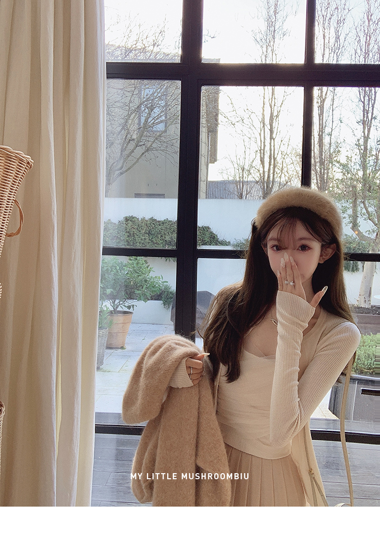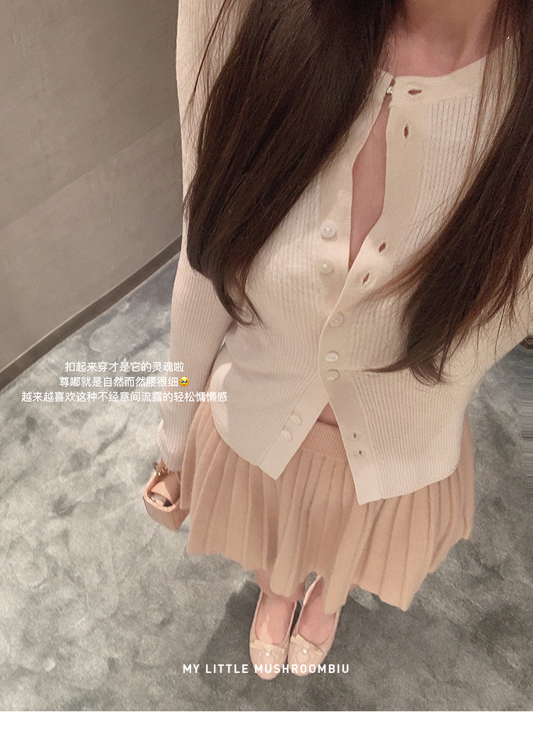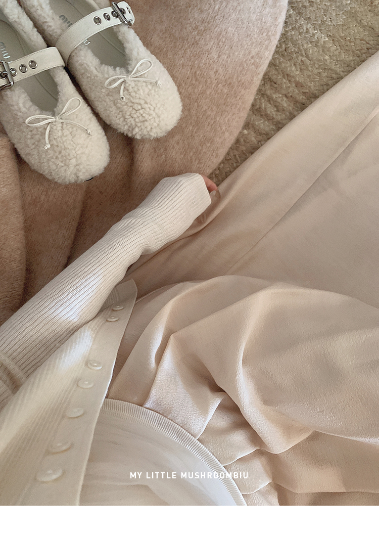 针织衫:6%丝光羊毛20%锦纶35%抗起球腈纶39%聚酯纤维半裙:30%兔绒15%羊毛20%粘纤35%锦纶