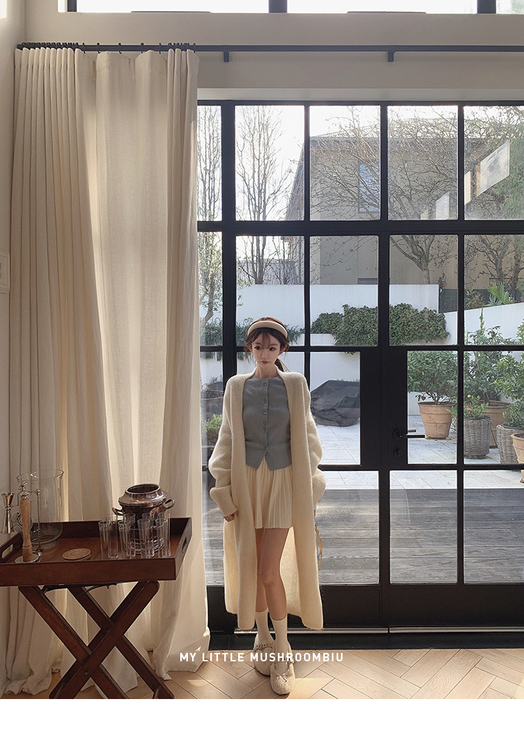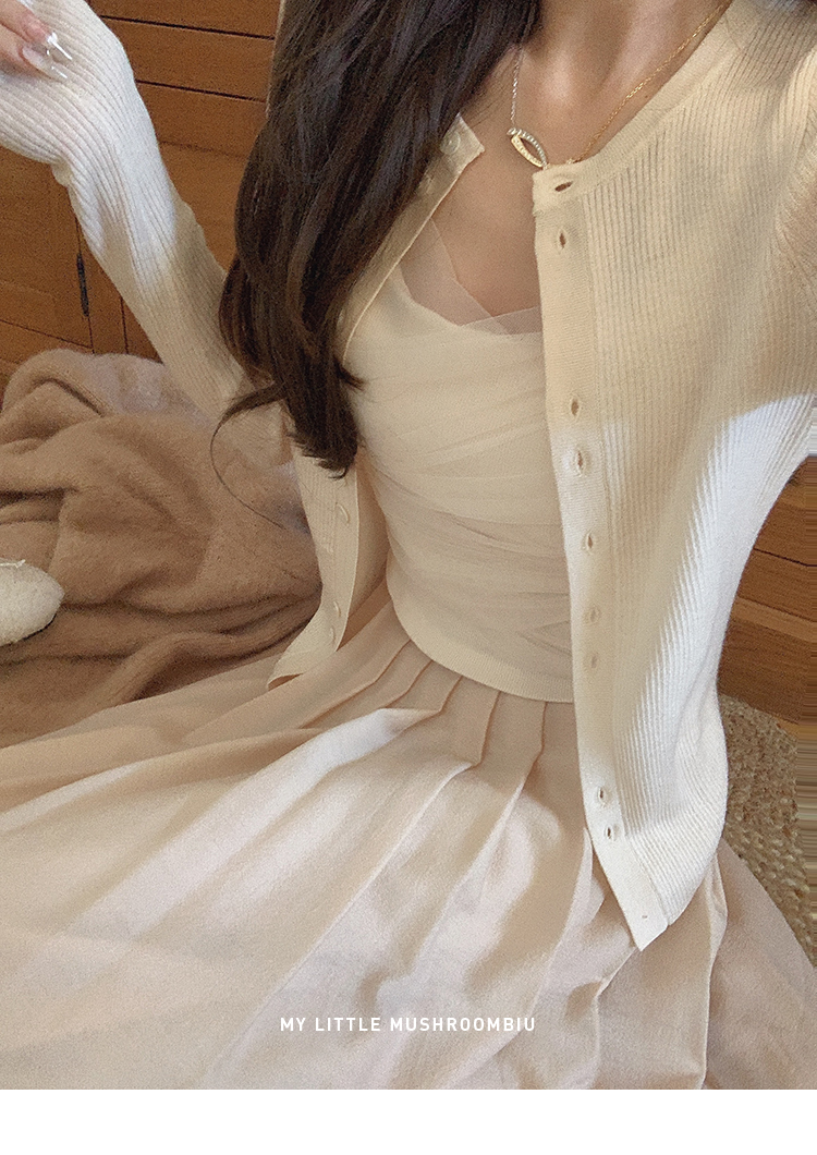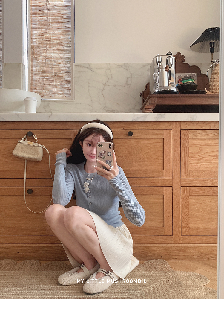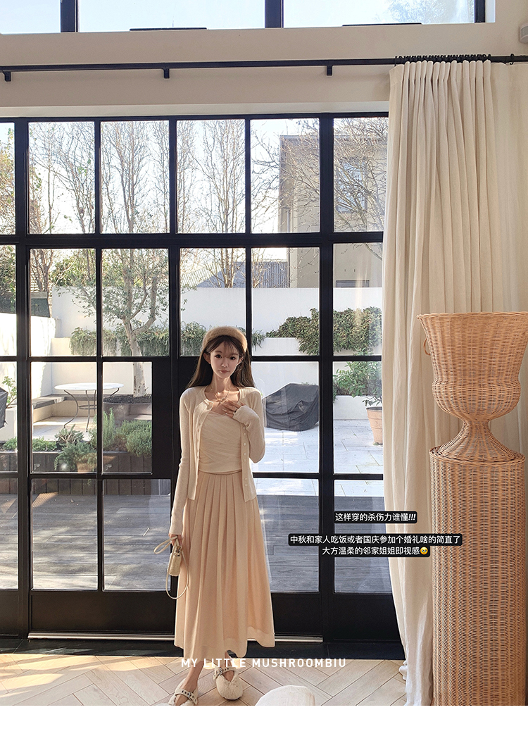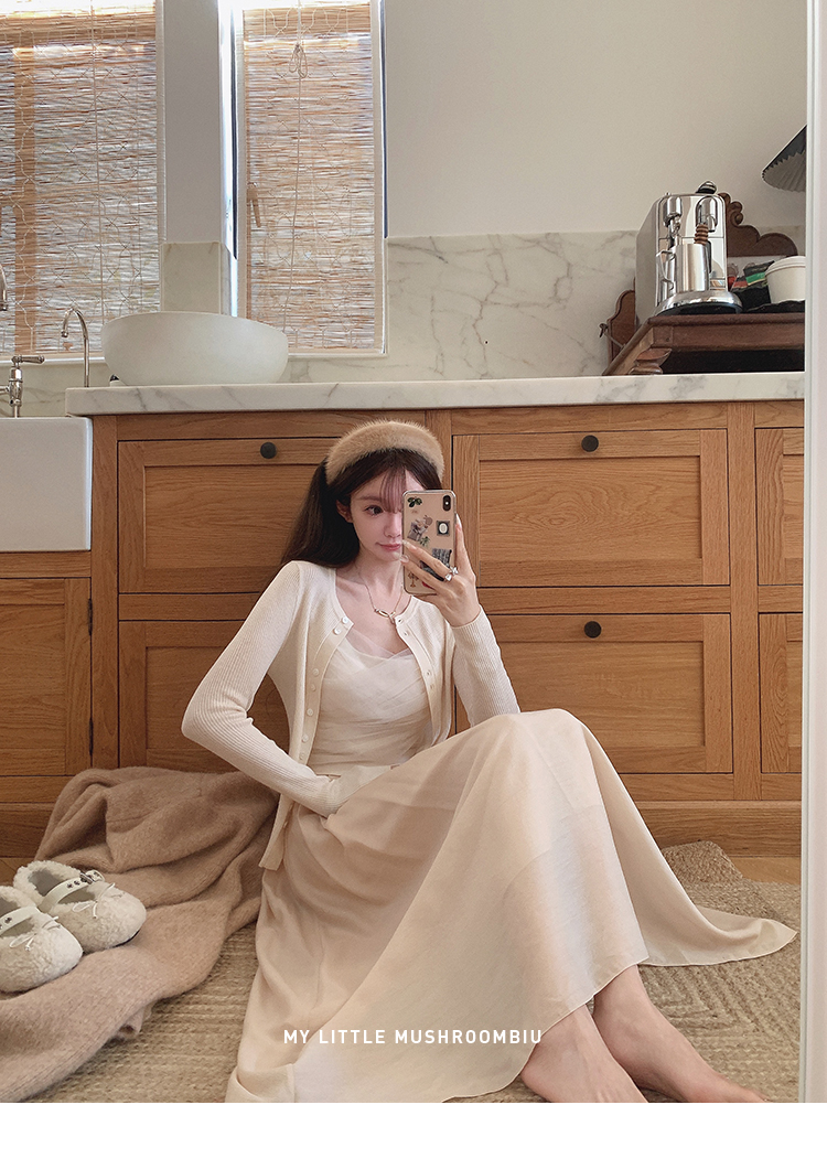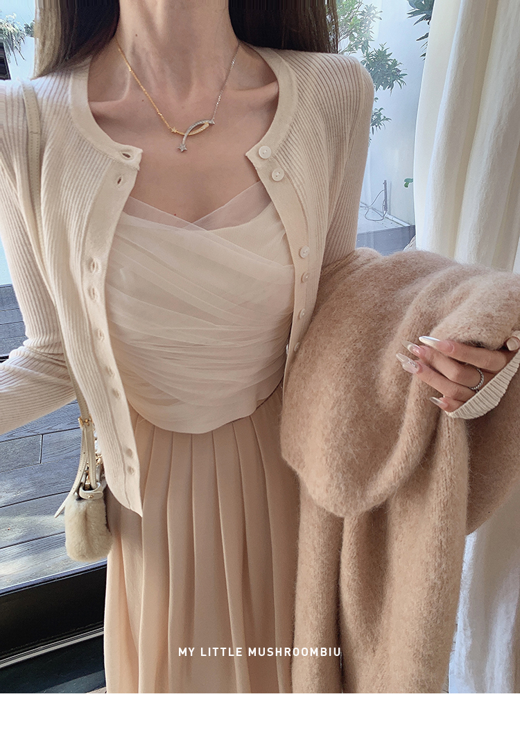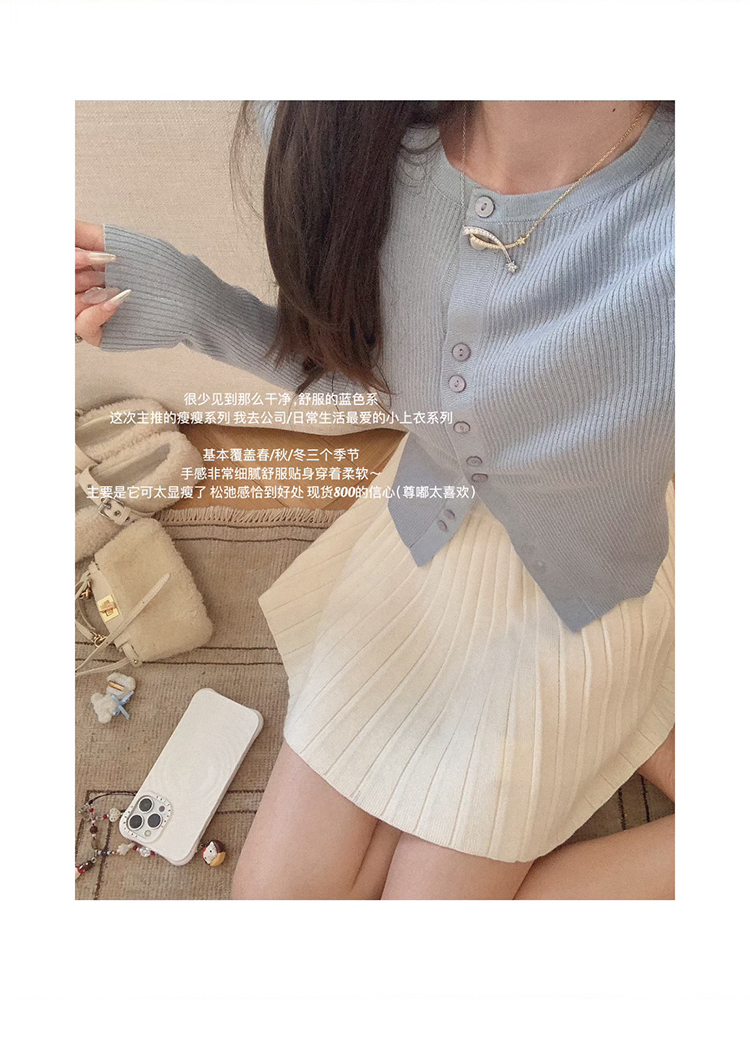 针织衫:6%丝光羊毛20%锦纶35%抗起球腈纶39%聚酯纤维半裙:30%兔绒15%羊毛20%粘纤35%锦纶