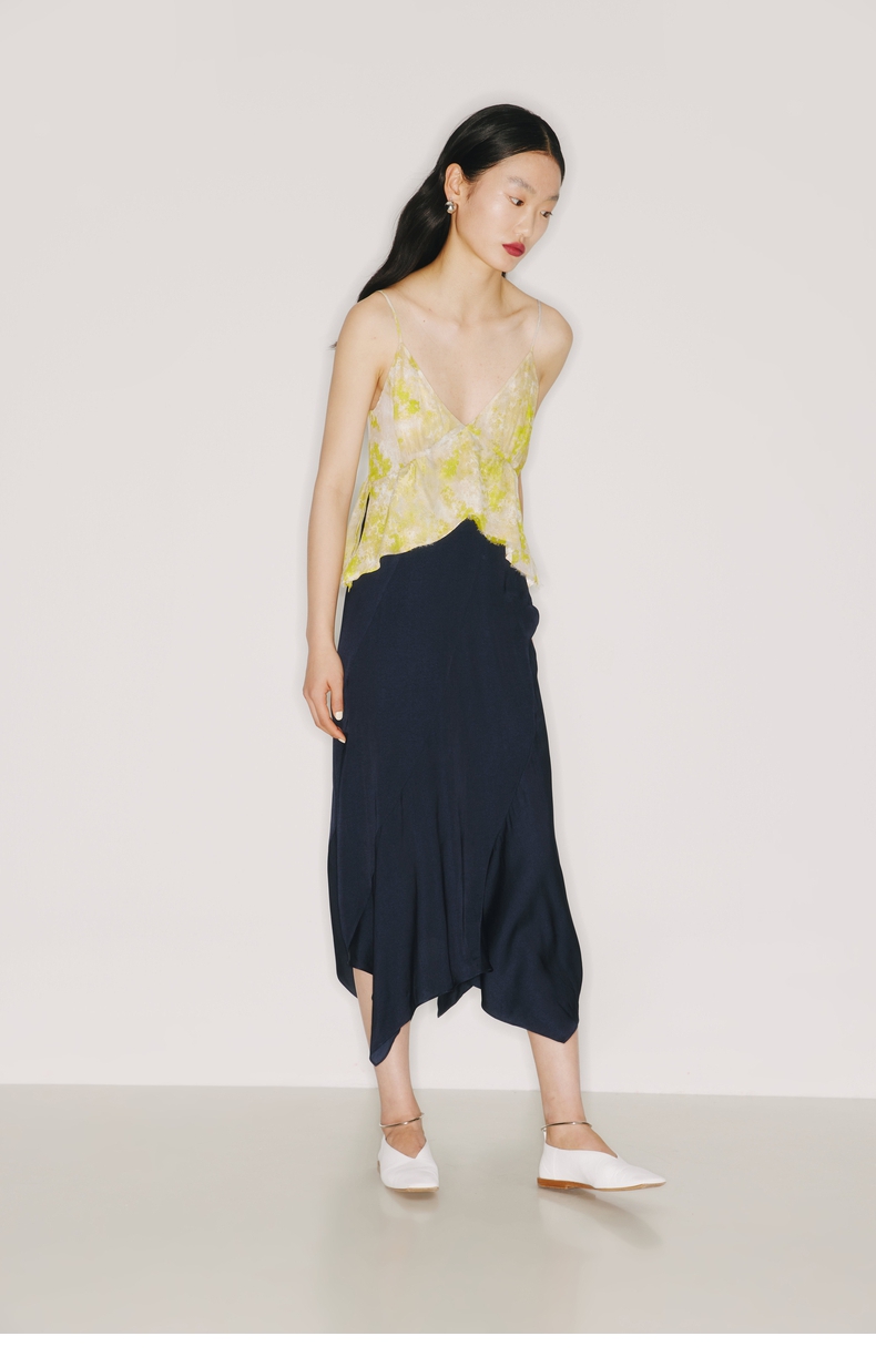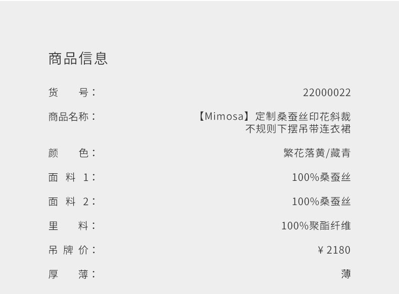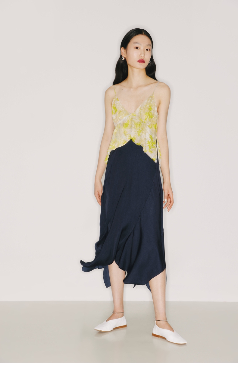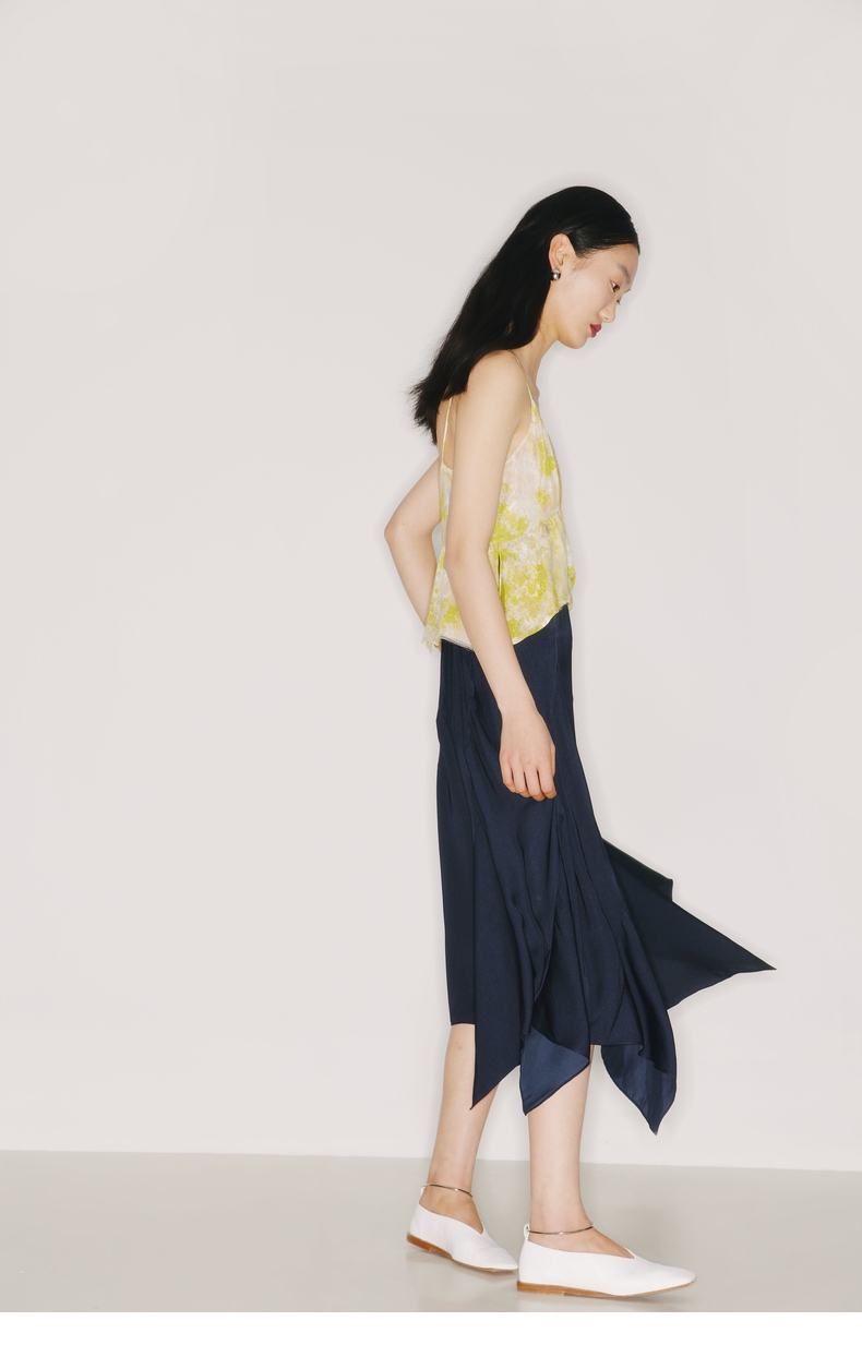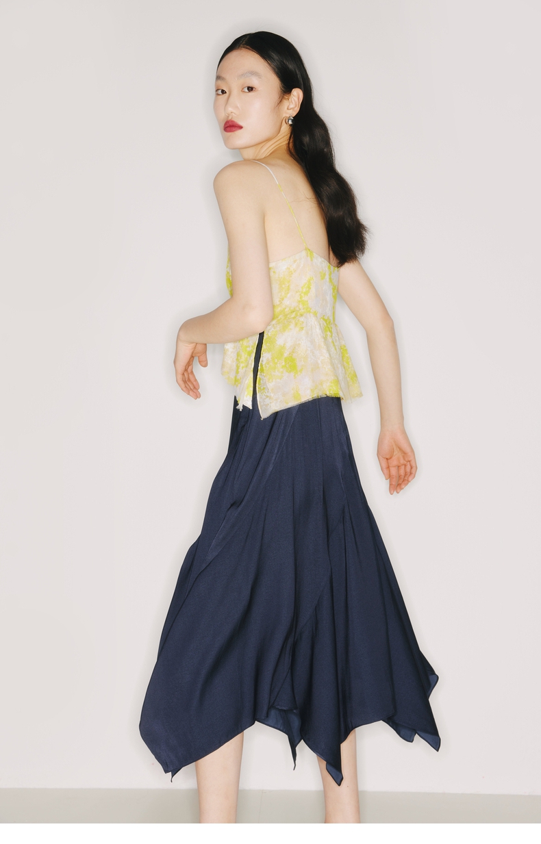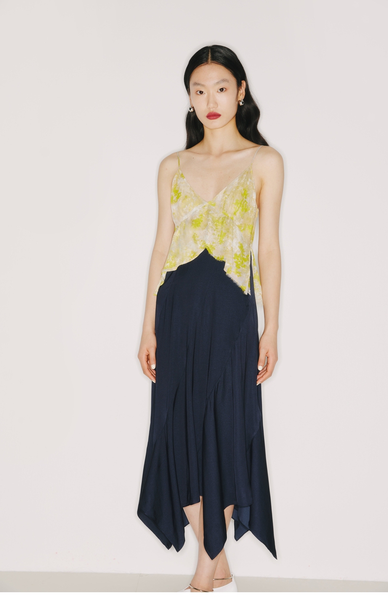 【Mimosa】品牌定制桑蚕丝印花斜裁不规则下摆吊带连衣裙/22000022
