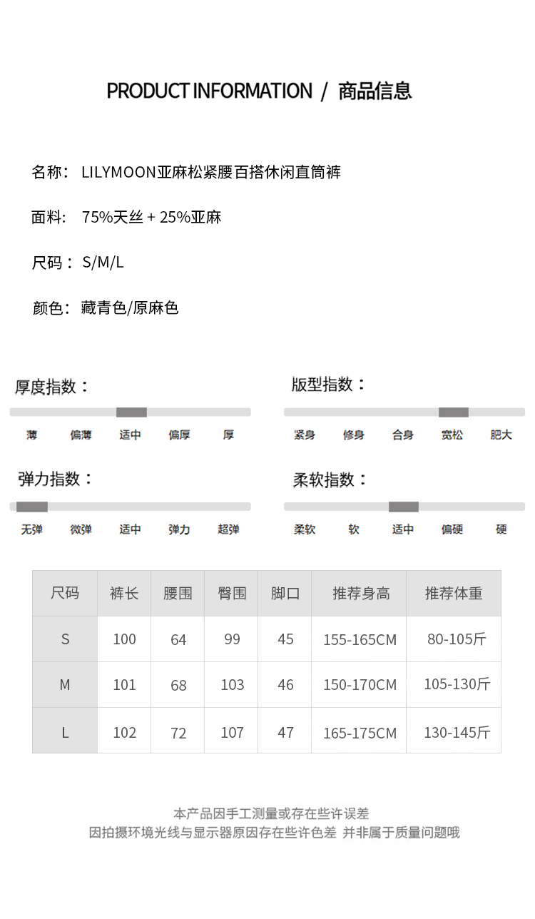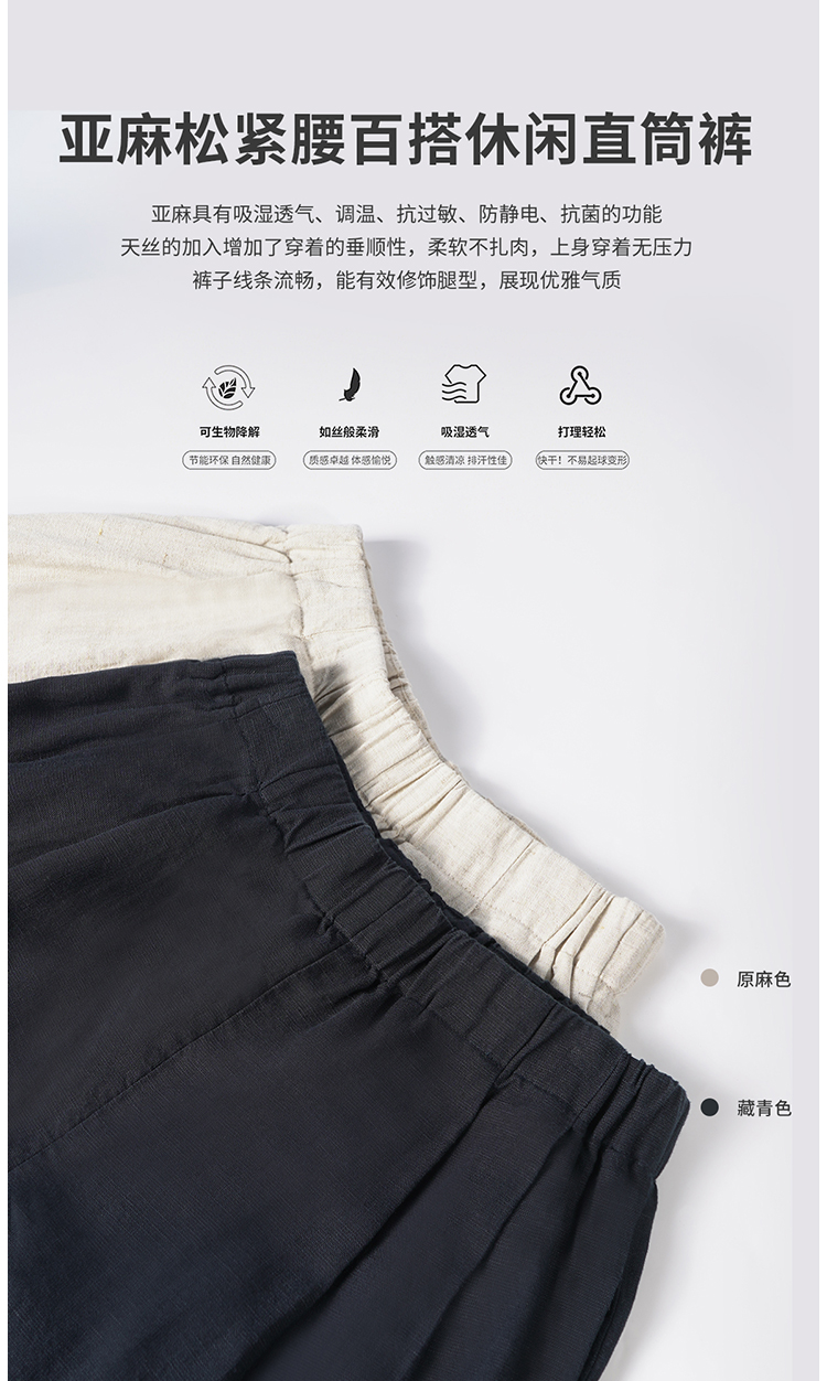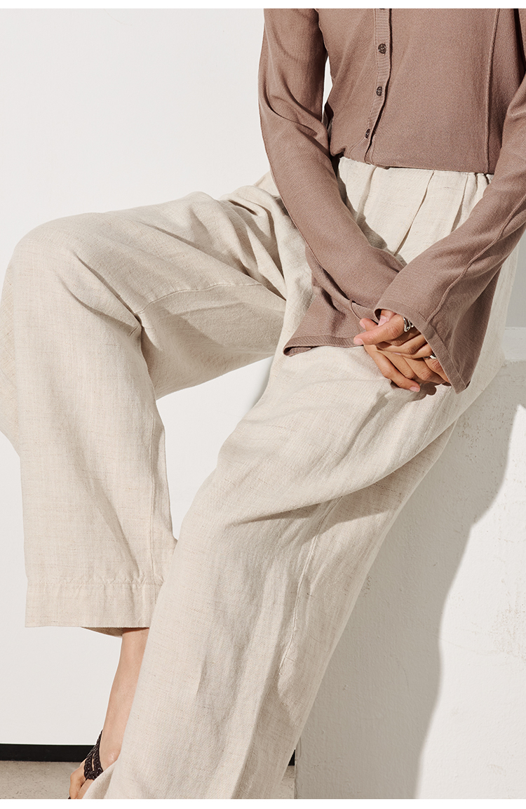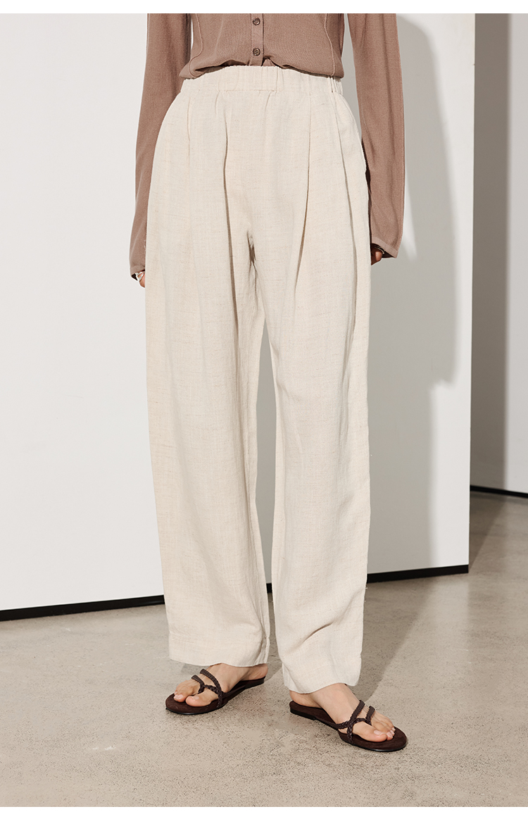 LILYMOON【亚麻直筒裤】松紧腰百搭休闲裤山本风