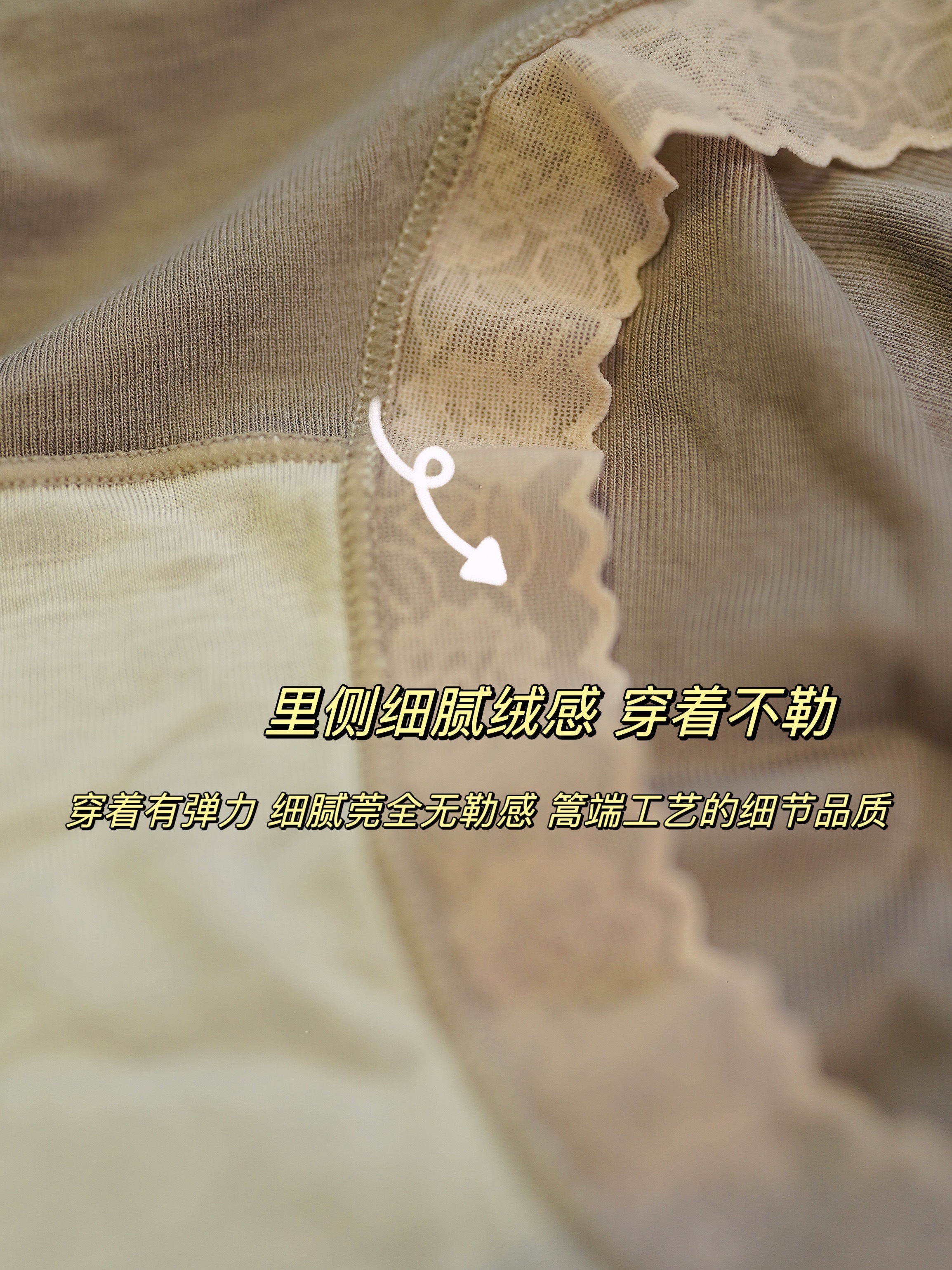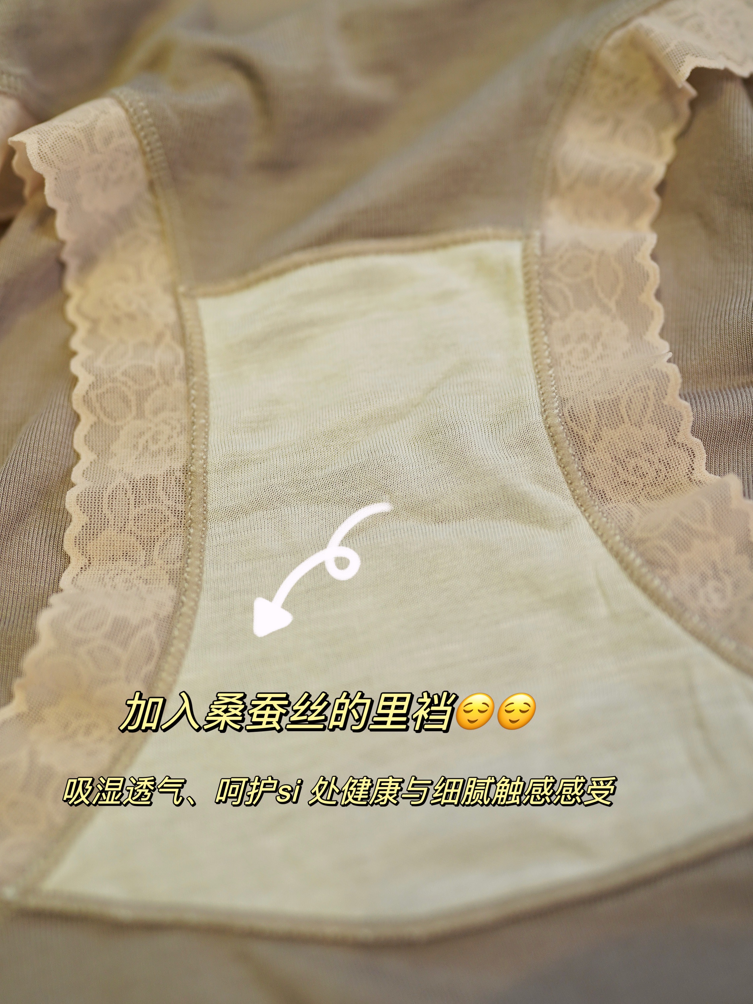 里档用到了桑蚕丝的面料,可想而知的舒服度,安心度,吸湿透气,24小时呵护si处的健康与舒服度,加入桑蚕丝,具有健康K菌的特性,用在内衣裤上,也拥有Fang止螨虫和霉菌滋生的能力。
