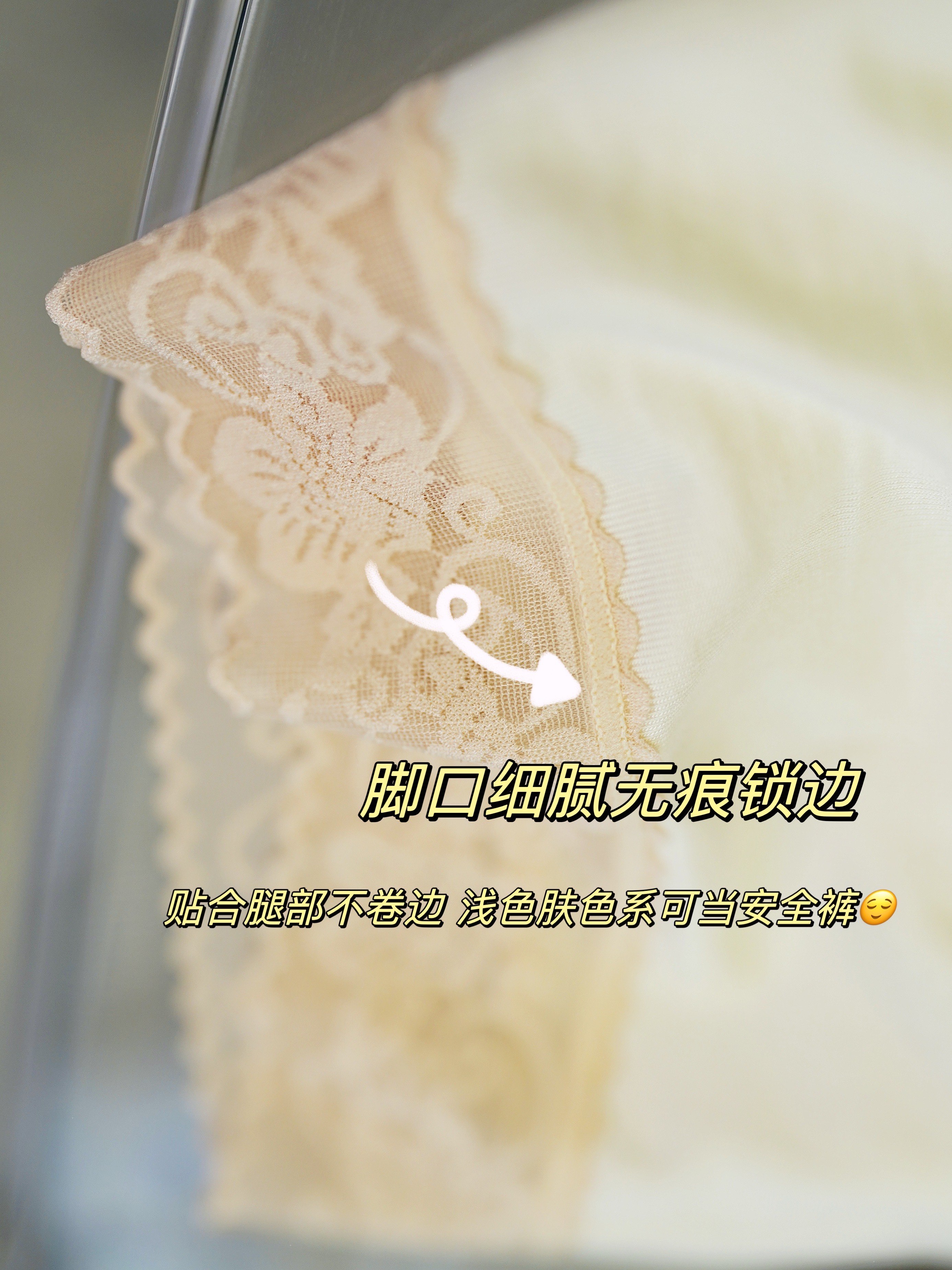 脚口大蕾丝品质非常好,我穿过这么久,别看它是蕾丝,其实相当于无痕腰头和脚口般感觉不到什么,特别特别亲肤也不容易卷边!