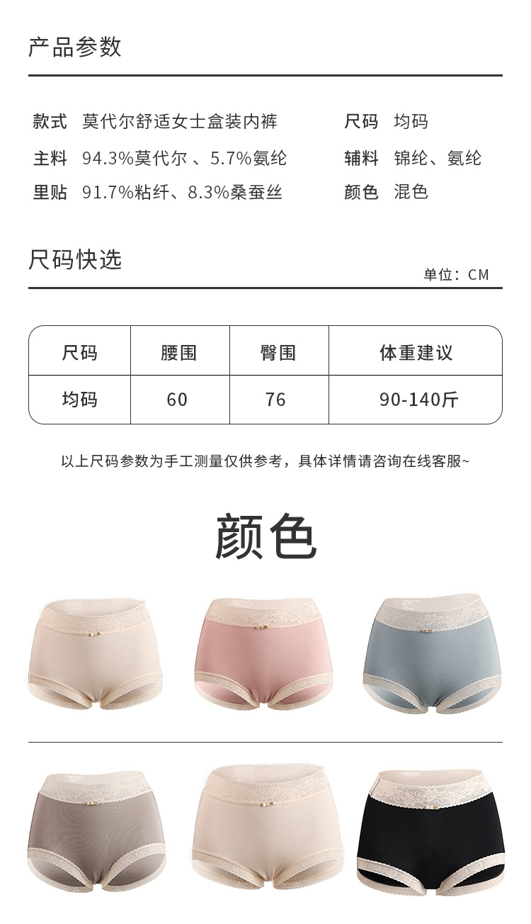 千挑万选女士桑蚕丝薄款内裤!采用莫代尔天hua板奥地利兰精面料 chao大弹力进口蕾丝 上身亲肤柔软身若无物 桑蚕丝混纺里档 K菌 24h透气吸湿 无惧胖瘦 穿着舒服不勒(均码 90-140斤可穿)