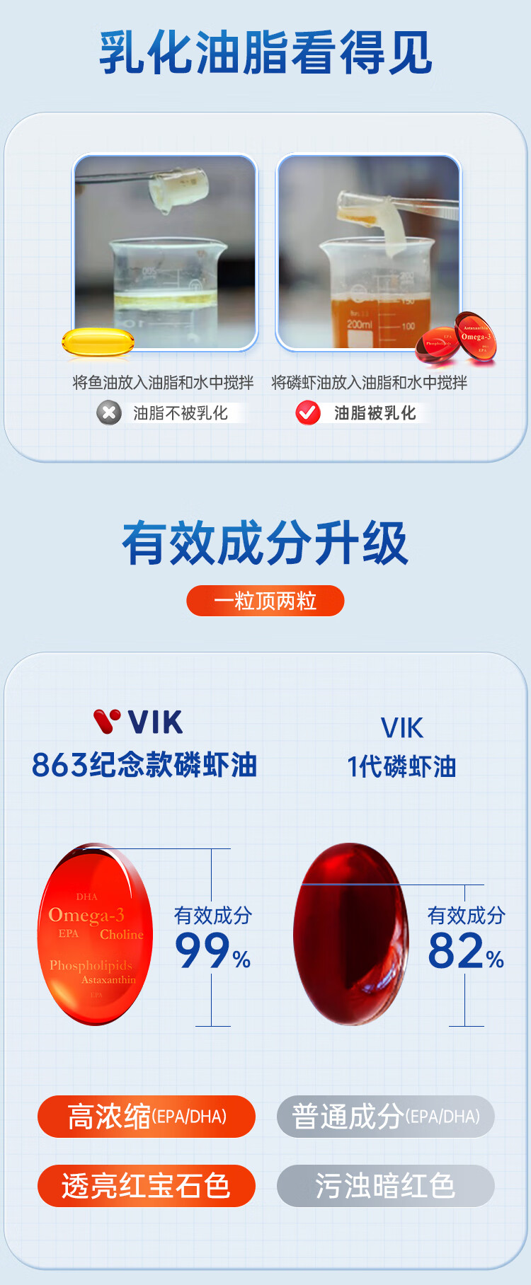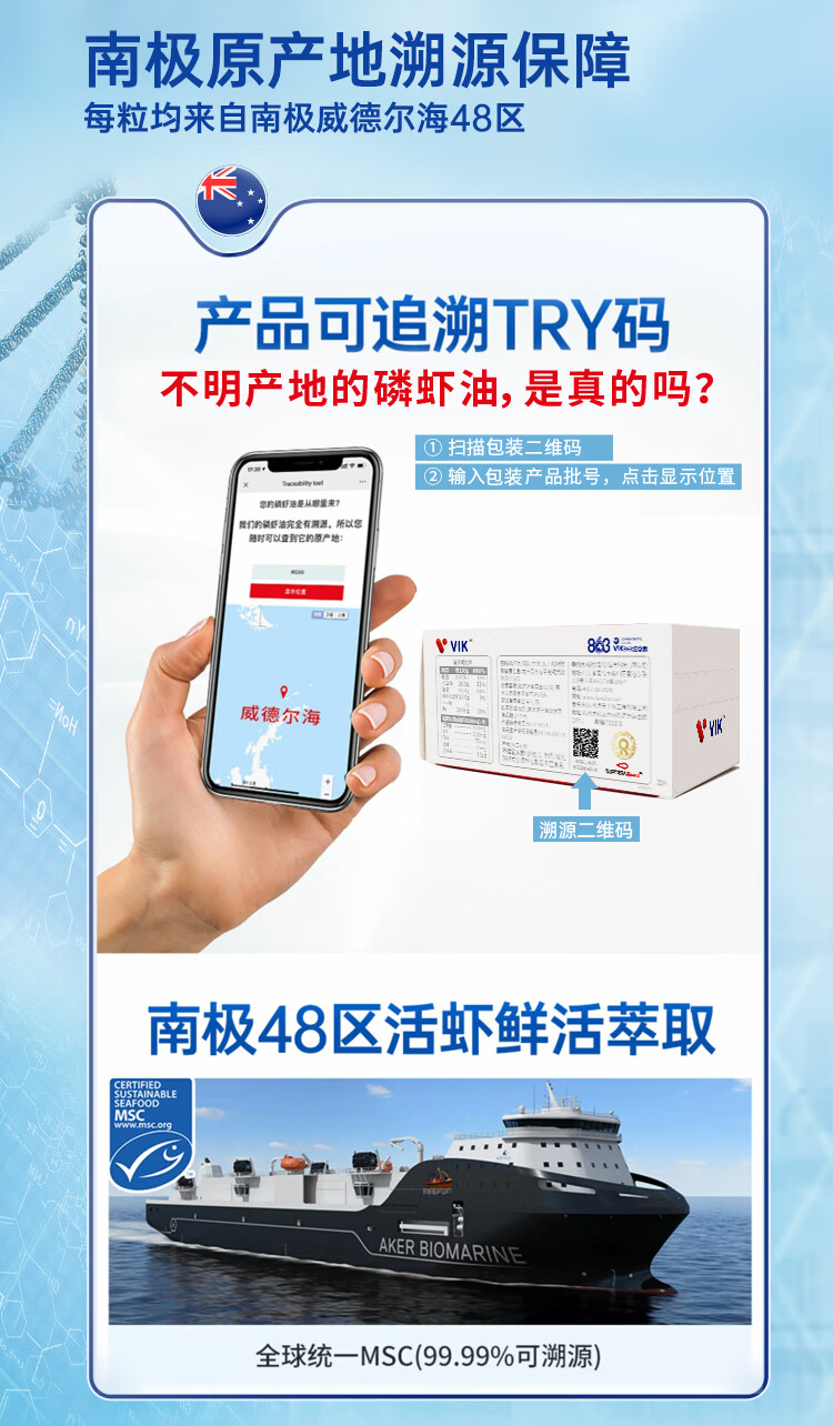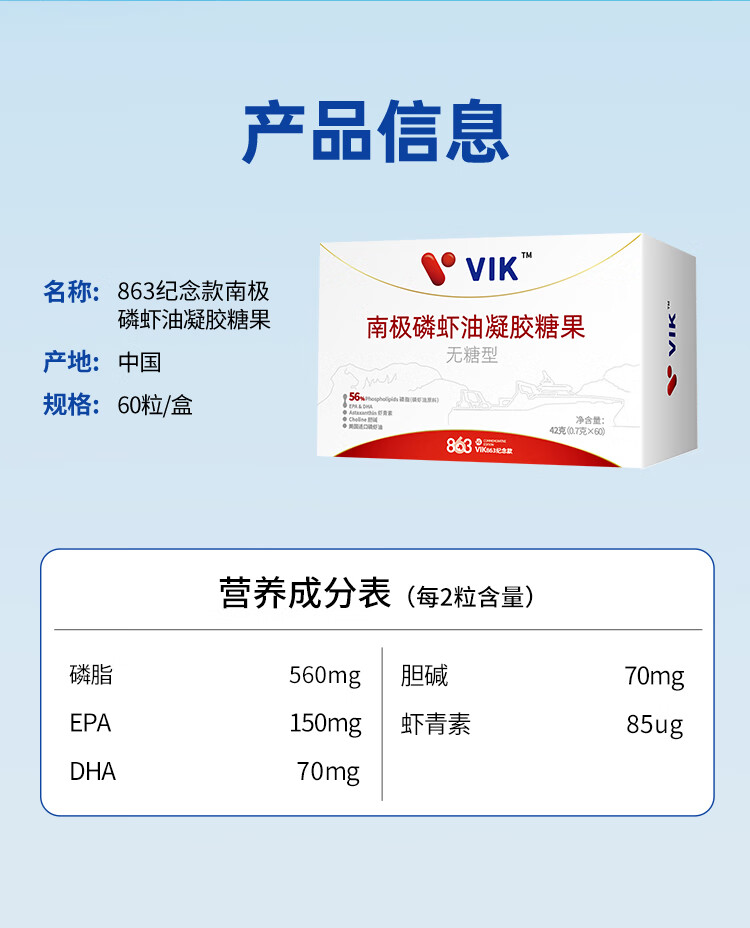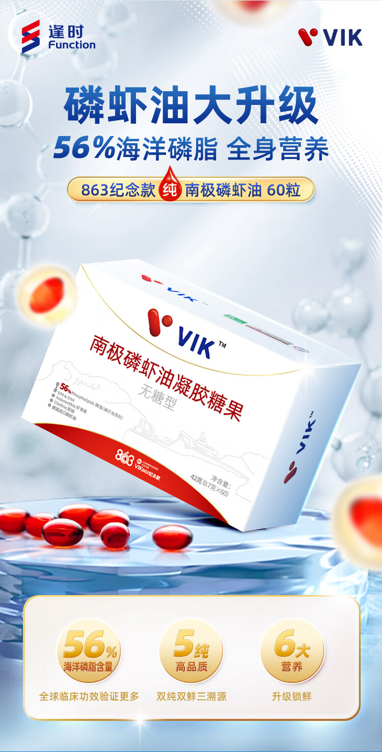 VIK863纪念版纯南极磷虾油挪威进口原料鱼油升级56%海洋磷脂DHAepa中老年成人送礼60粒