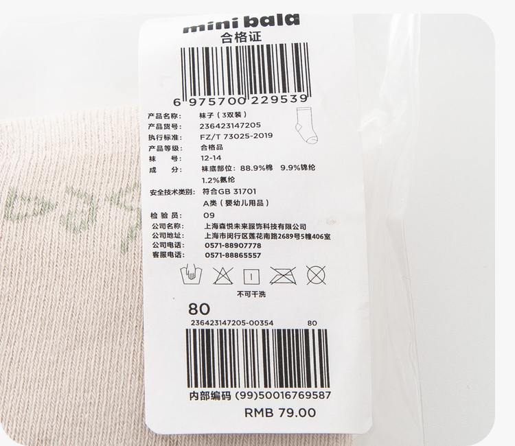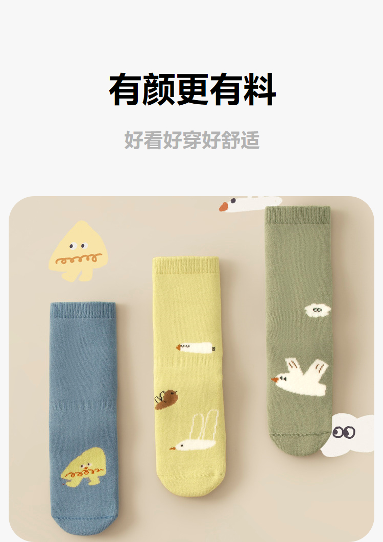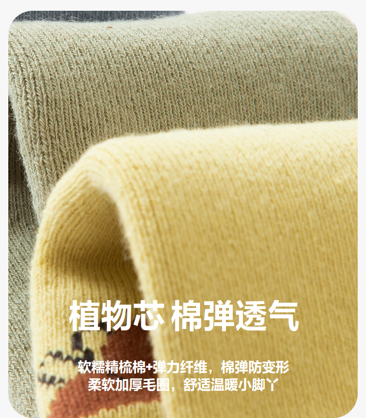 【植物芯】迷你巴拉男女童袜子3双装秋冬宝宝透气舒适儿童袜