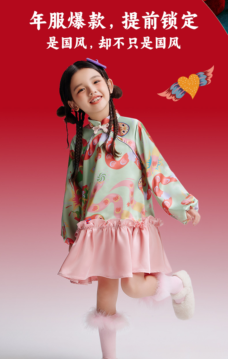 年衣童装旗袍连衣裙女童秋冬中式国风甜美丝绒公主裙子儿童表演服蛇么都美旗袍